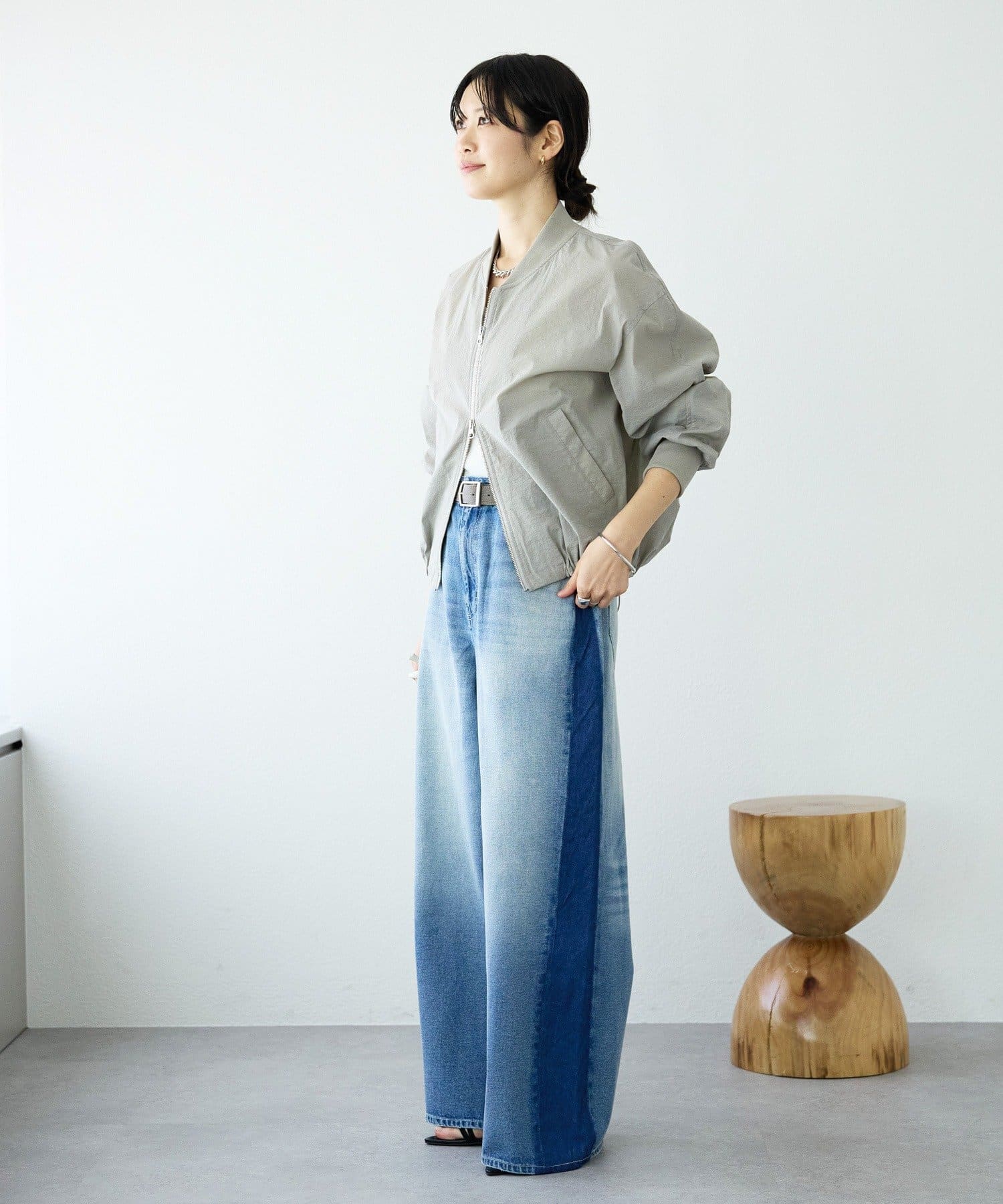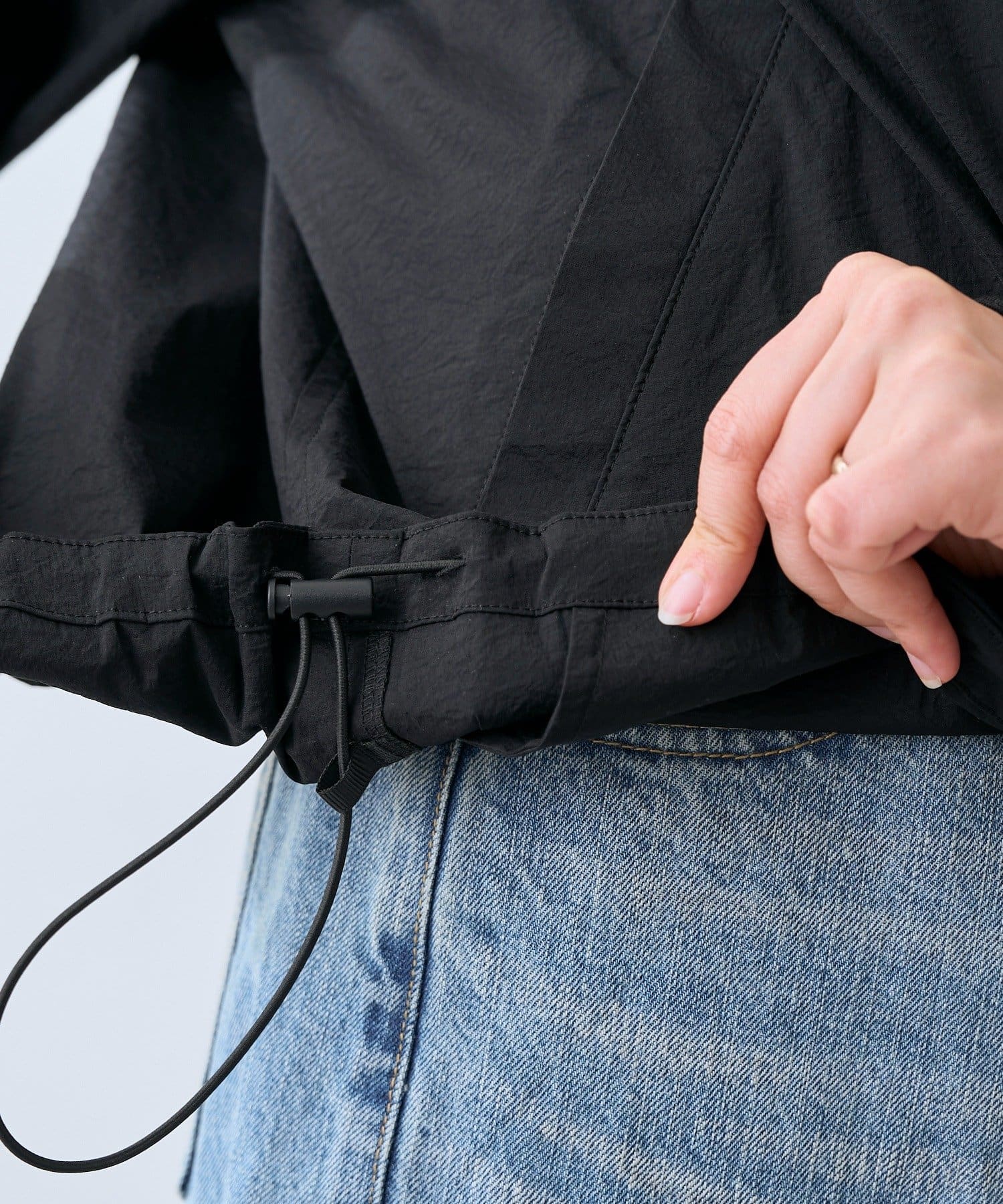• 裾のドロストを伸ばして着用