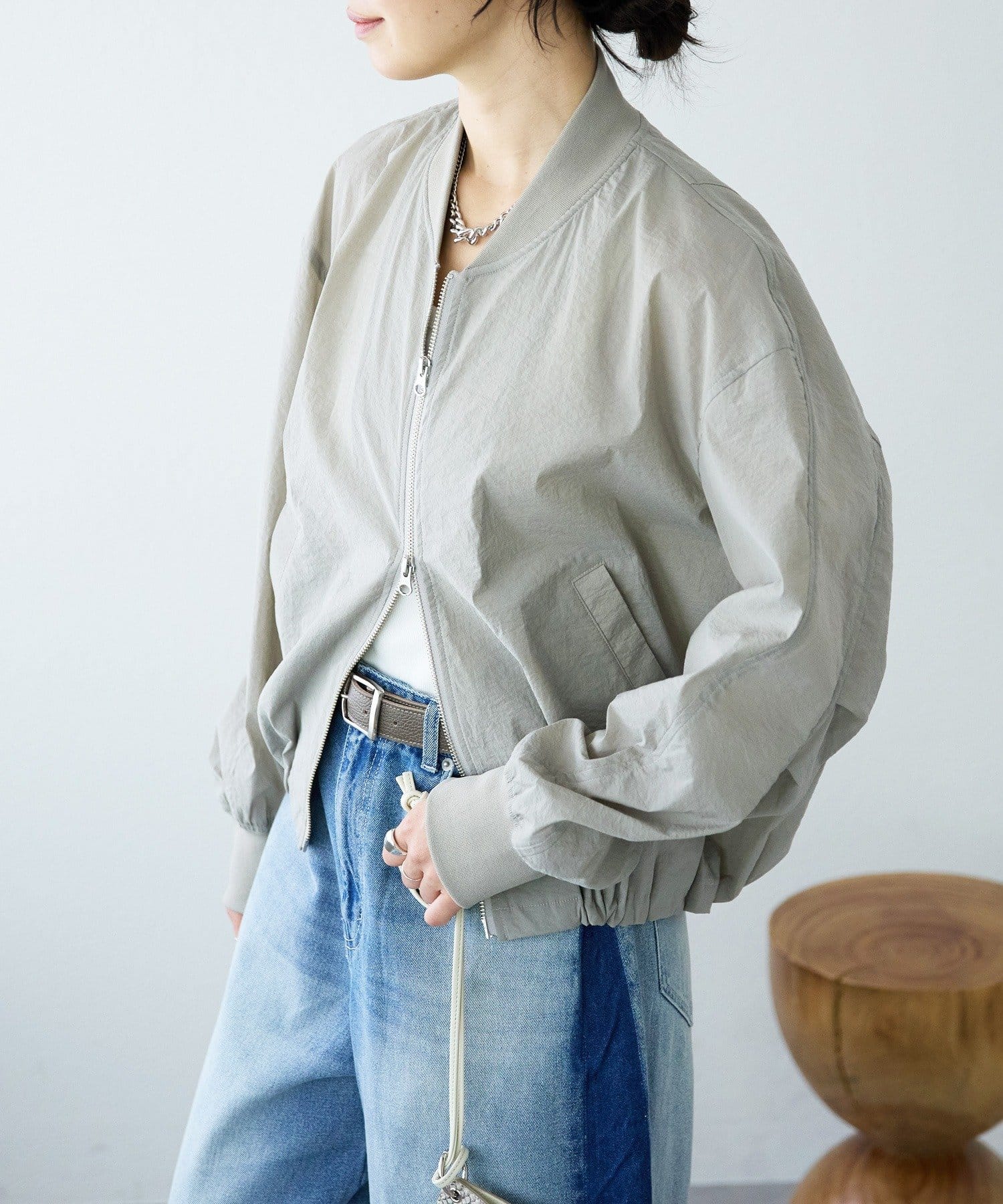 • ペーパーライクでハリのある軽量素材を使用したユーティリティブルゾン