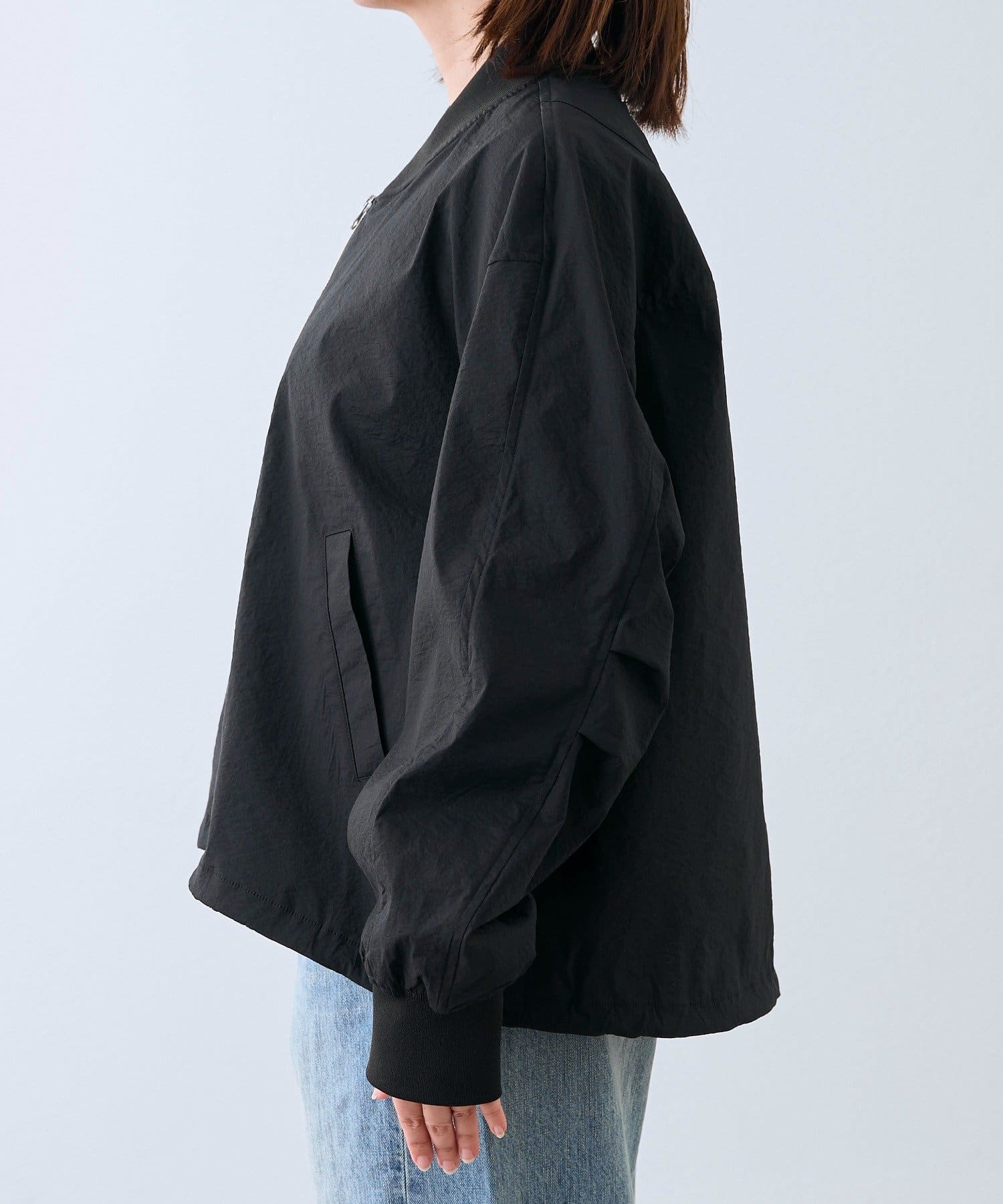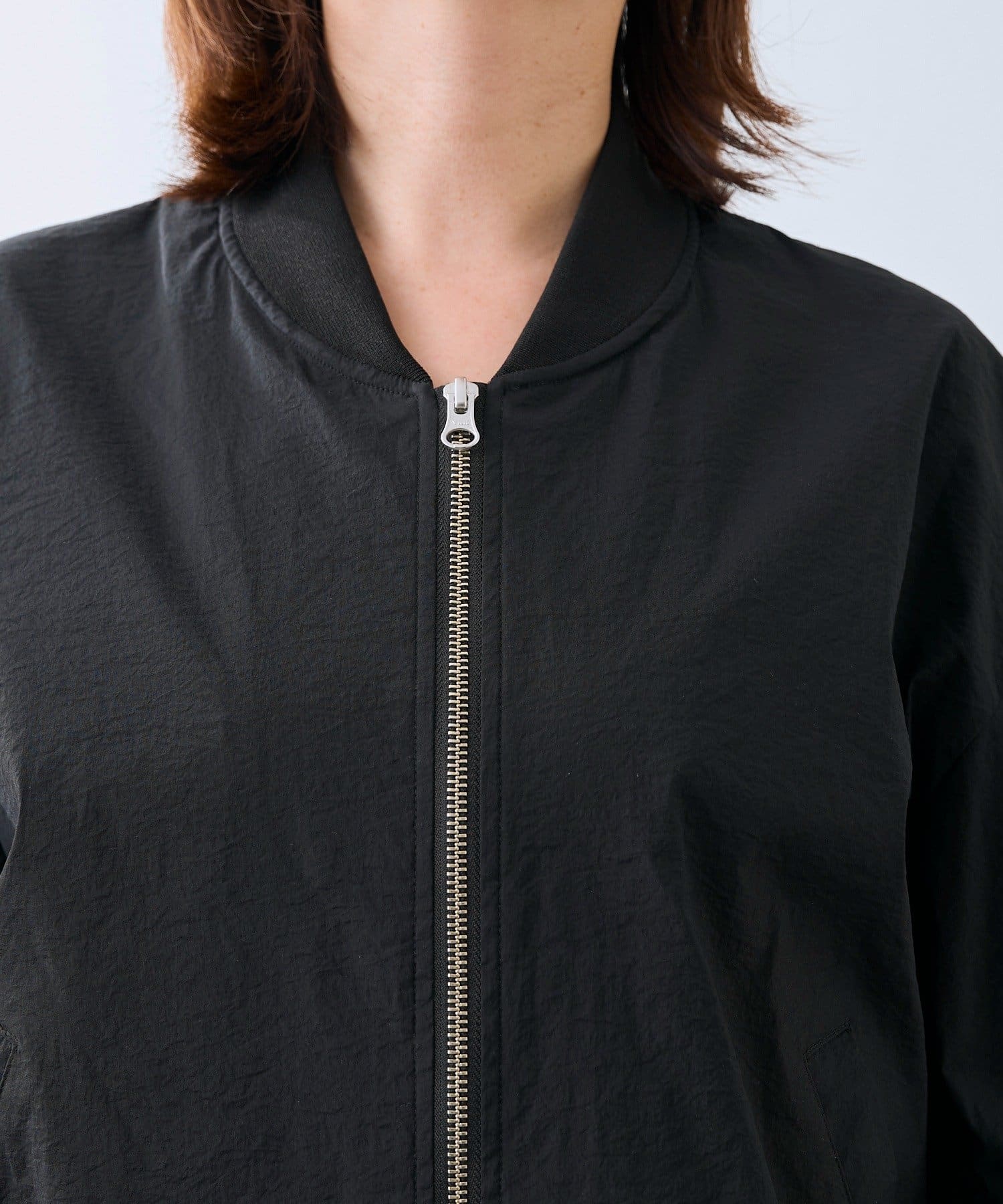紙のようなハリのある風合いの高機能素材ブルゾン