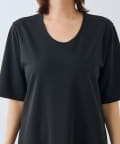 ・肌離れの良い素材をゆとりのあるストレートシルエットに仕立てており、身体のラインを拾いにくく涼しく着用いただけるのがポイント。