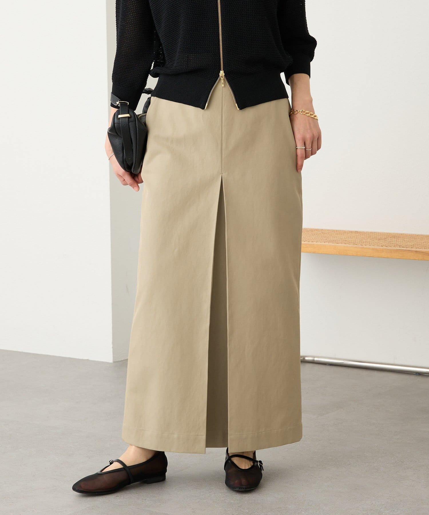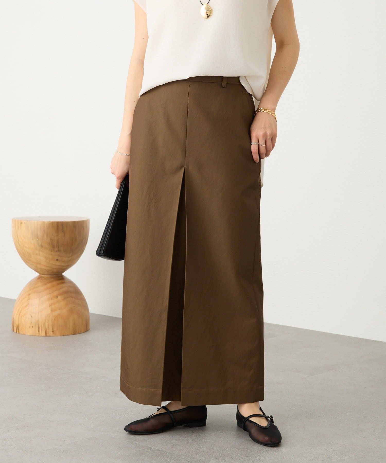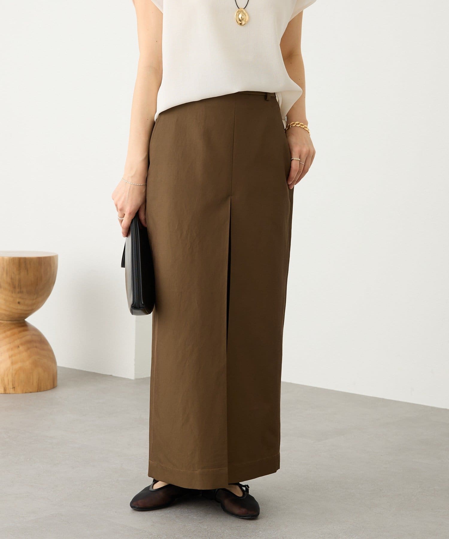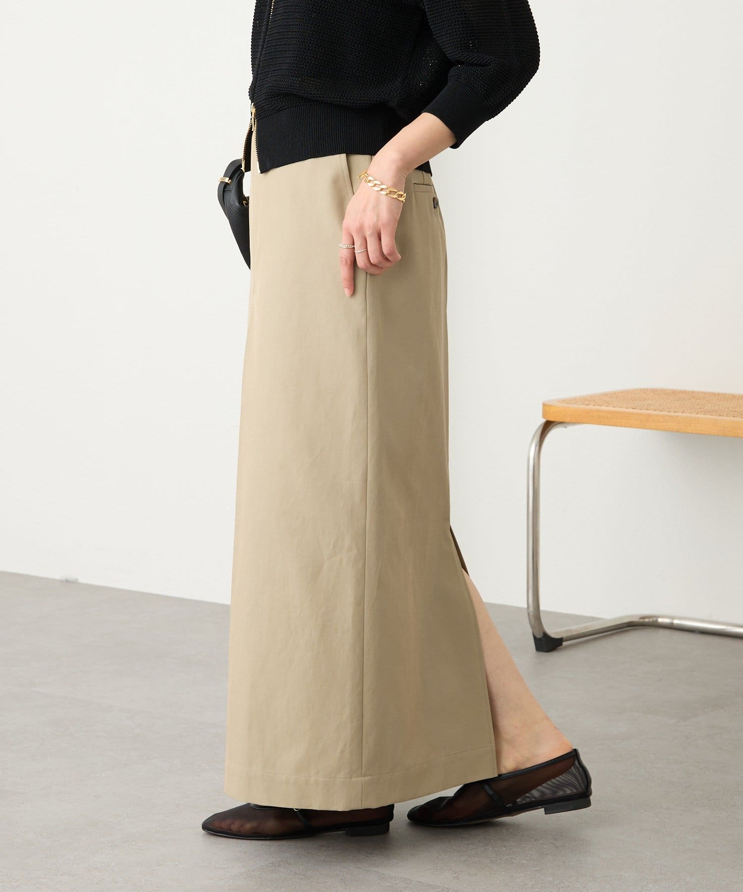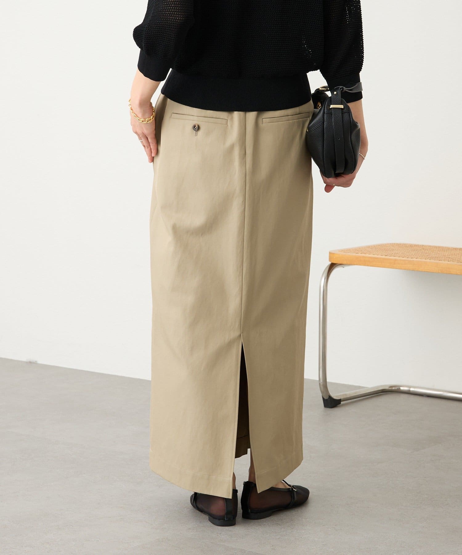 • 素材に女性らしい艶感があり、カジュアルになり過ぎない大人のチノスカート