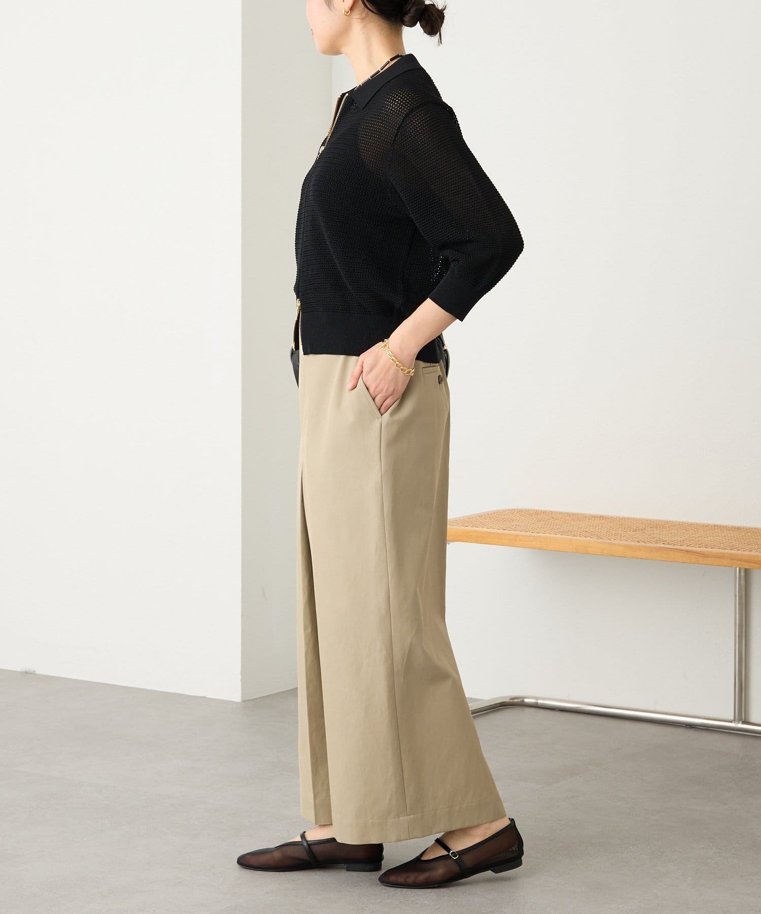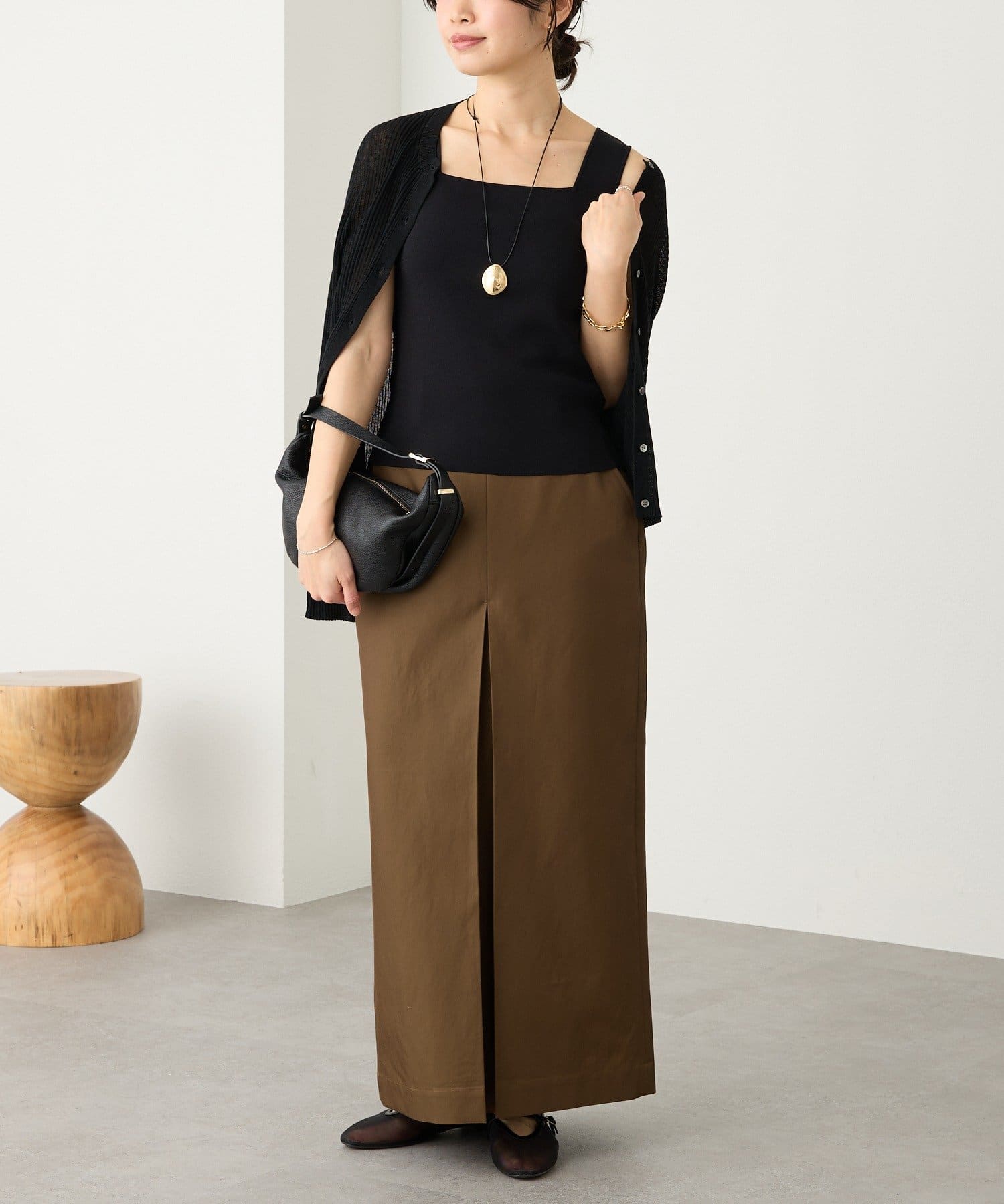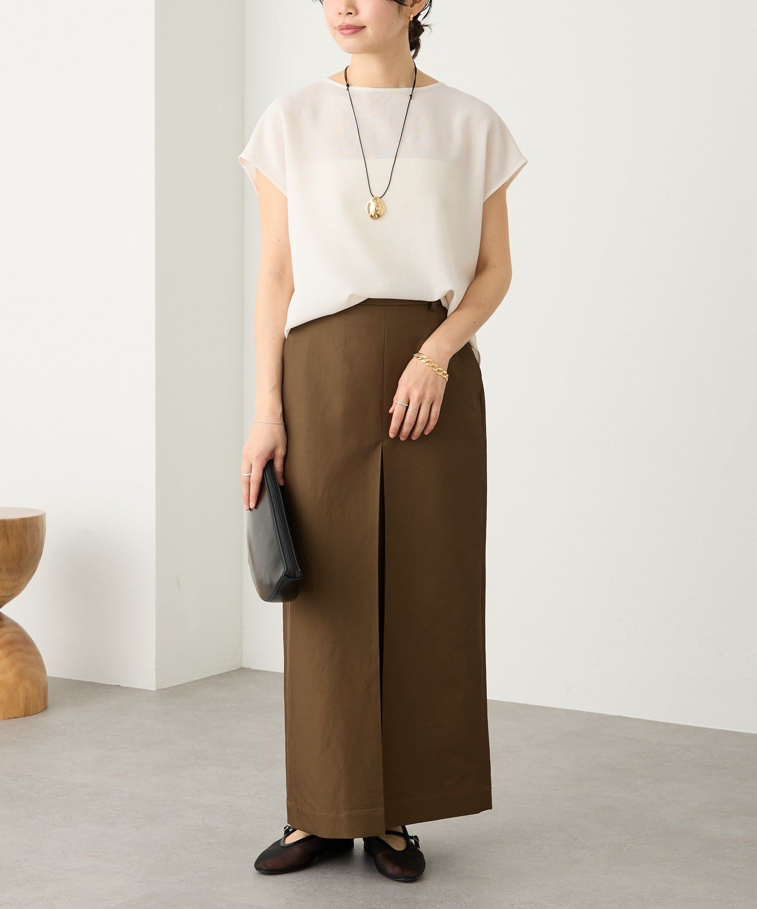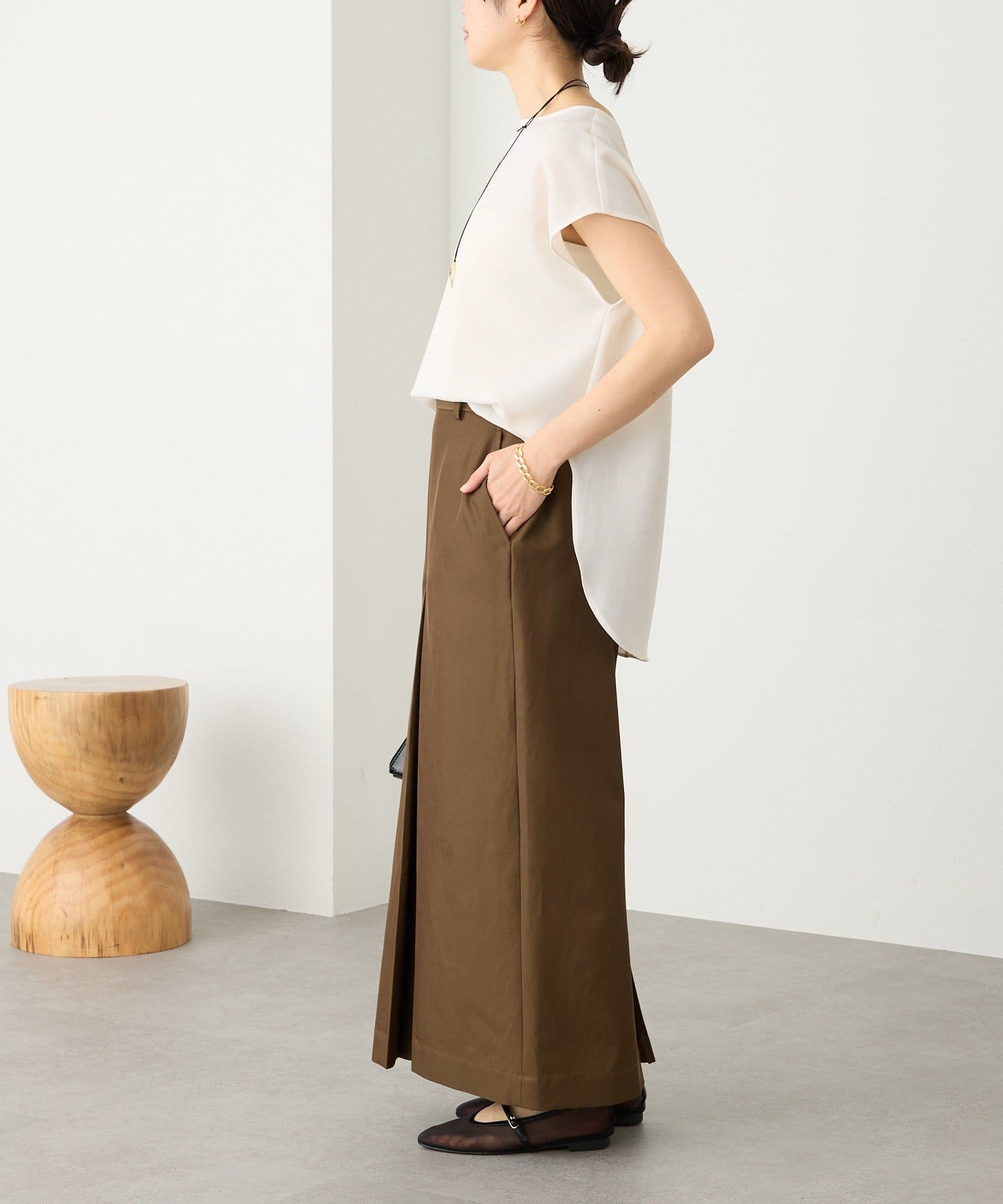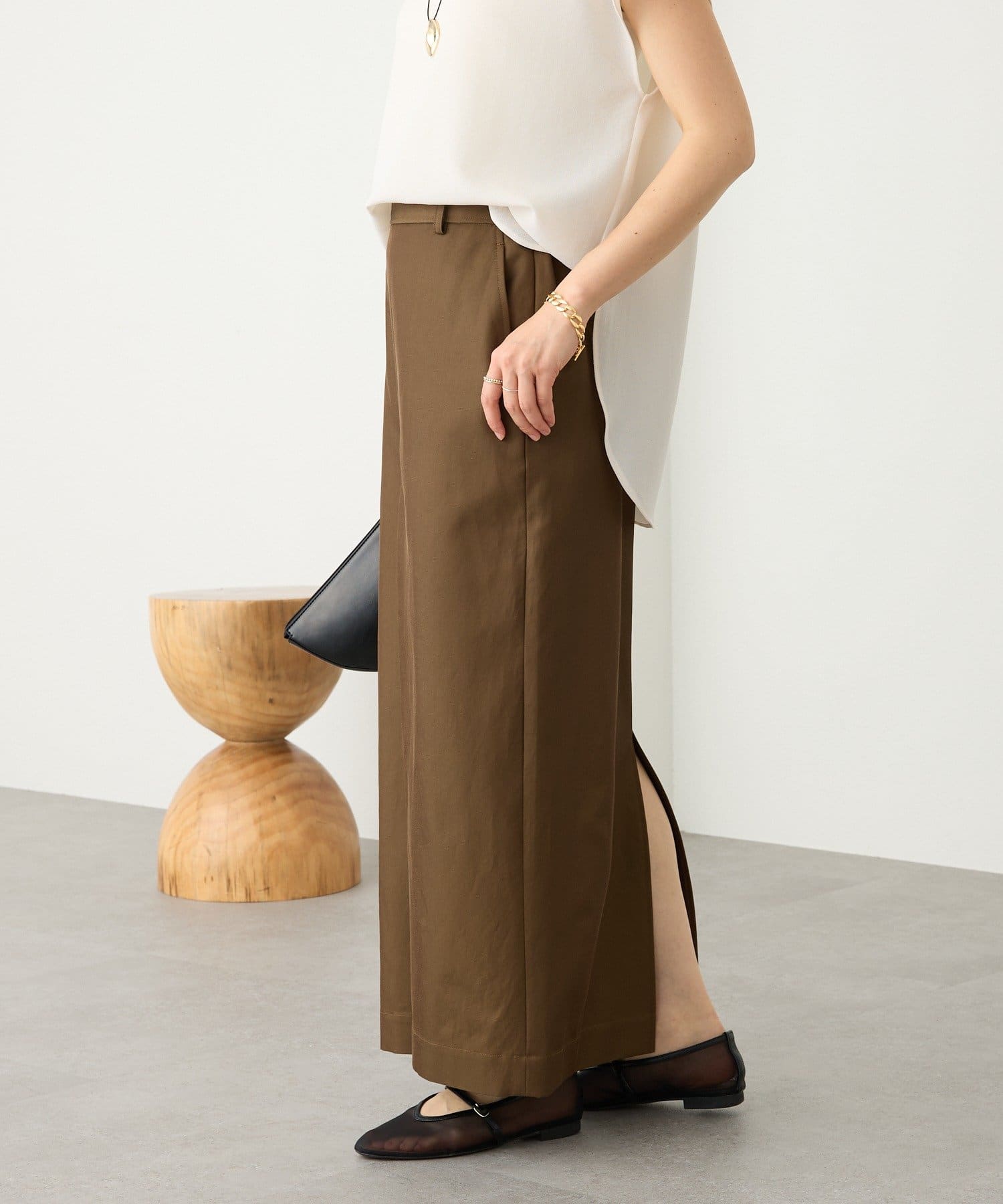 • 素材に女性らしい艶感があり、カジュアルになり過ぎない大人のチノスカート