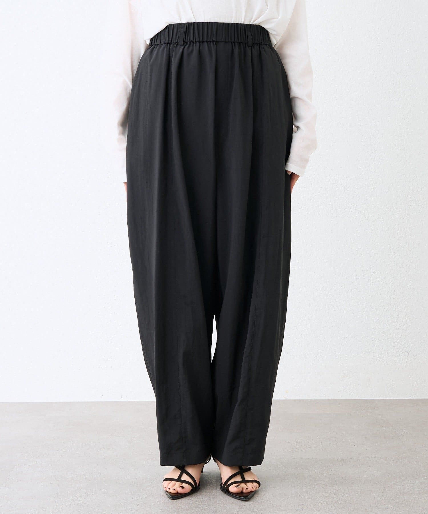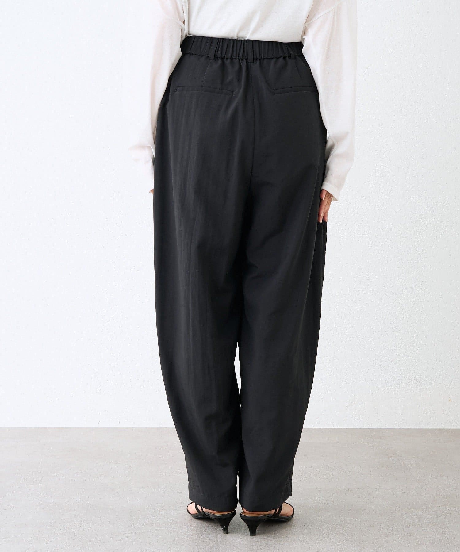 ・ウエストギャザーでイージーに履いていただけるバレルパンツ
