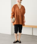・深めのVネック開きで甘くなりすぎず、前を開けて羽織としてもお使いいただけます