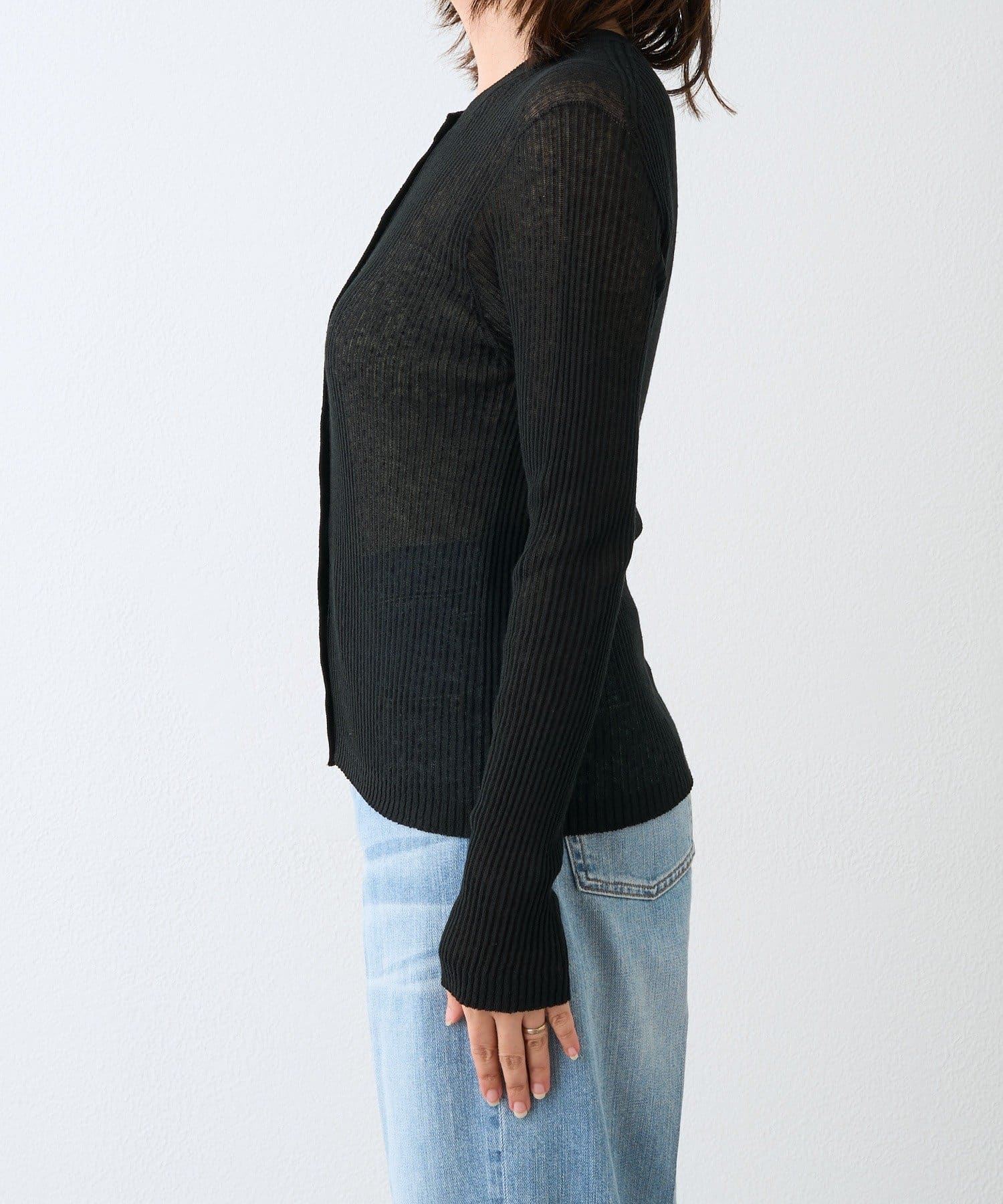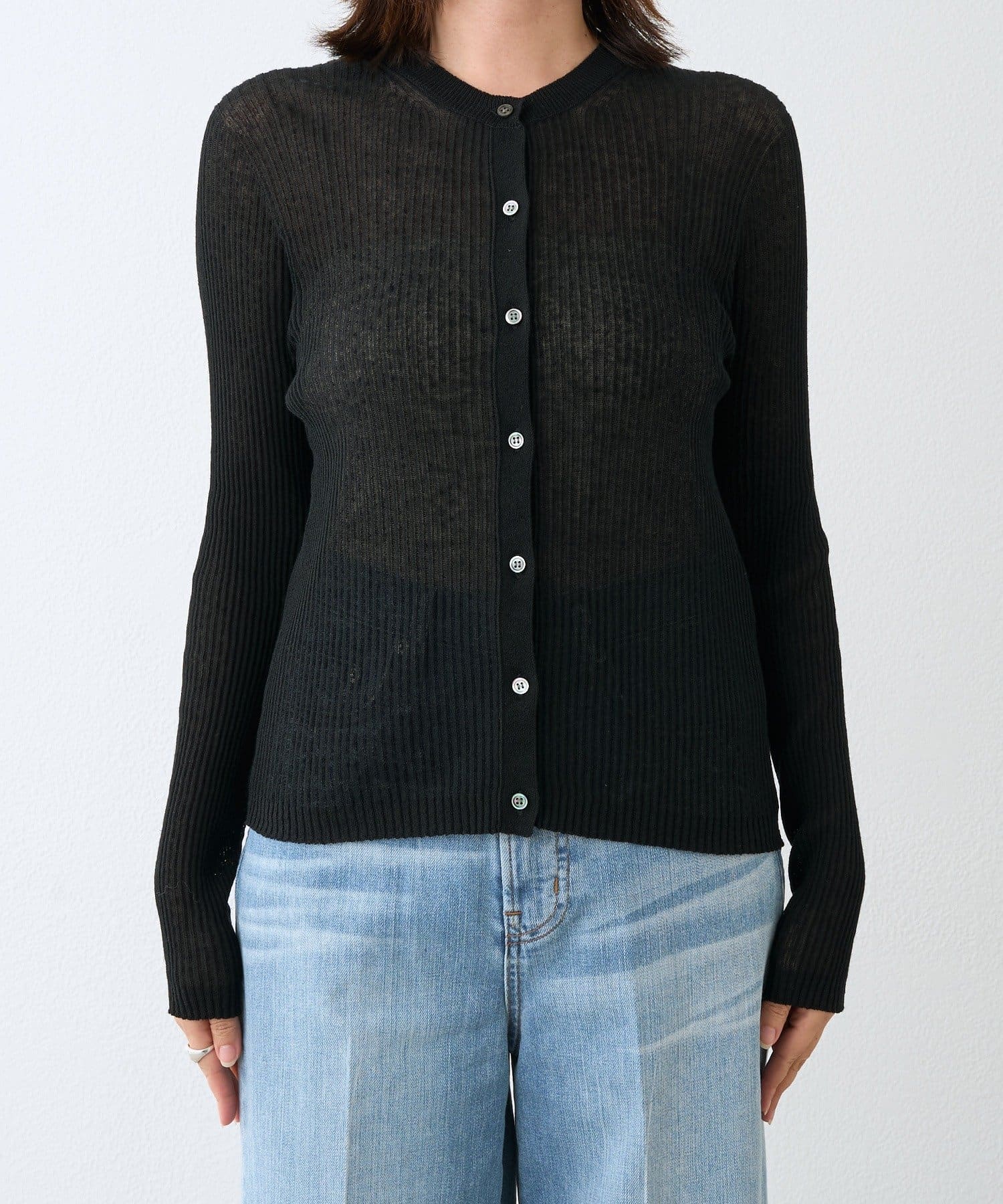 ・素材の繊細な表情と柔らかなシアー感でスタイリングに抜けを出してくれるリブカーディガン