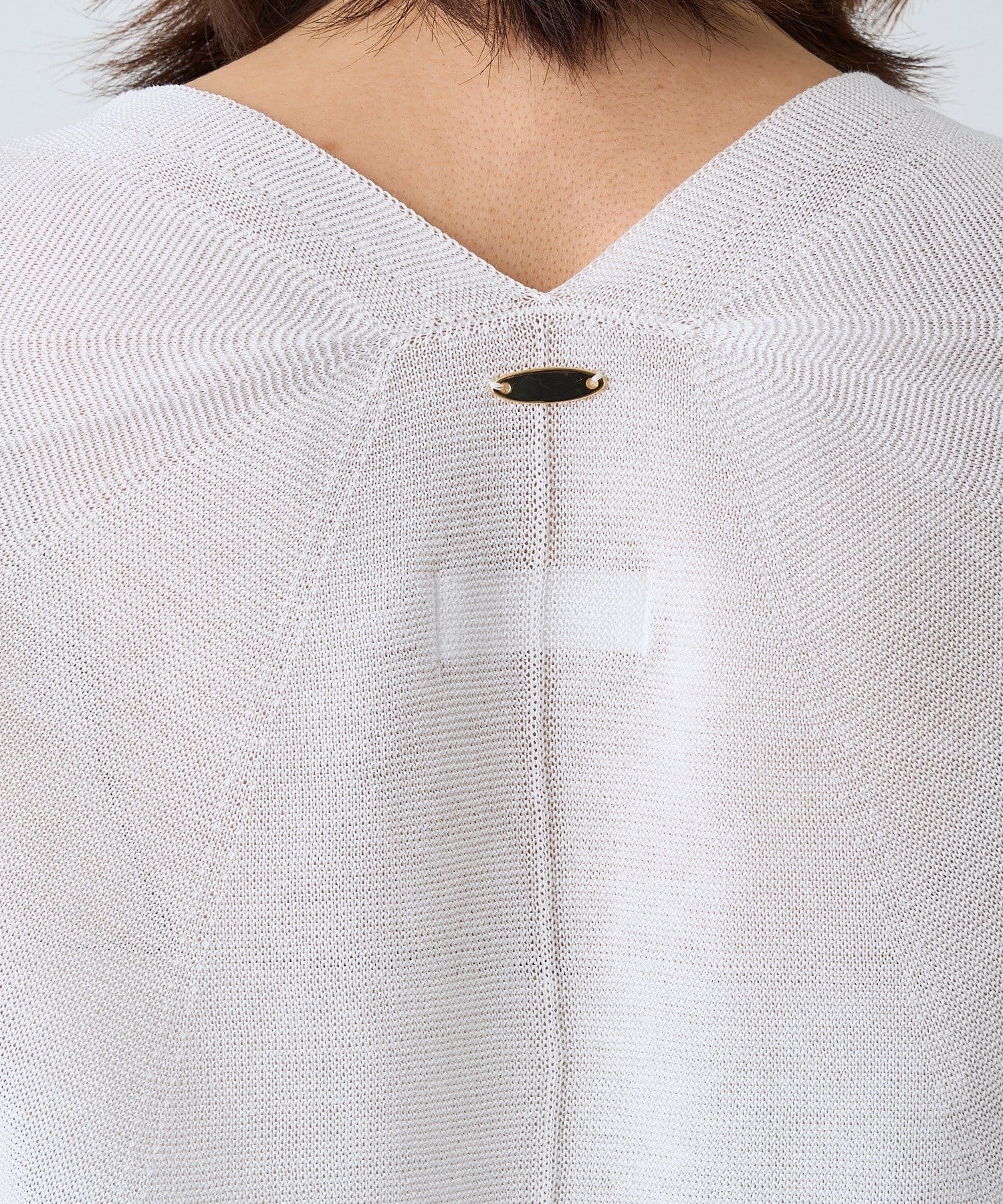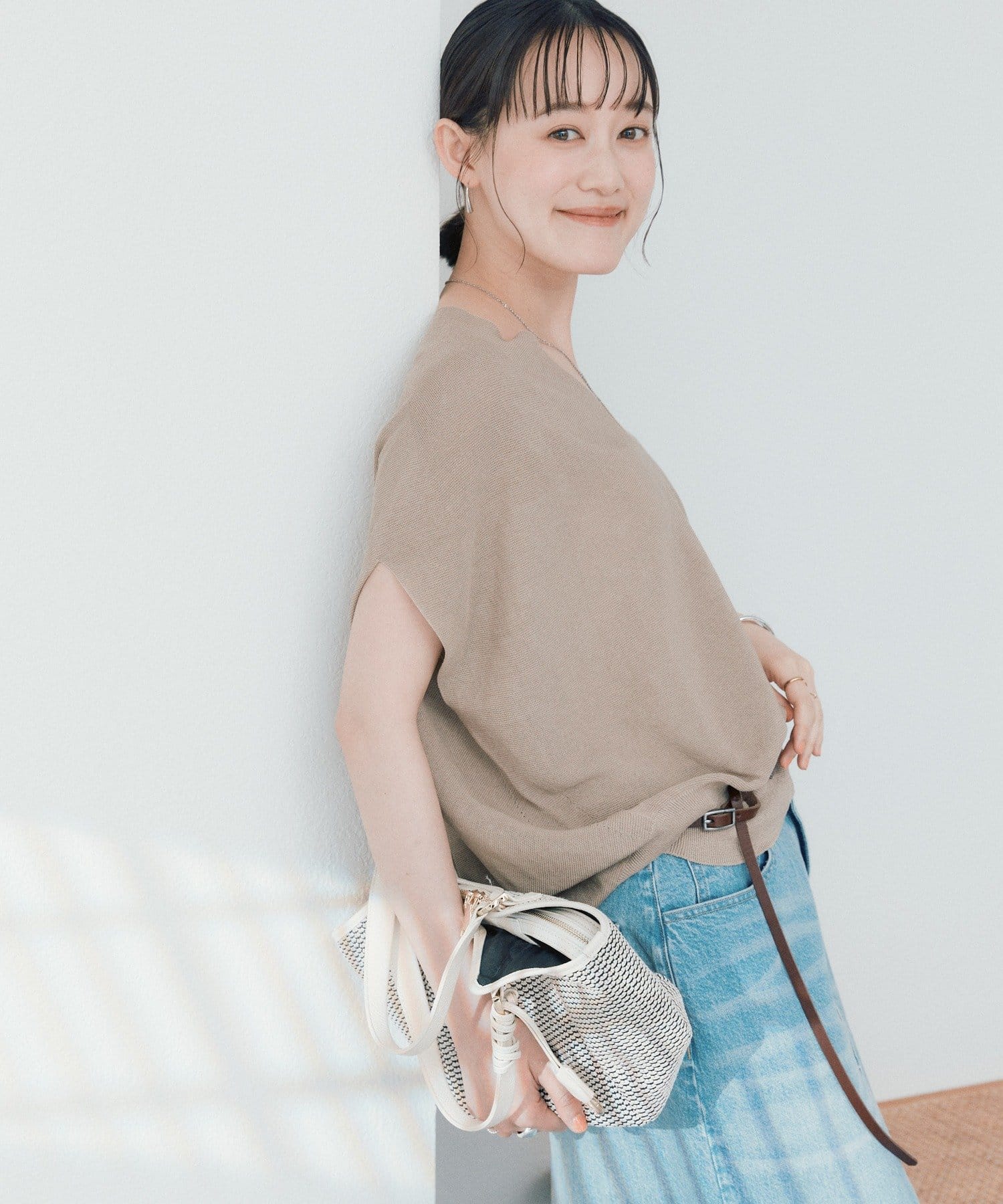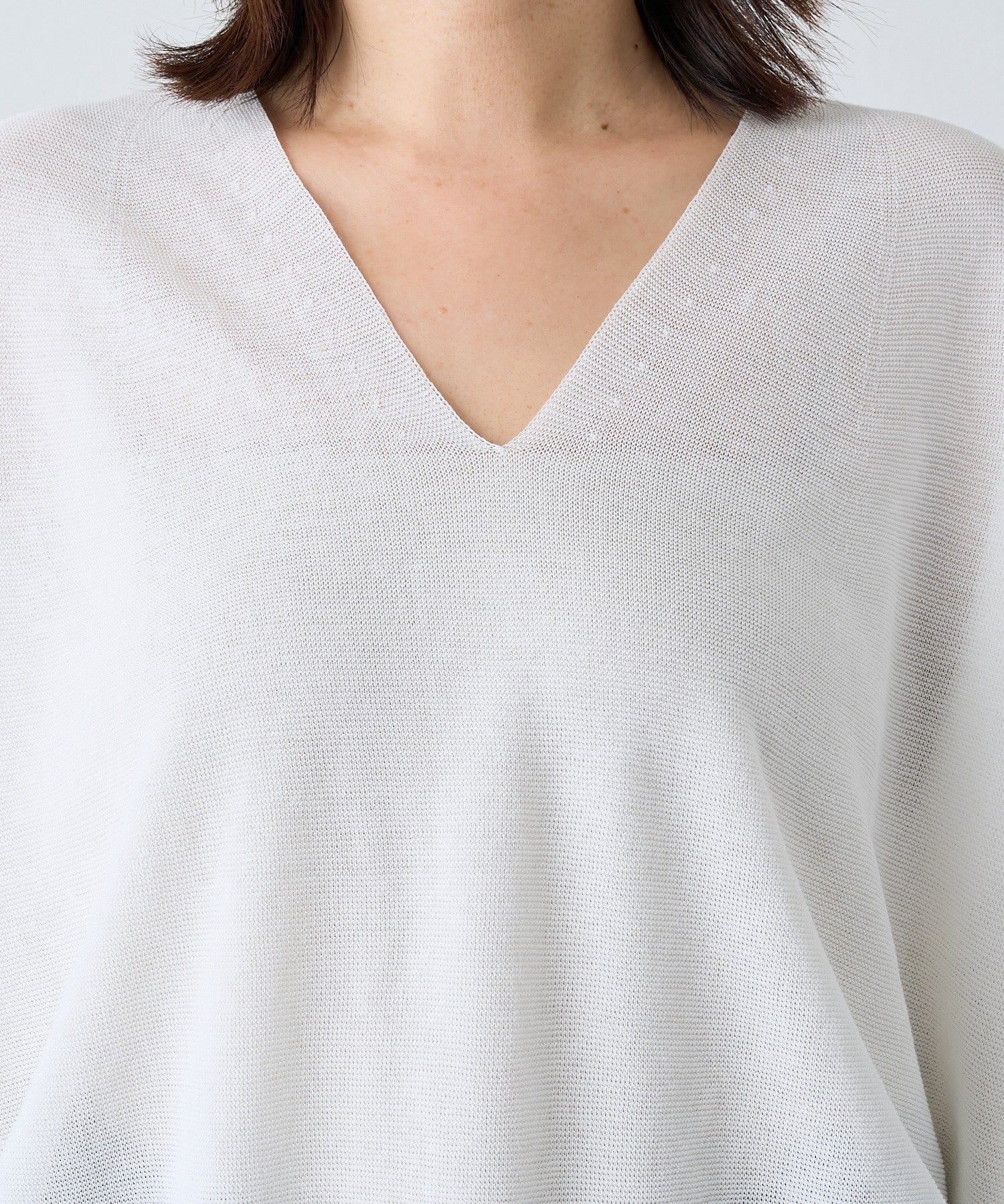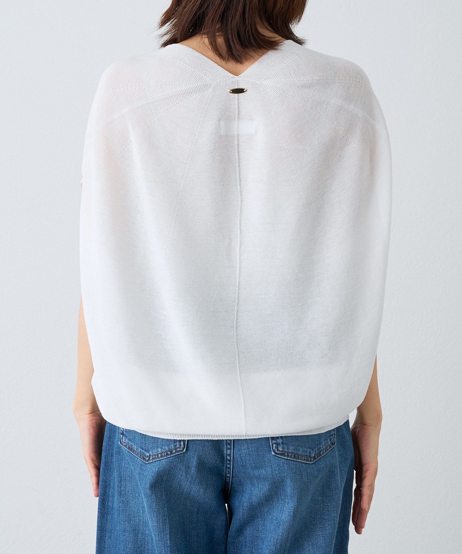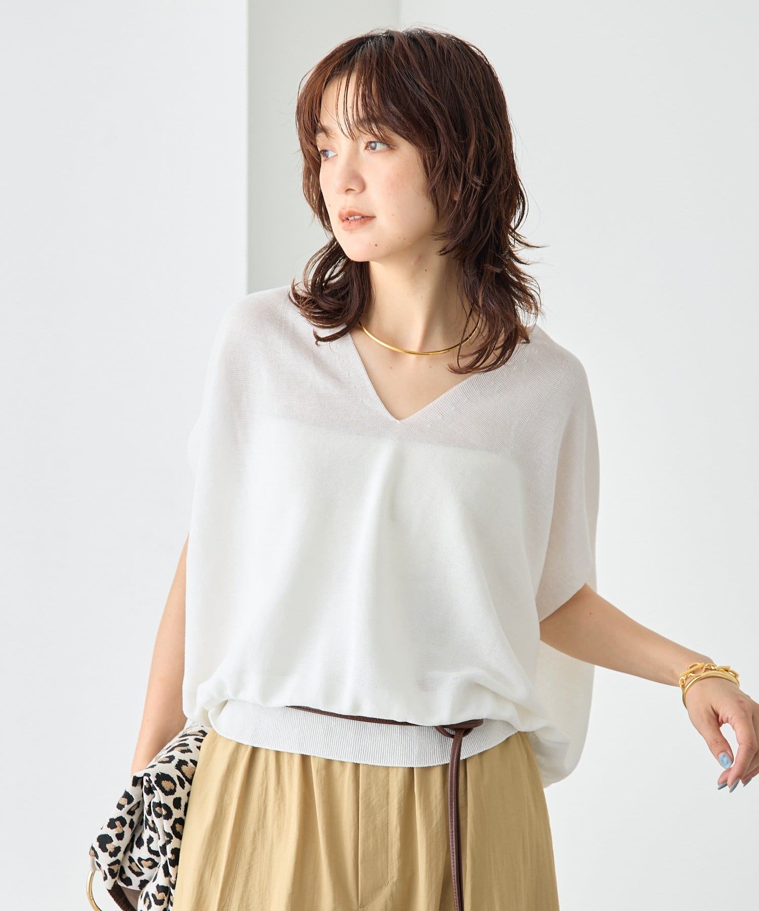 ジャケットやブルゾンの下に着用いただいても、夏に一枚で着ていただいてもおすすめなサマーニットです。