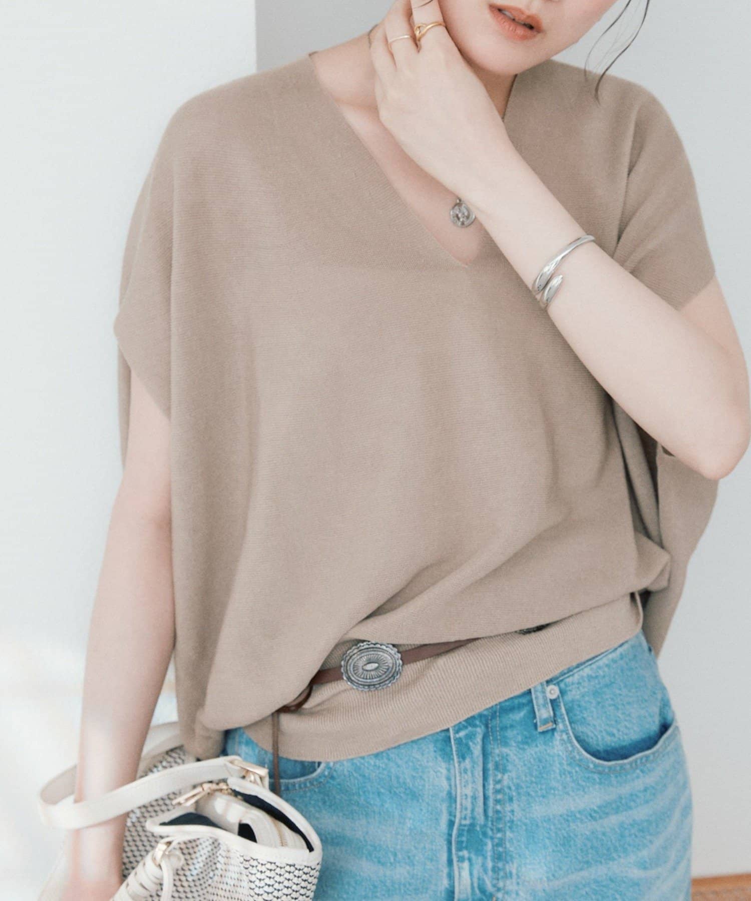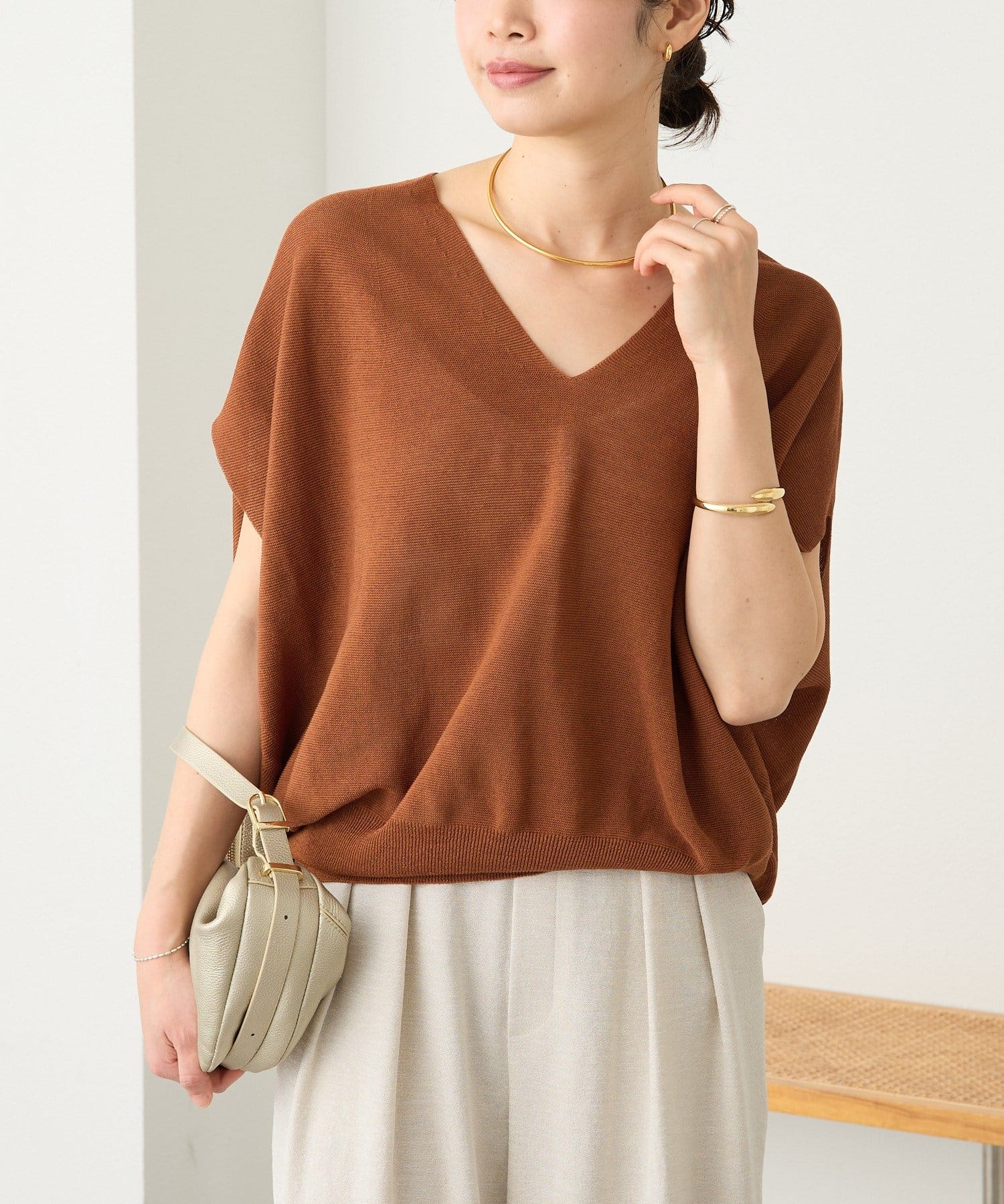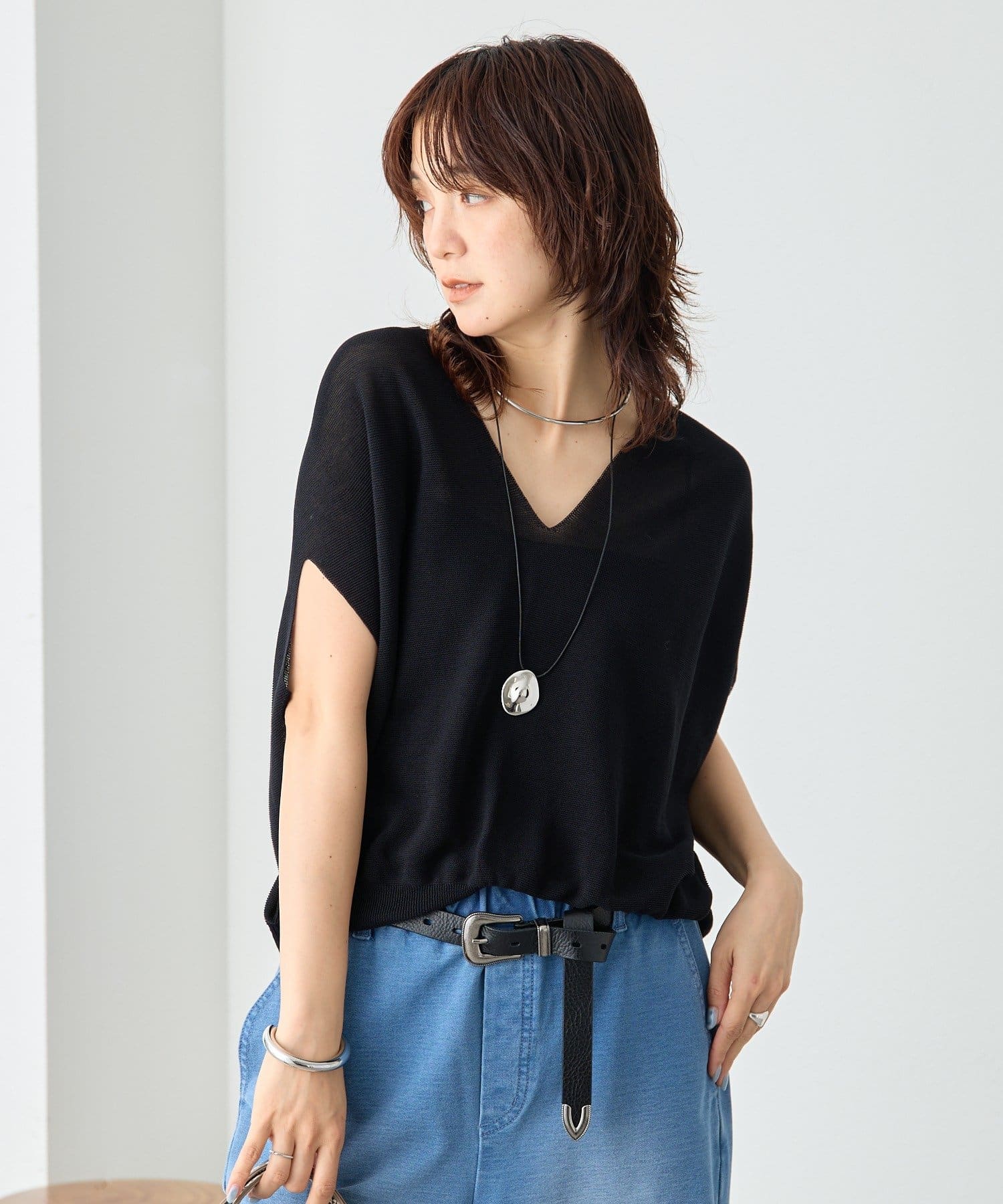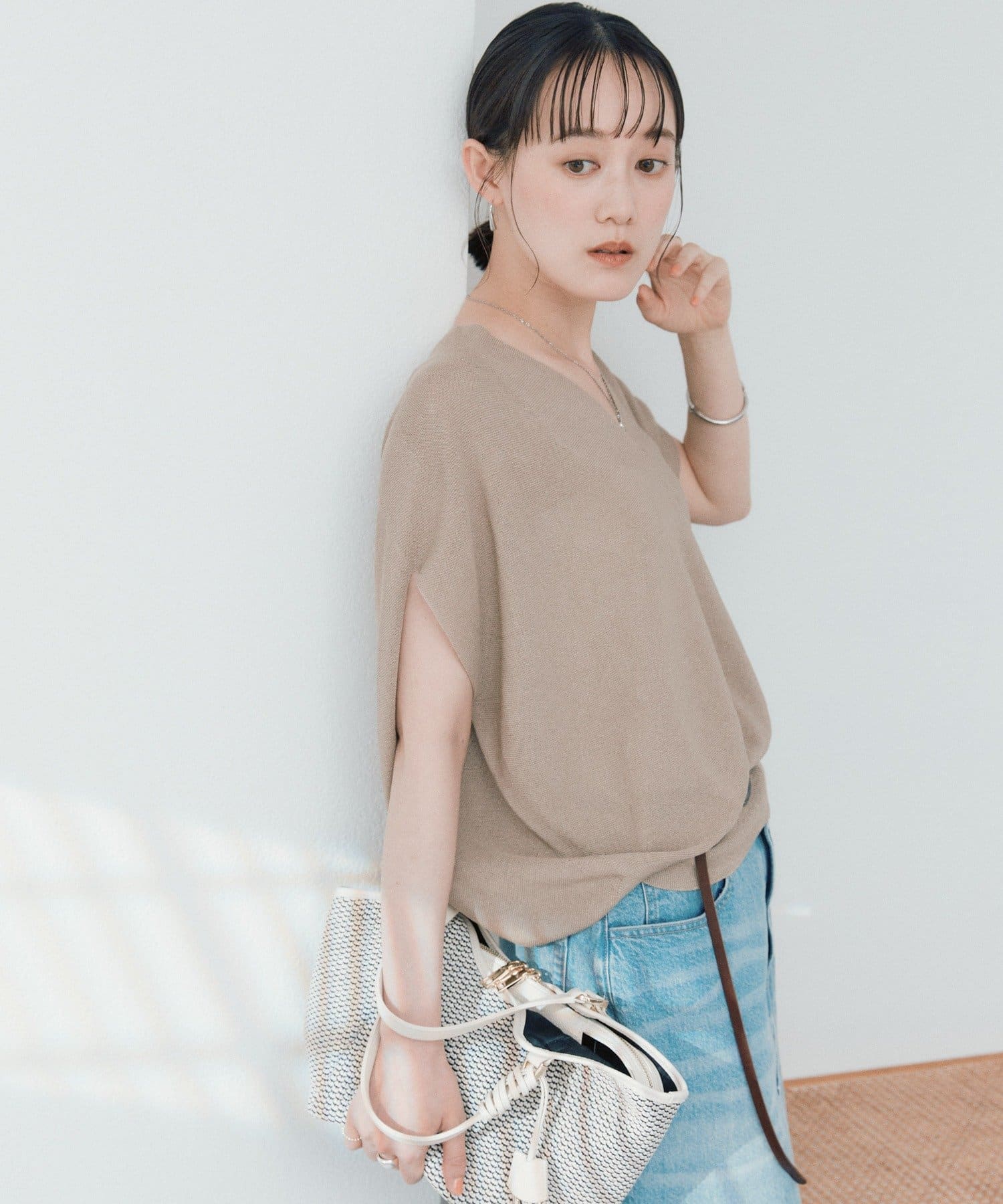 ジャケットやブルゾンの下に着用いただいても、夏に一枚で着ていただいてもおすすめなサマーニットです。