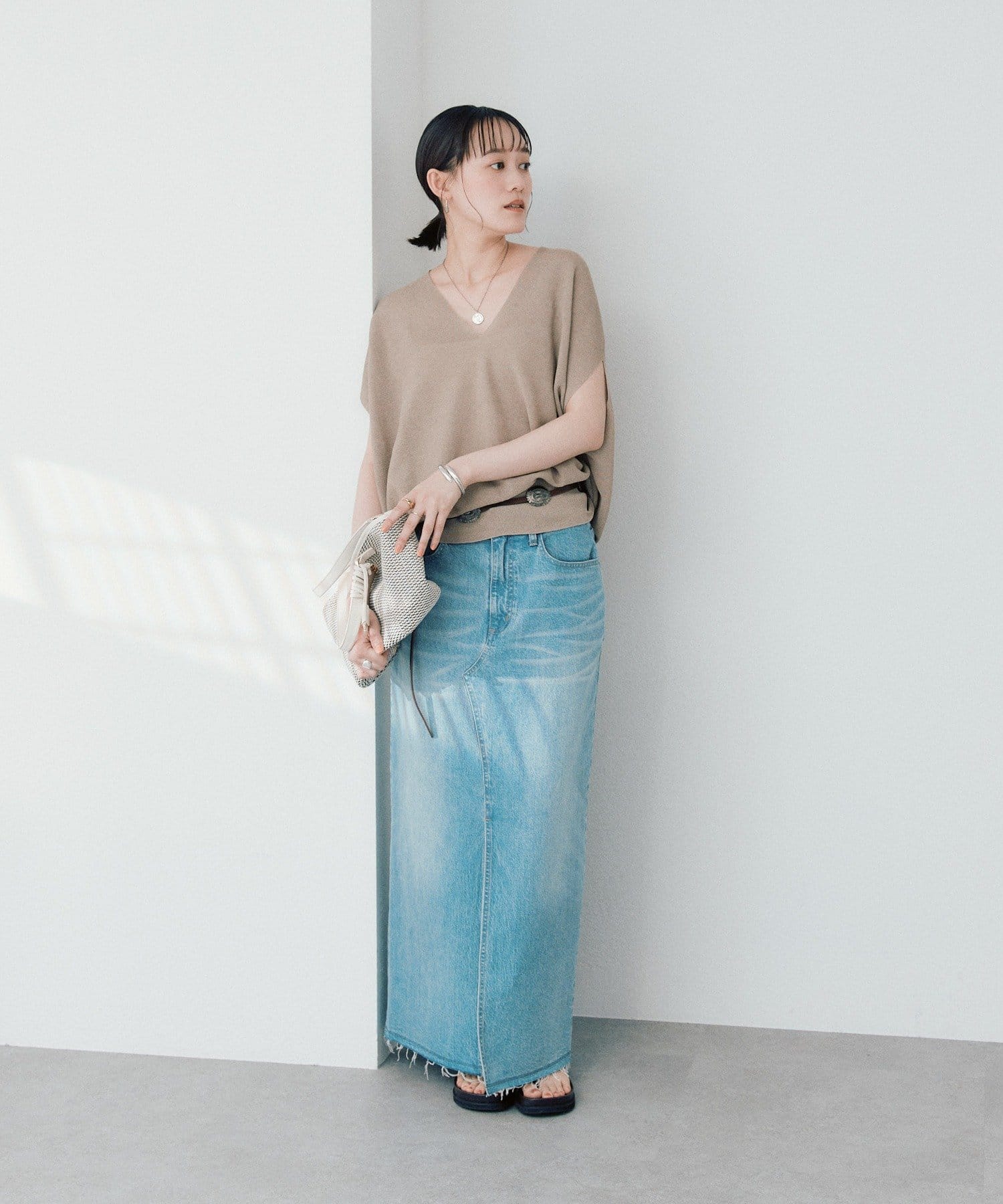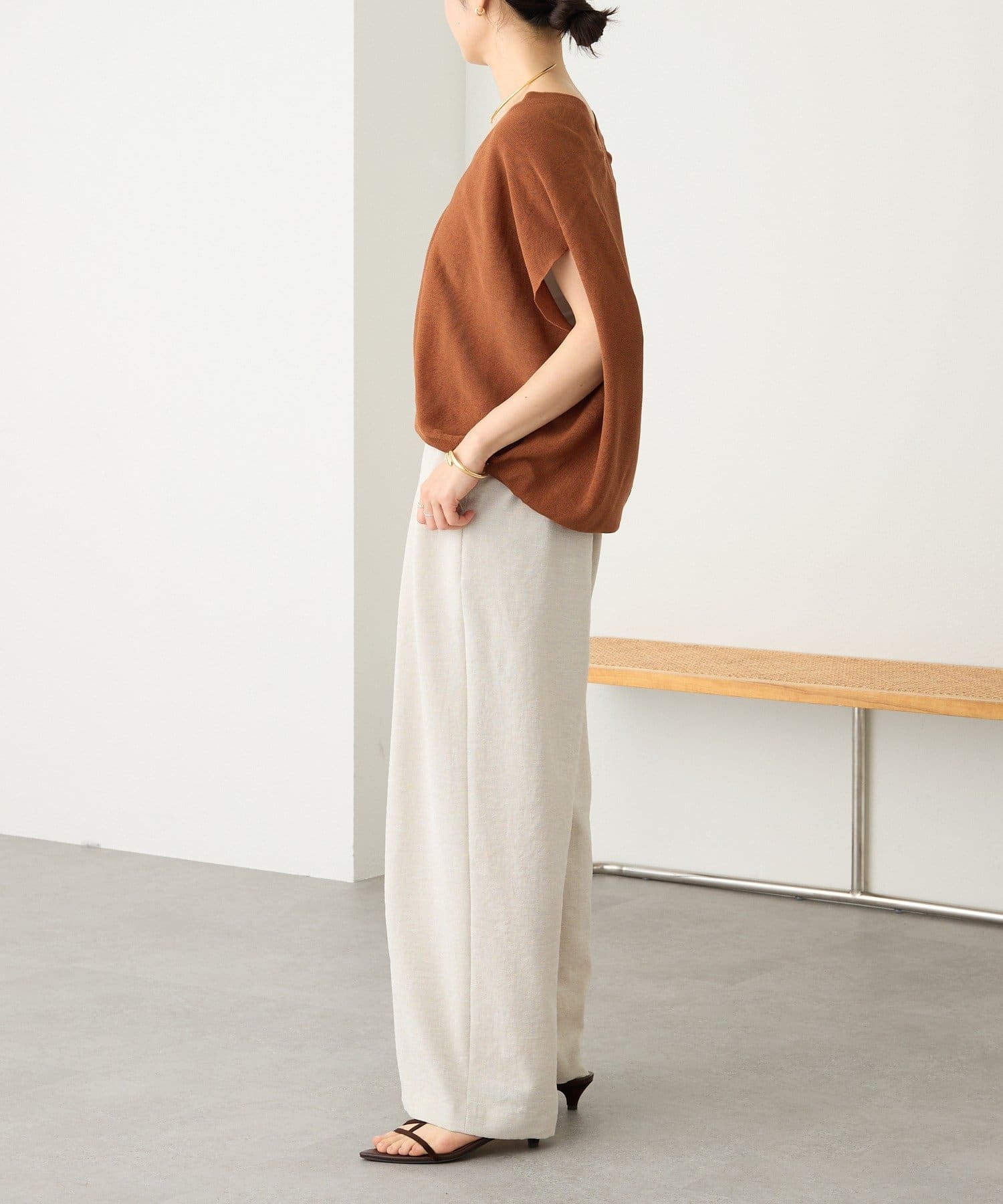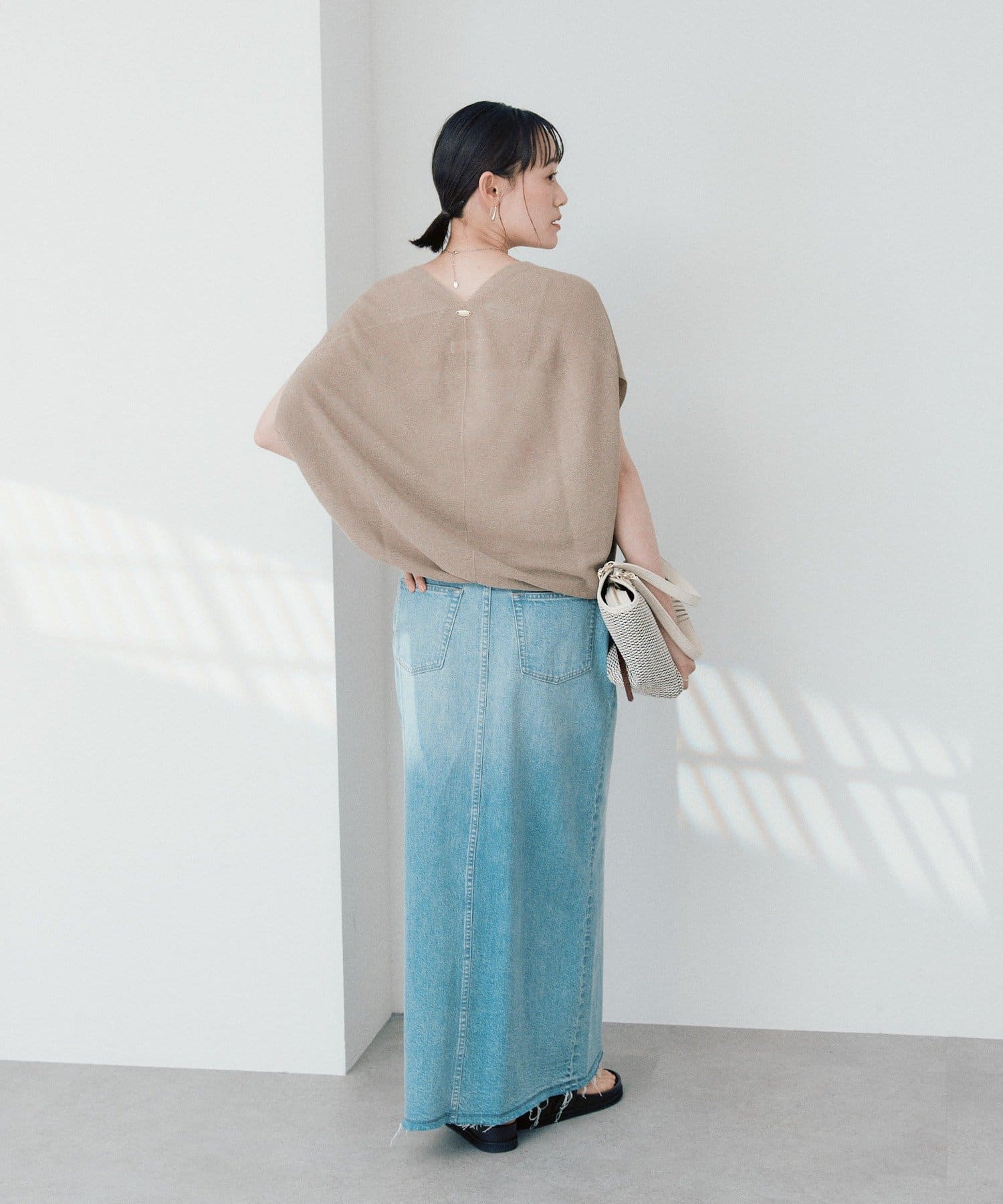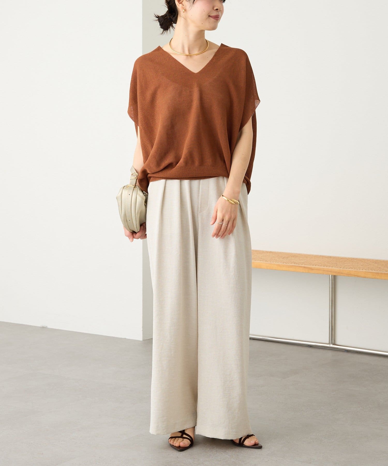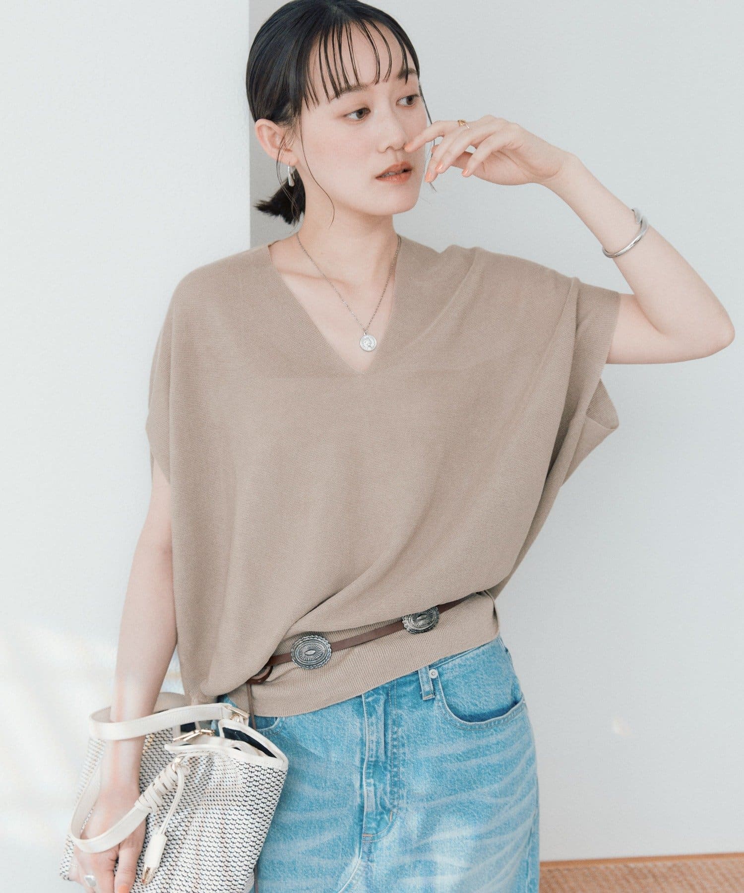 ジャケットやブルゾンの下に着用いただいても、夏に一枚で着ていただいてもおすすめなサマーニットです。