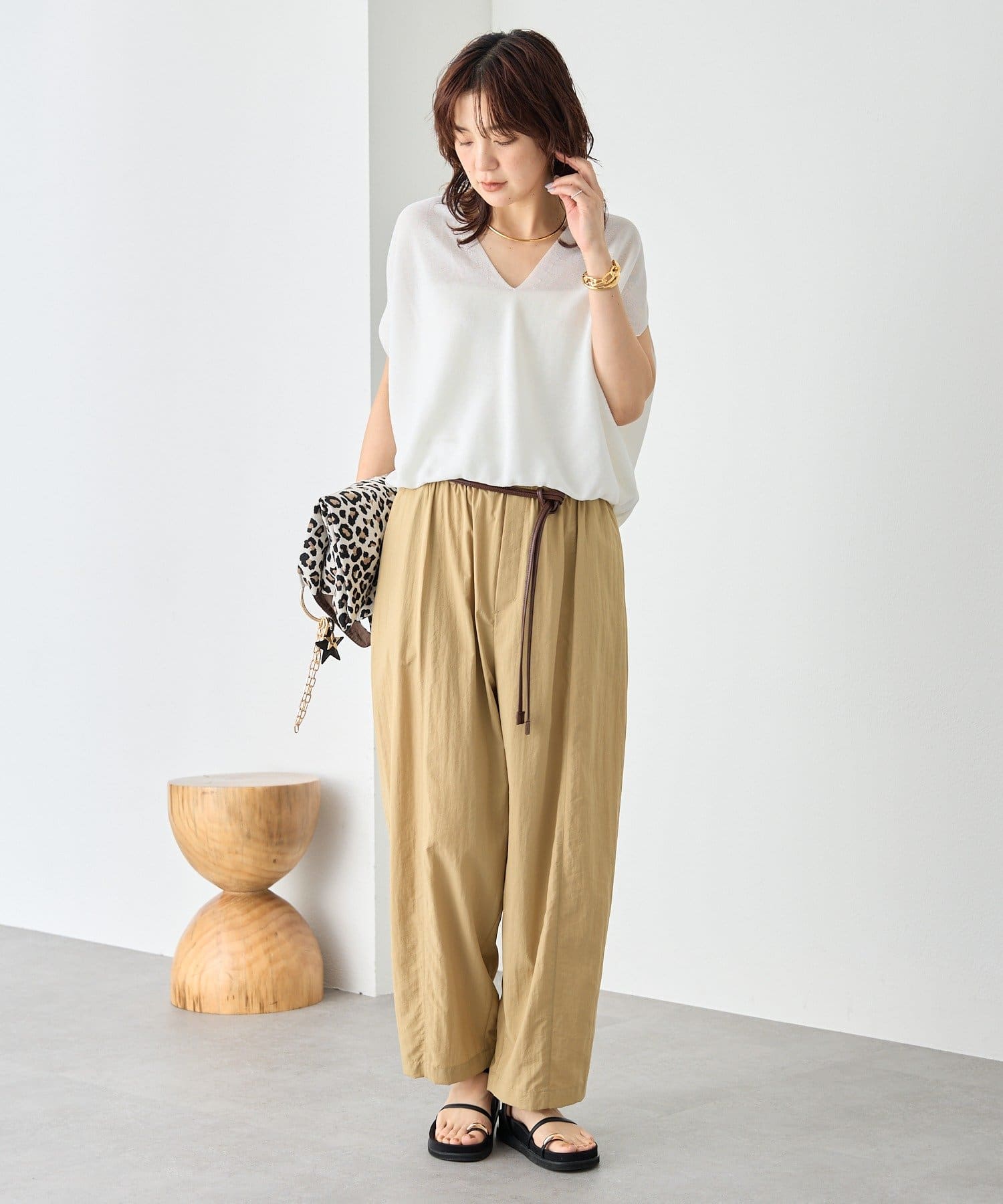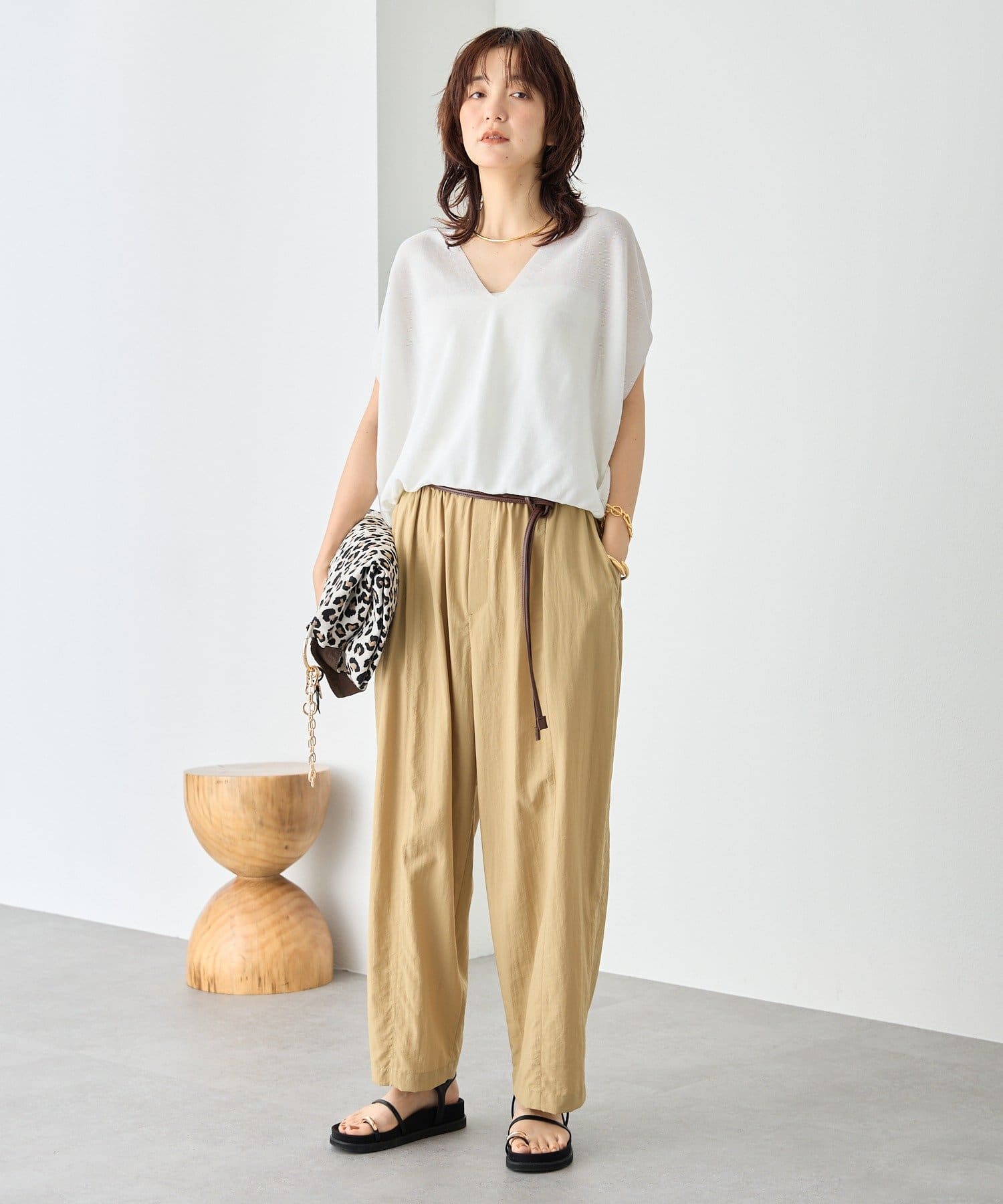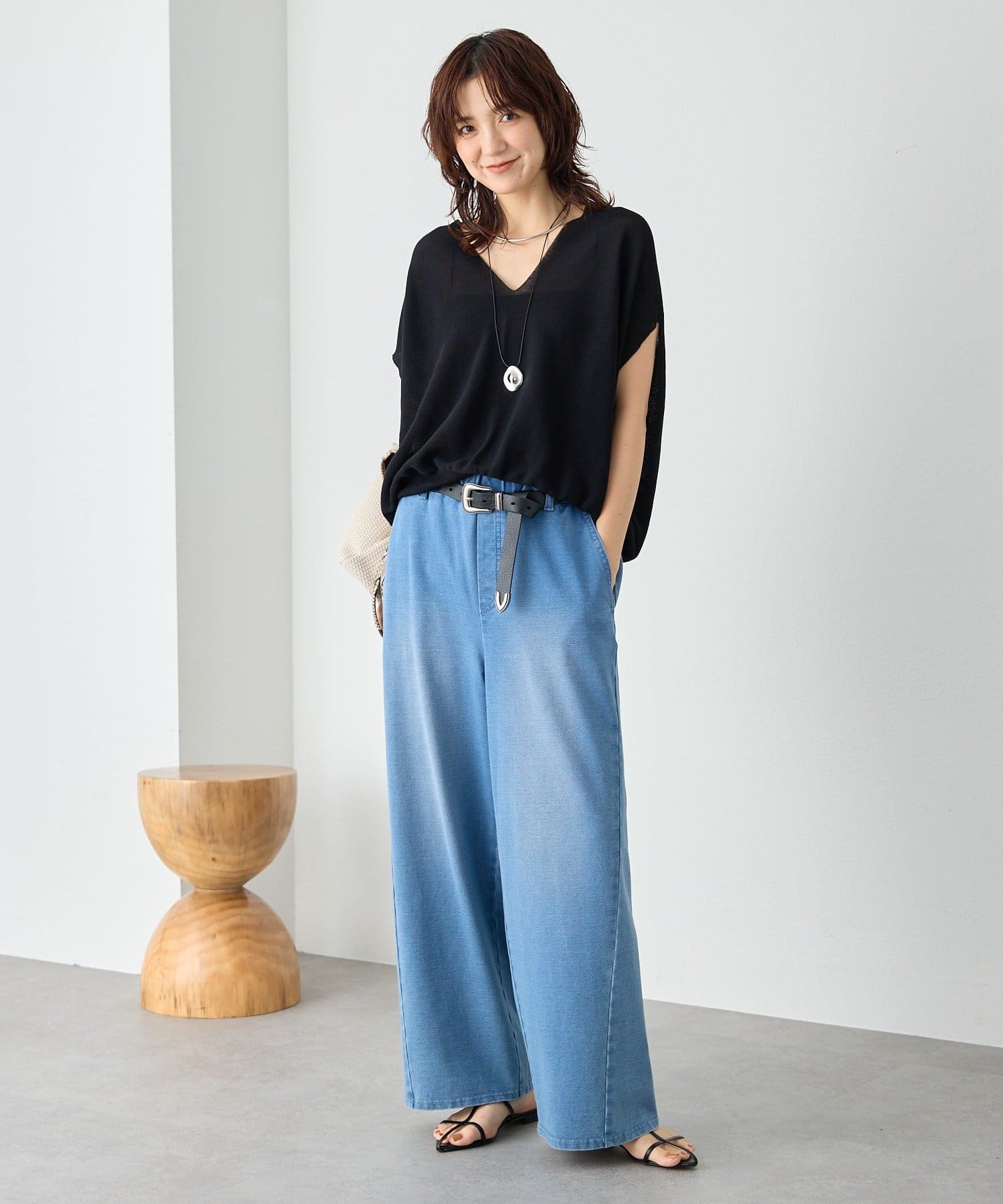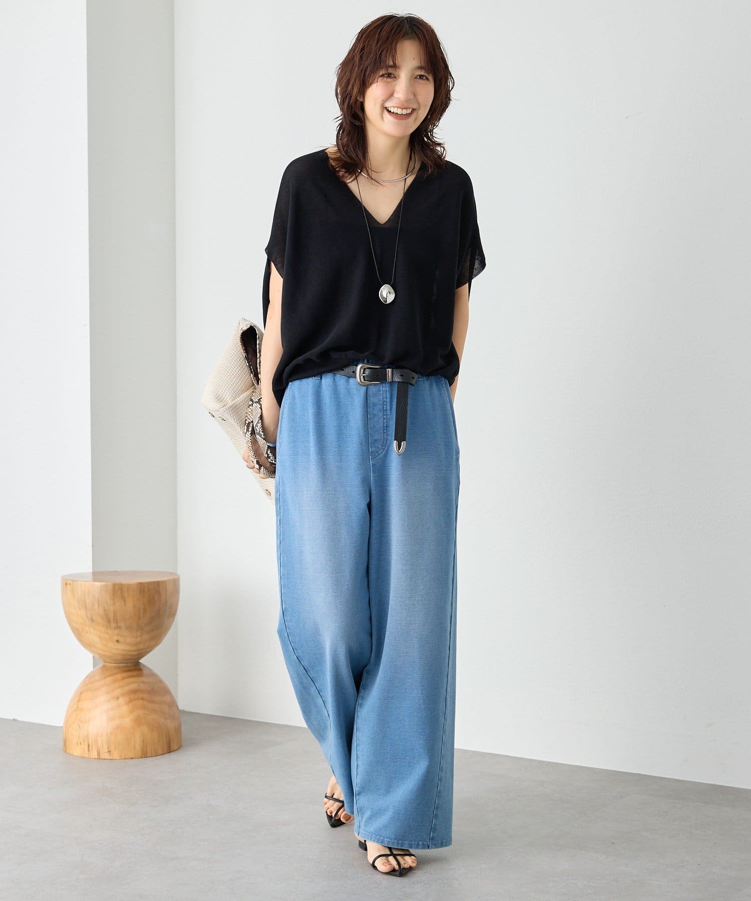肌離れの良い清涼感のある編地でほんのり透け感があり、涼しげな見た目もポイント。