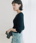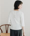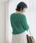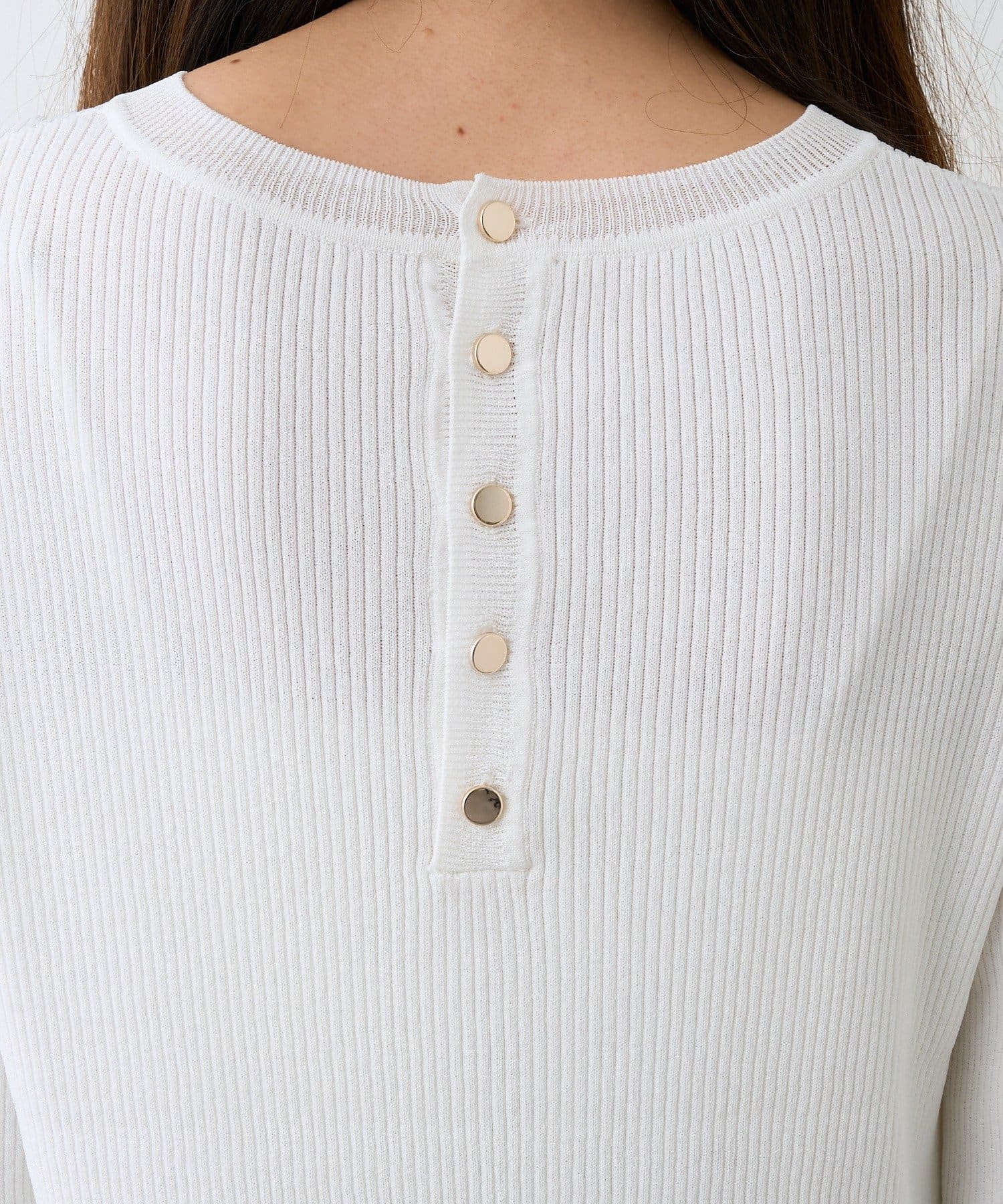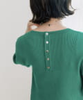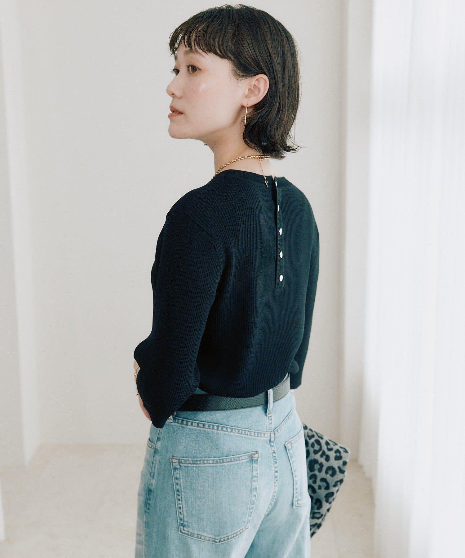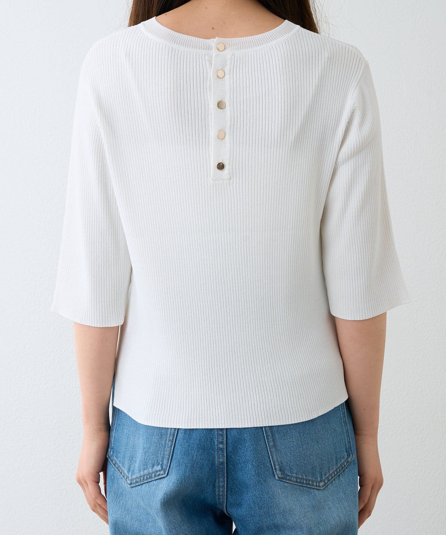・肘が隠れる五分袖と、バックスタイルのメタルボタンがポイントのプルオーバー。