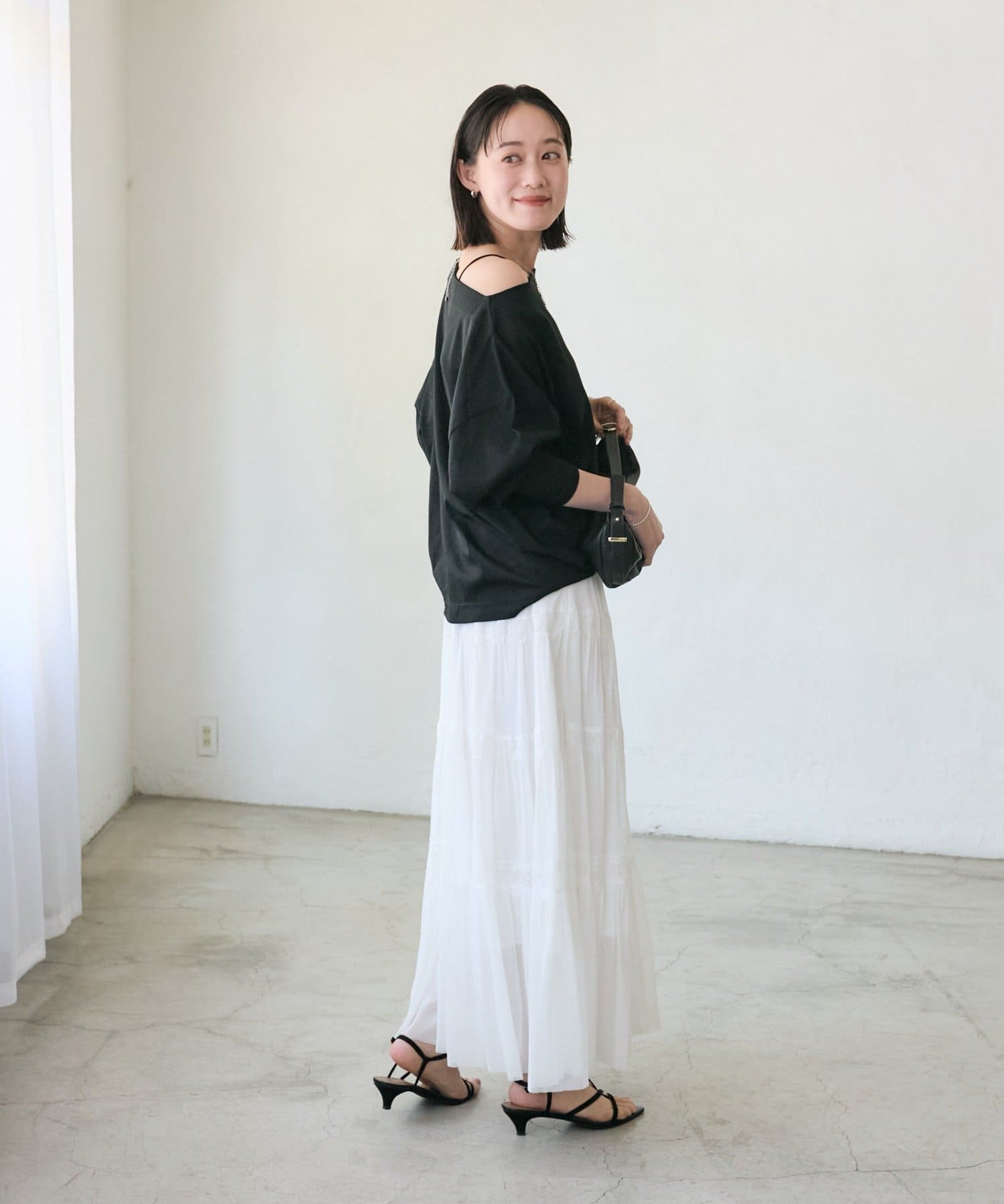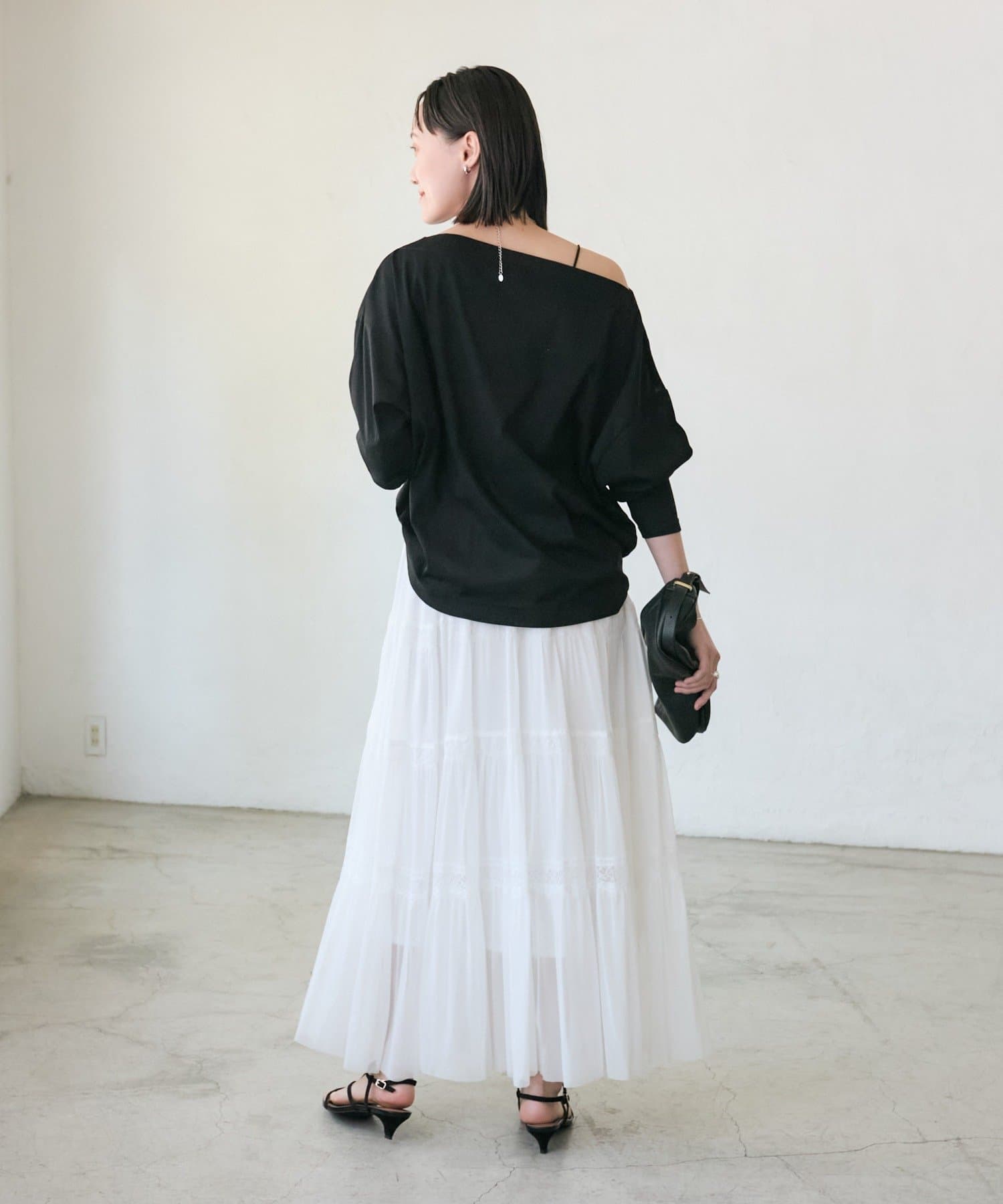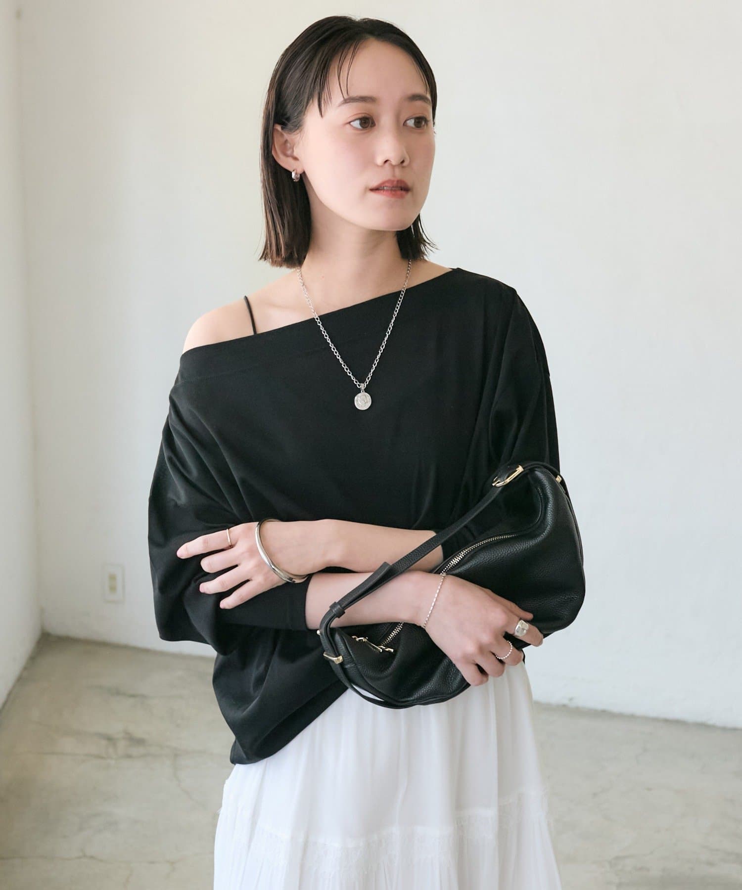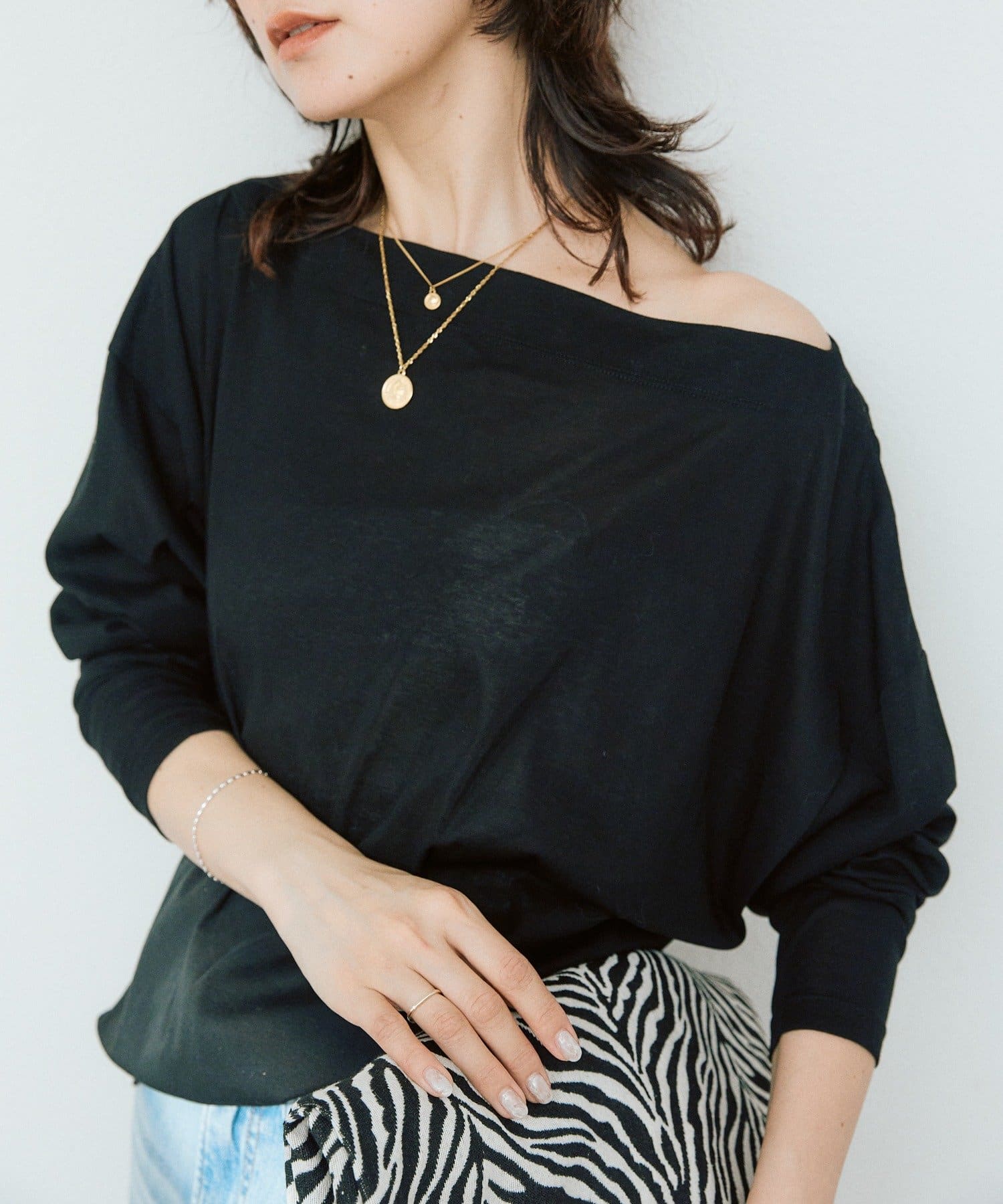 ・抜けのある衿ぐりのラインが女性らしいカットソー