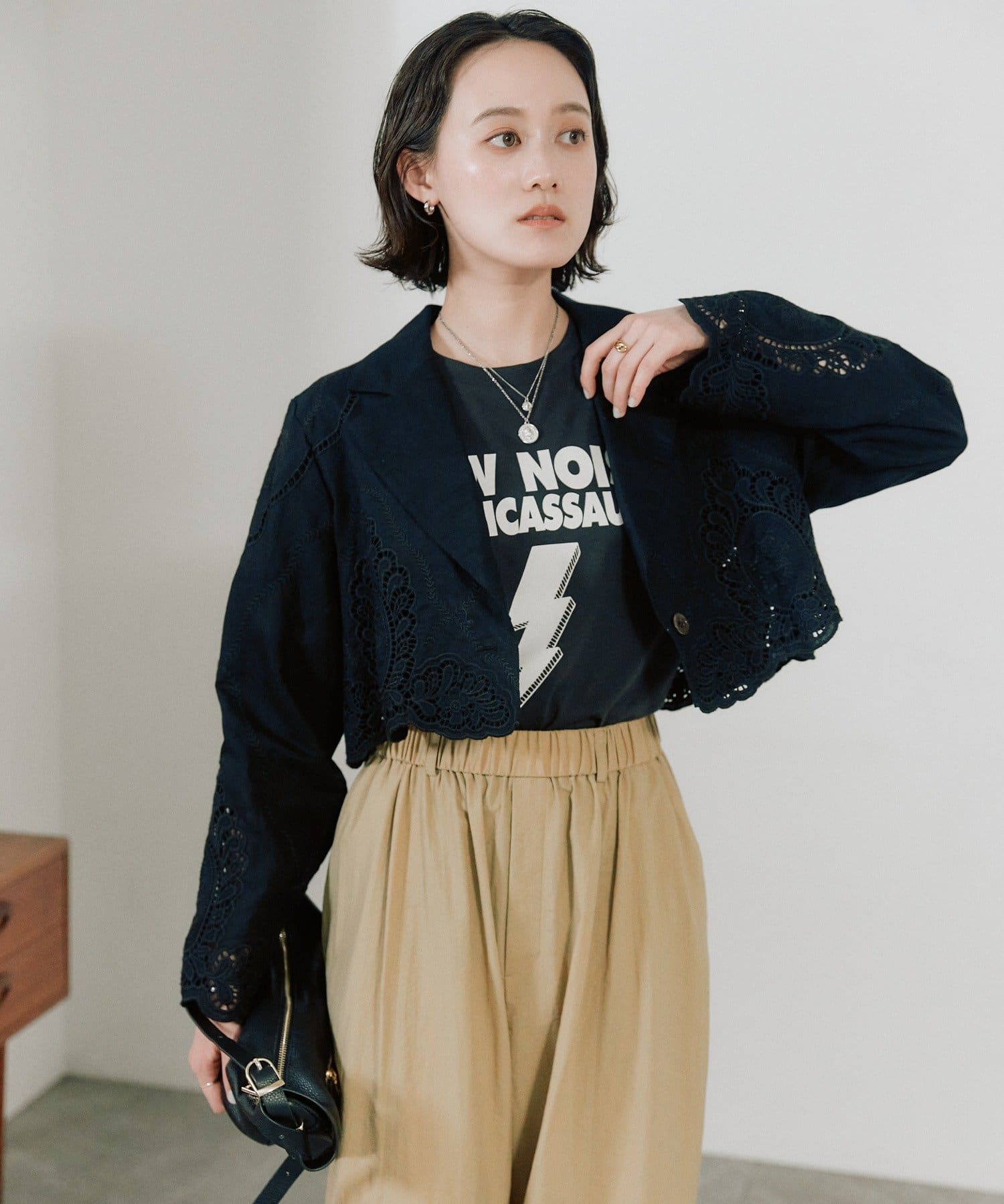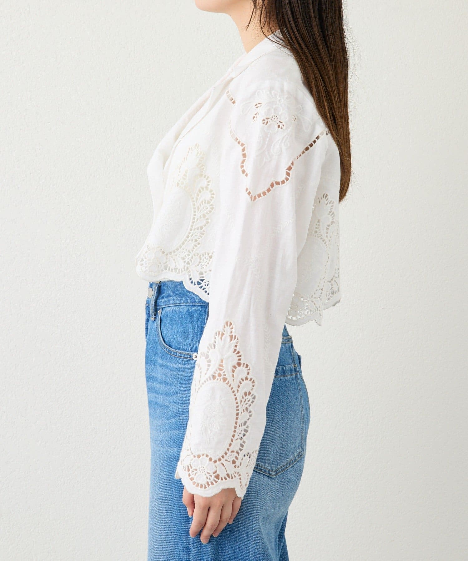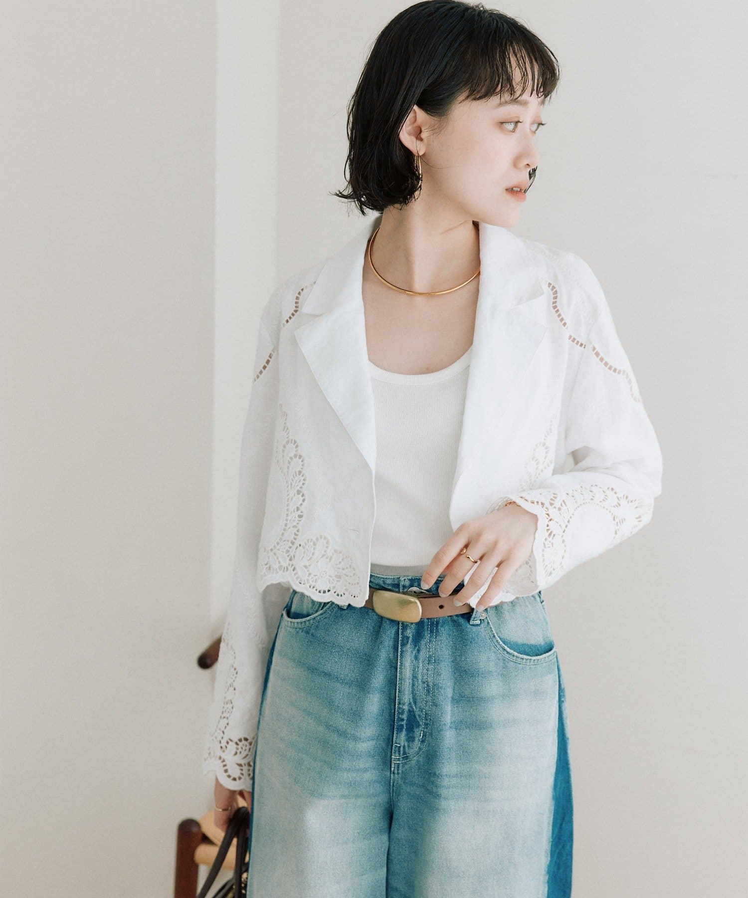 華やかなカットワークが映えるショートジャケット