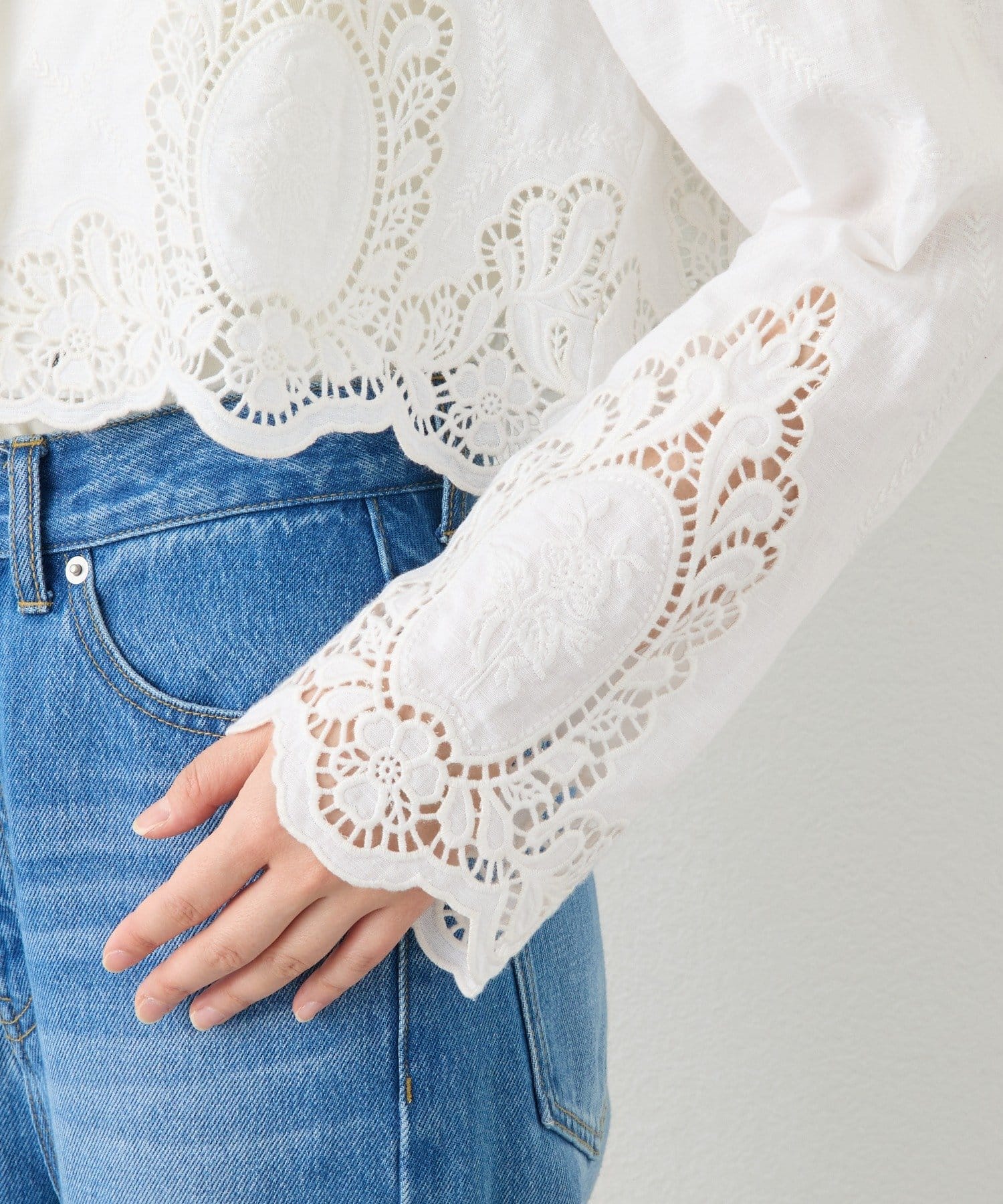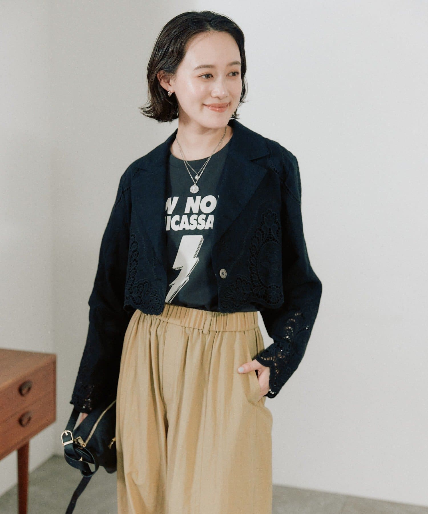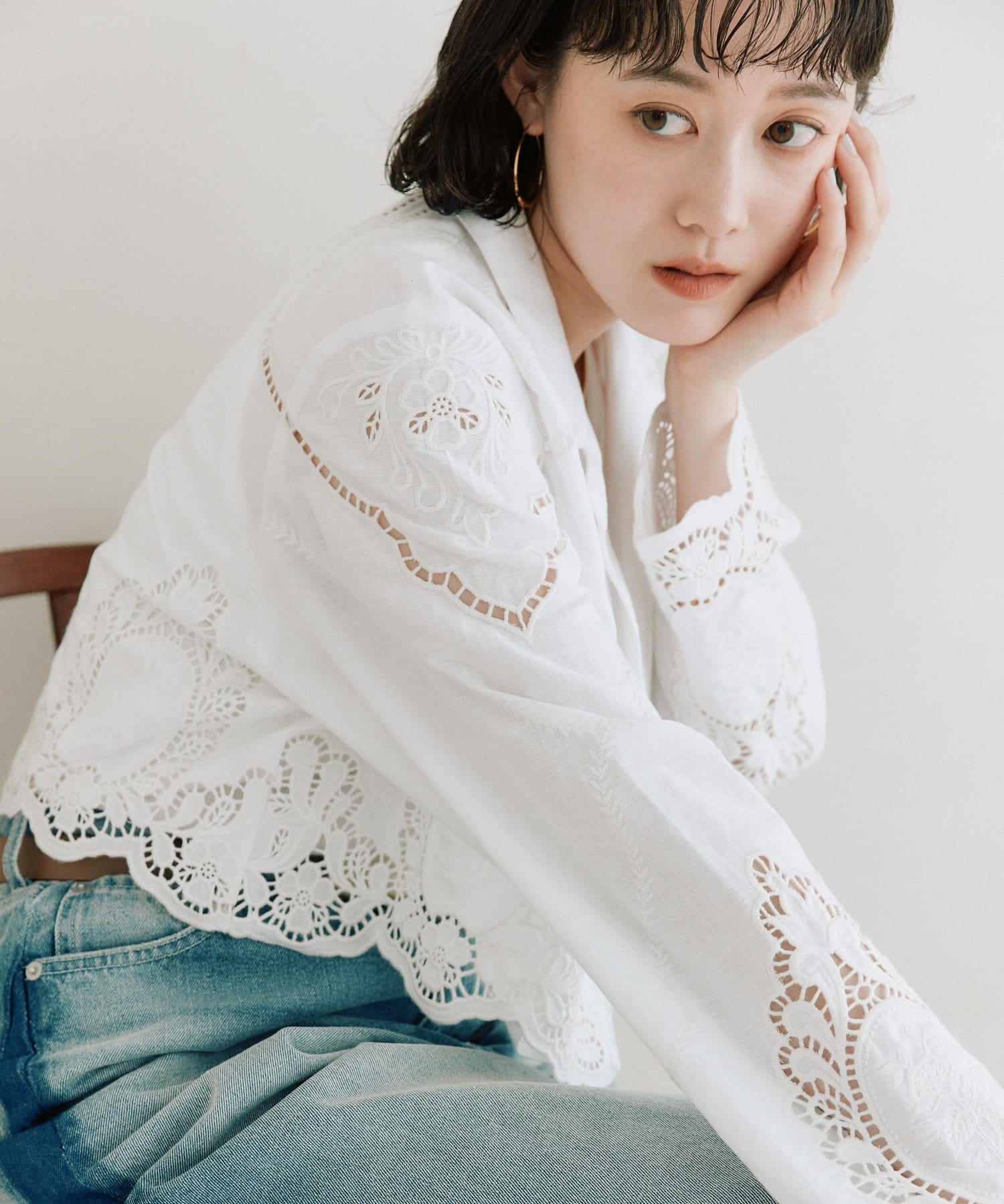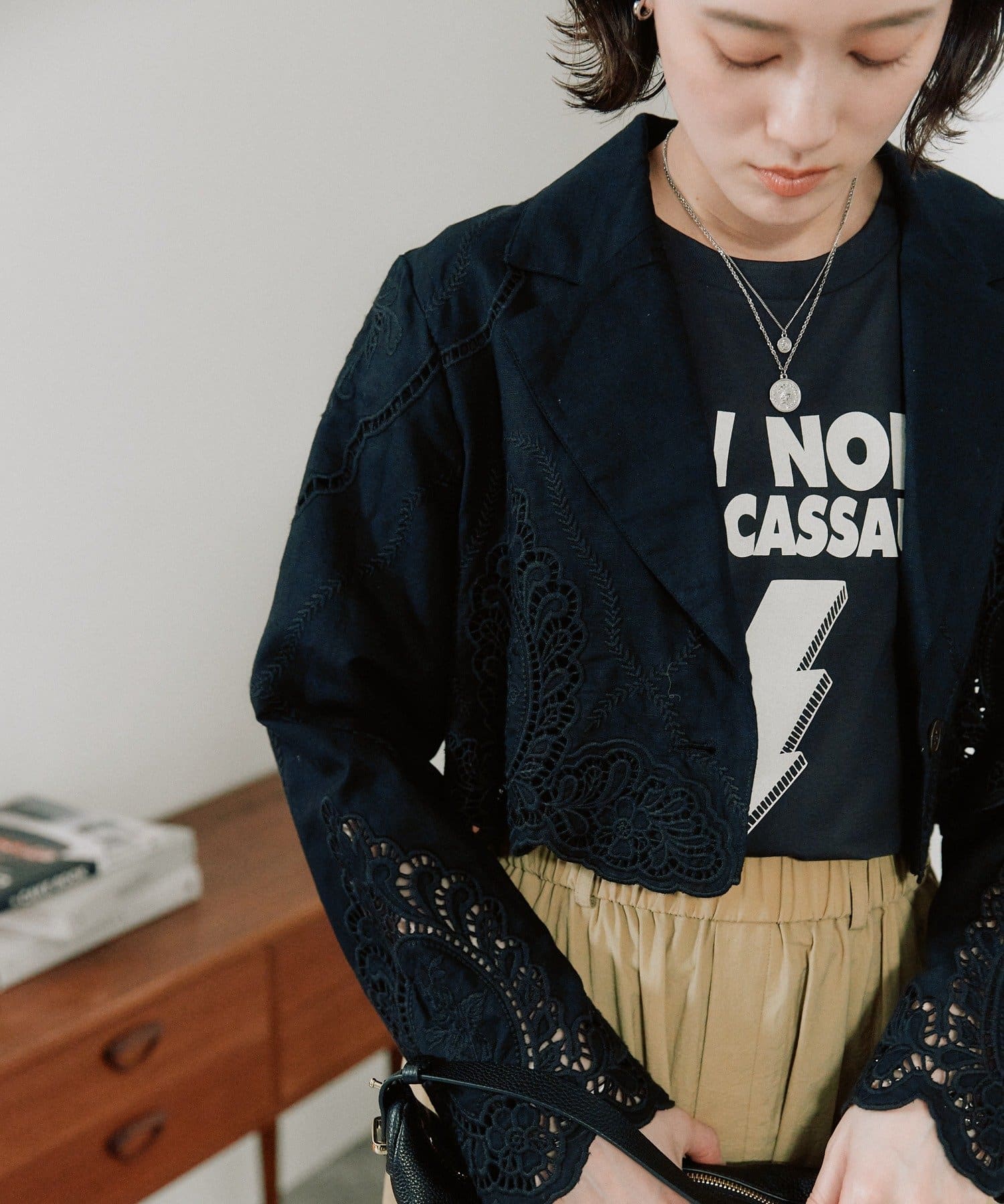 華やかなカットワークが映えるショートジャケット