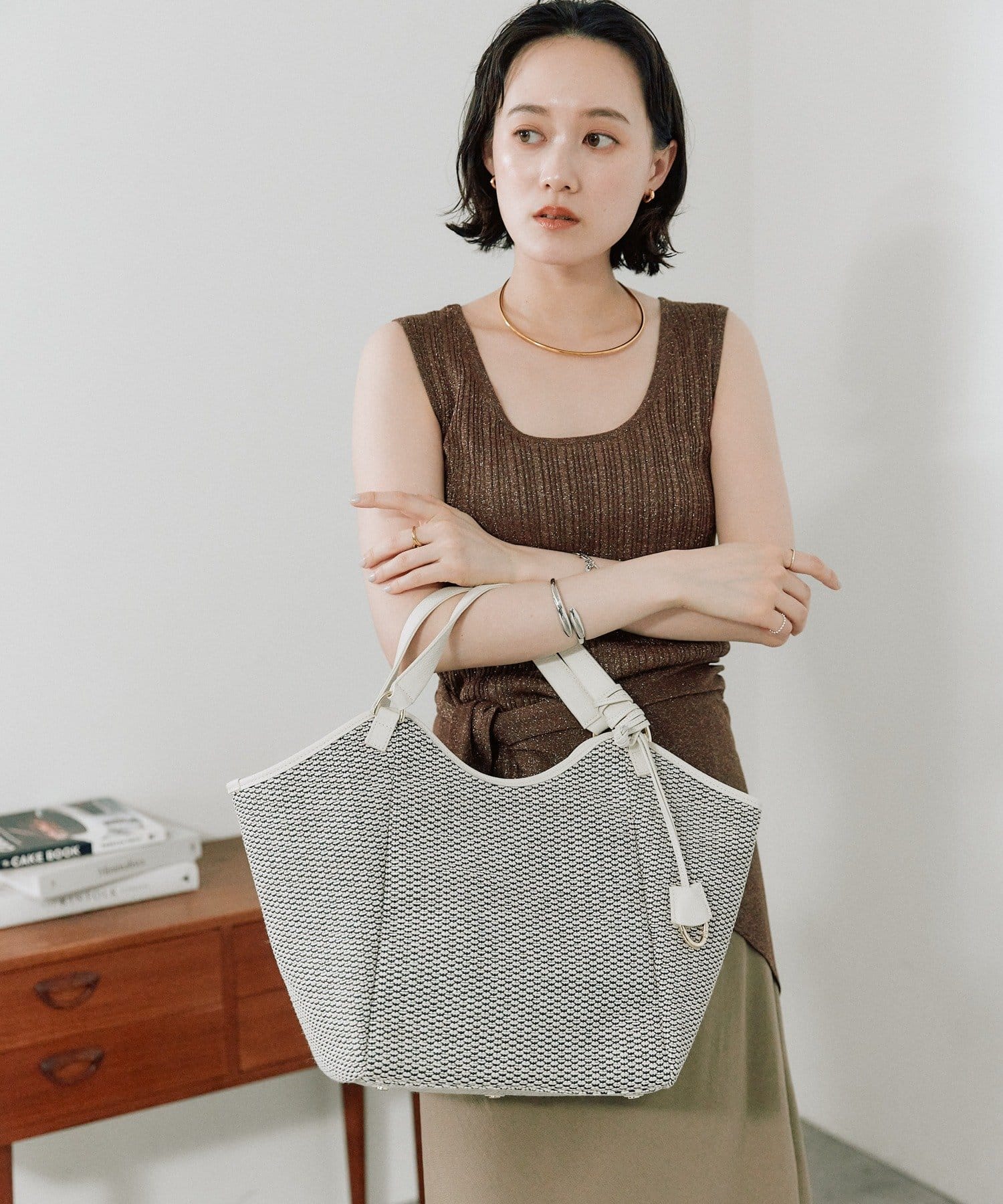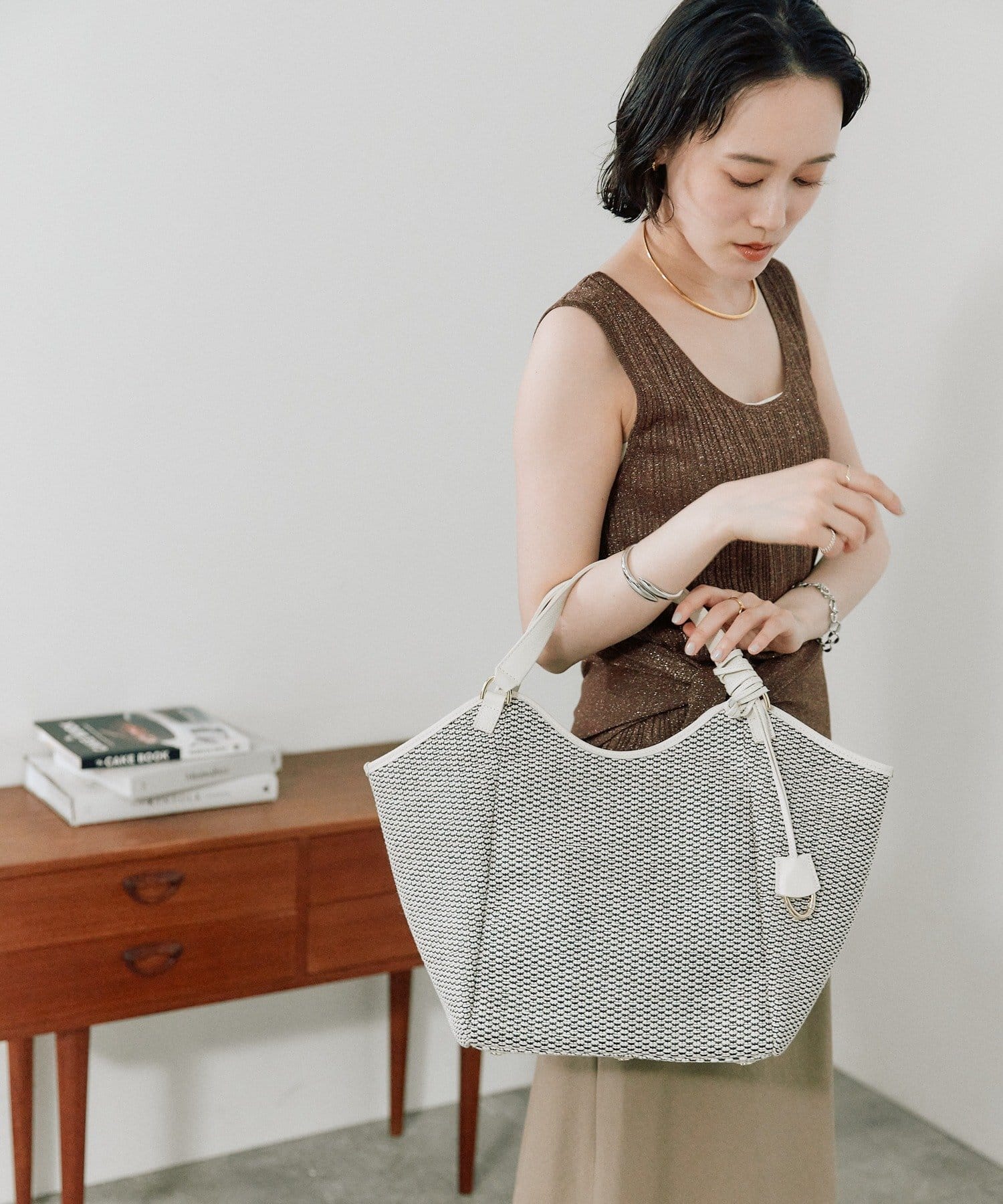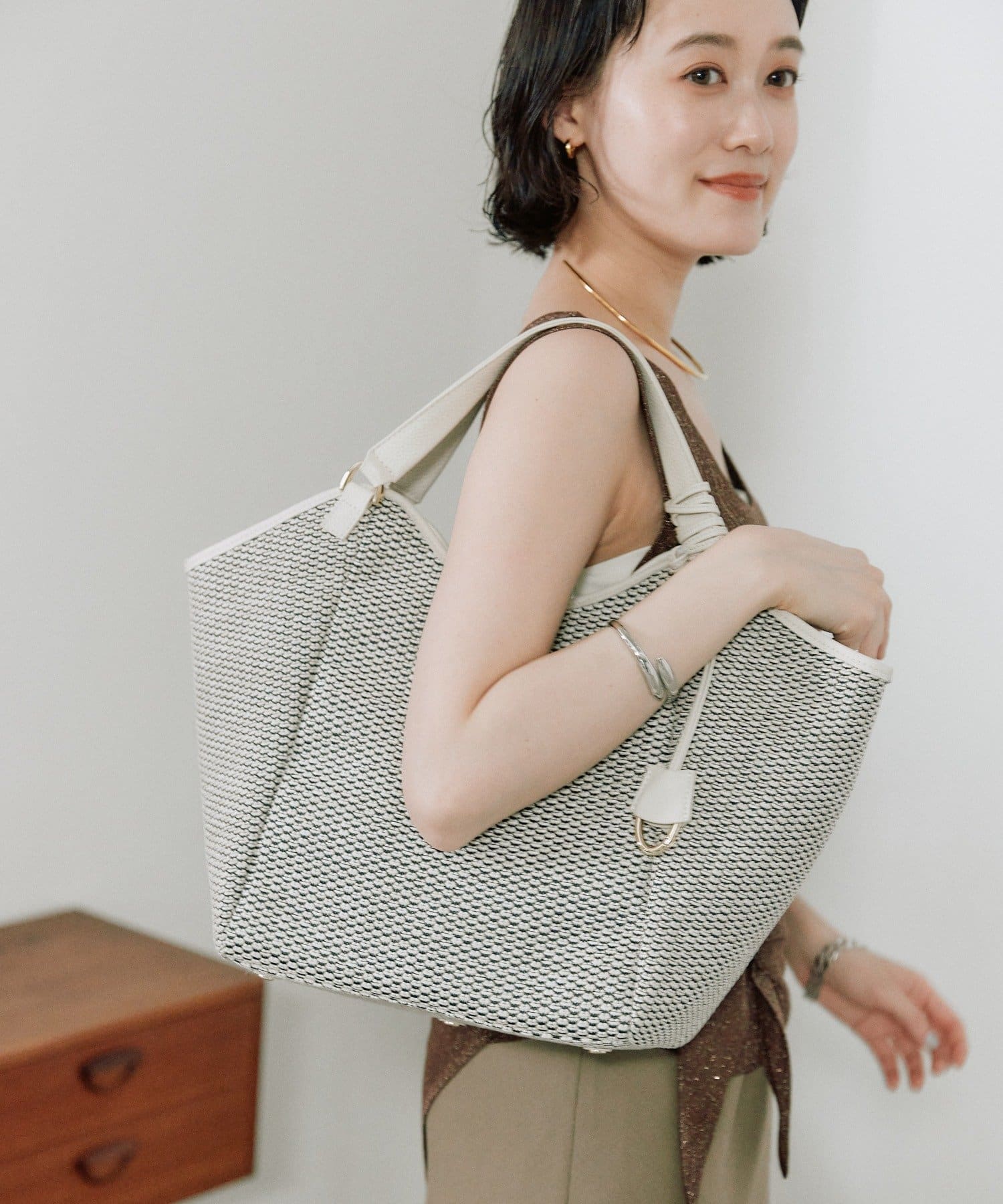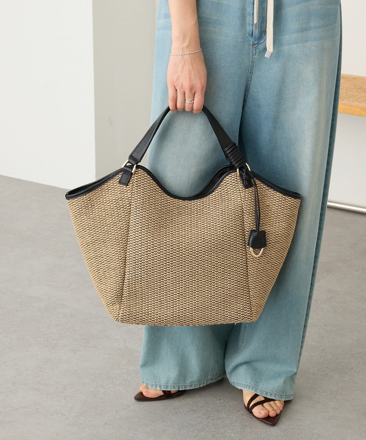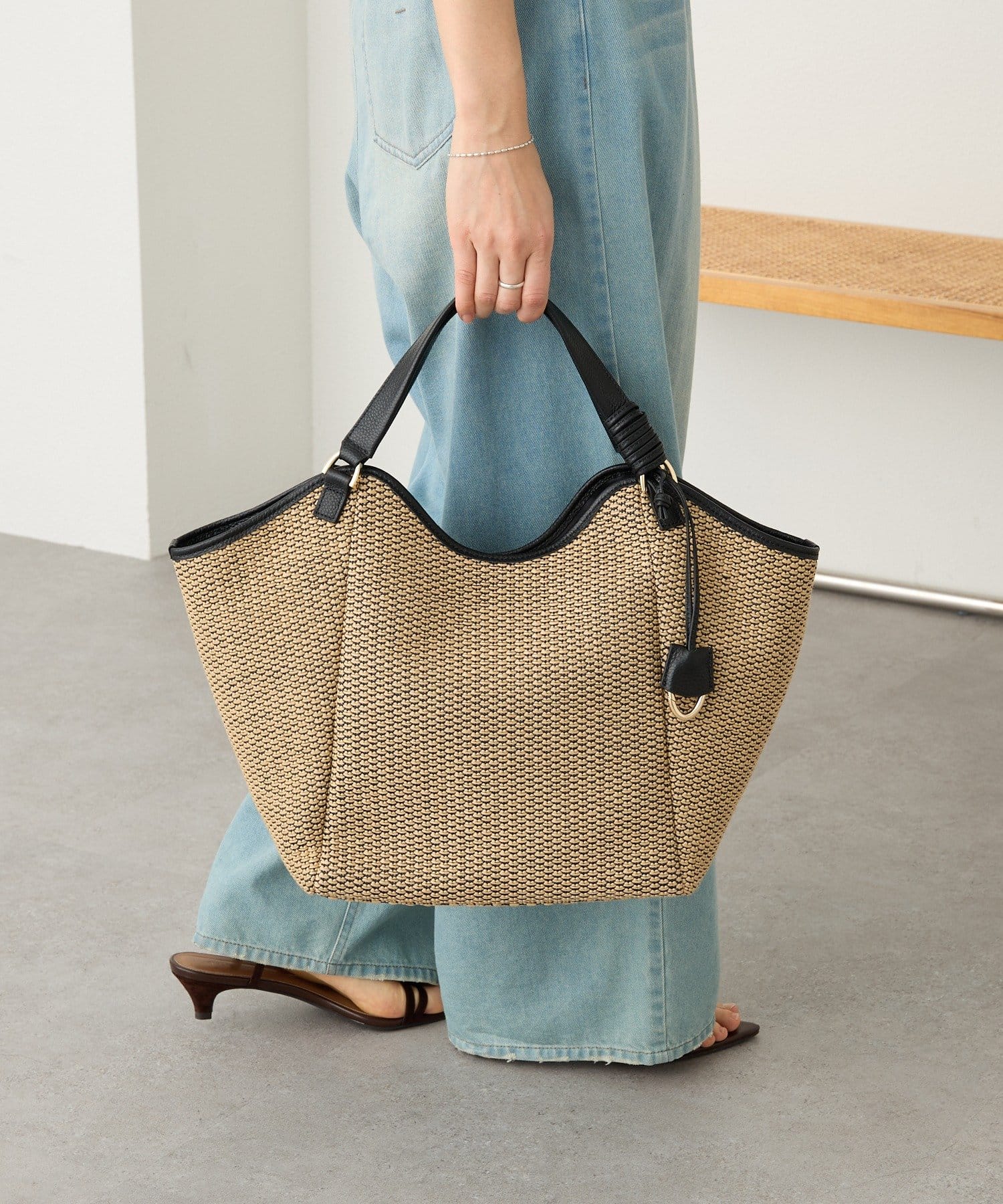 ・ラフィア風のシートを使用した軽やかな見た目のトートバッグ。