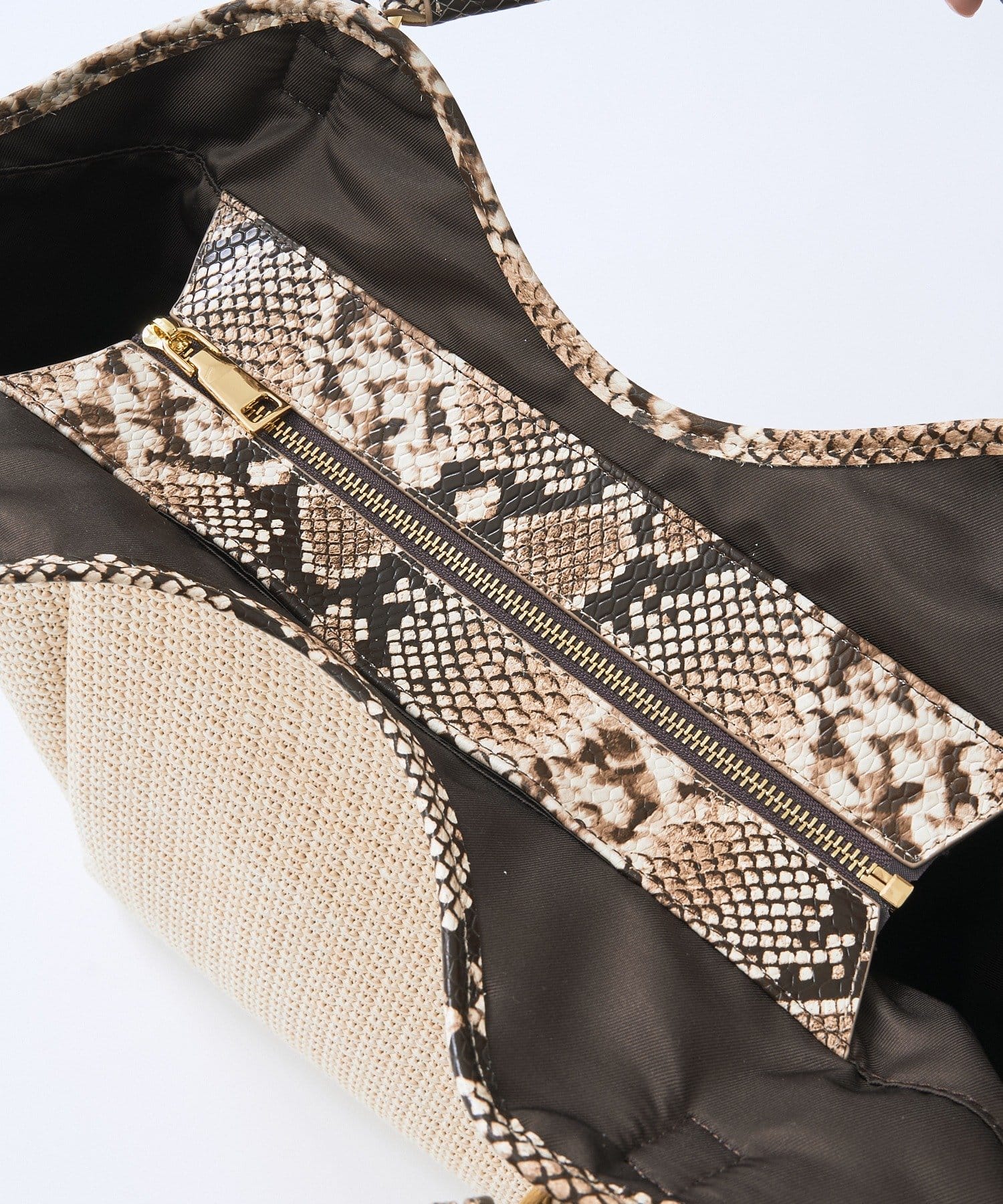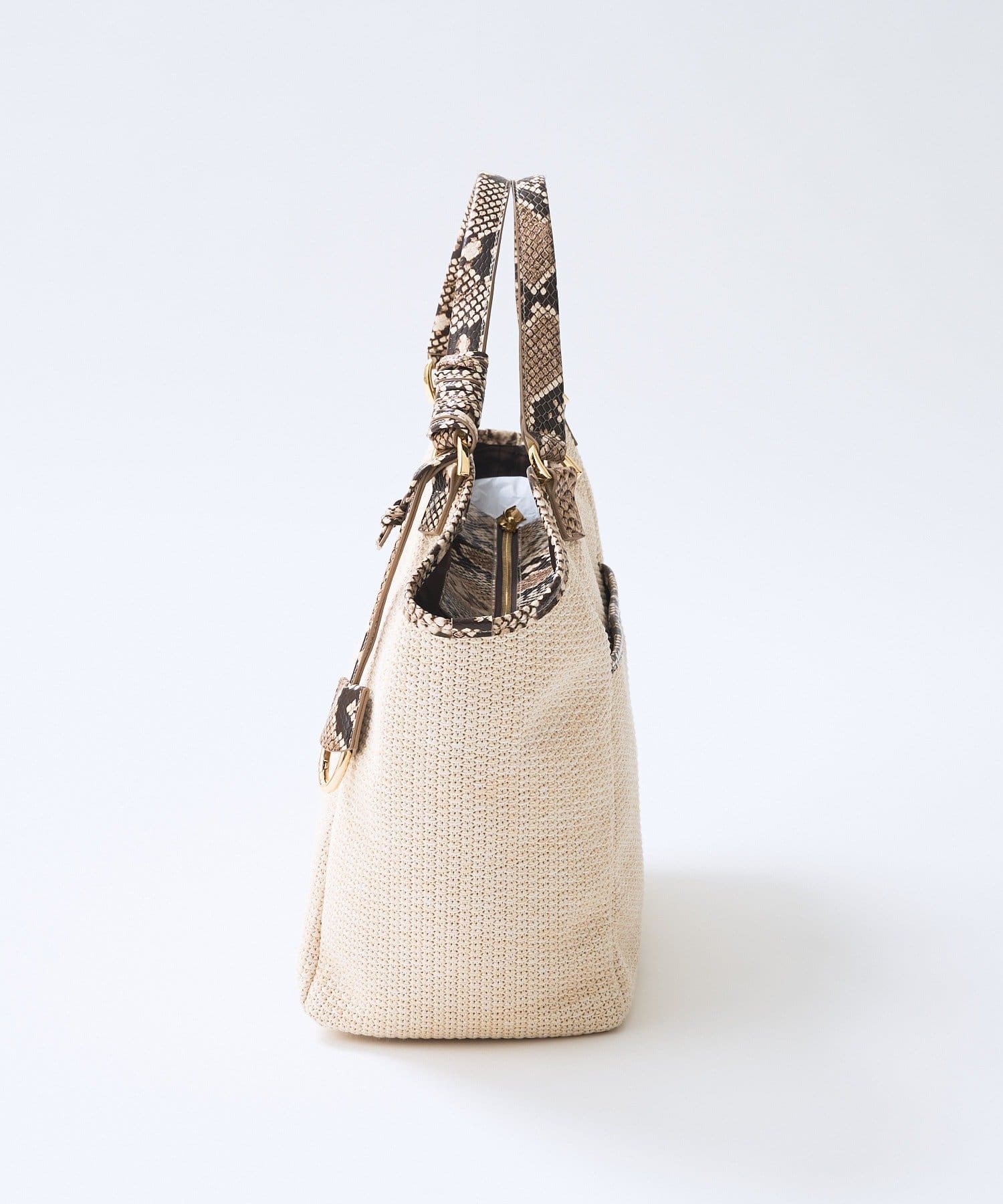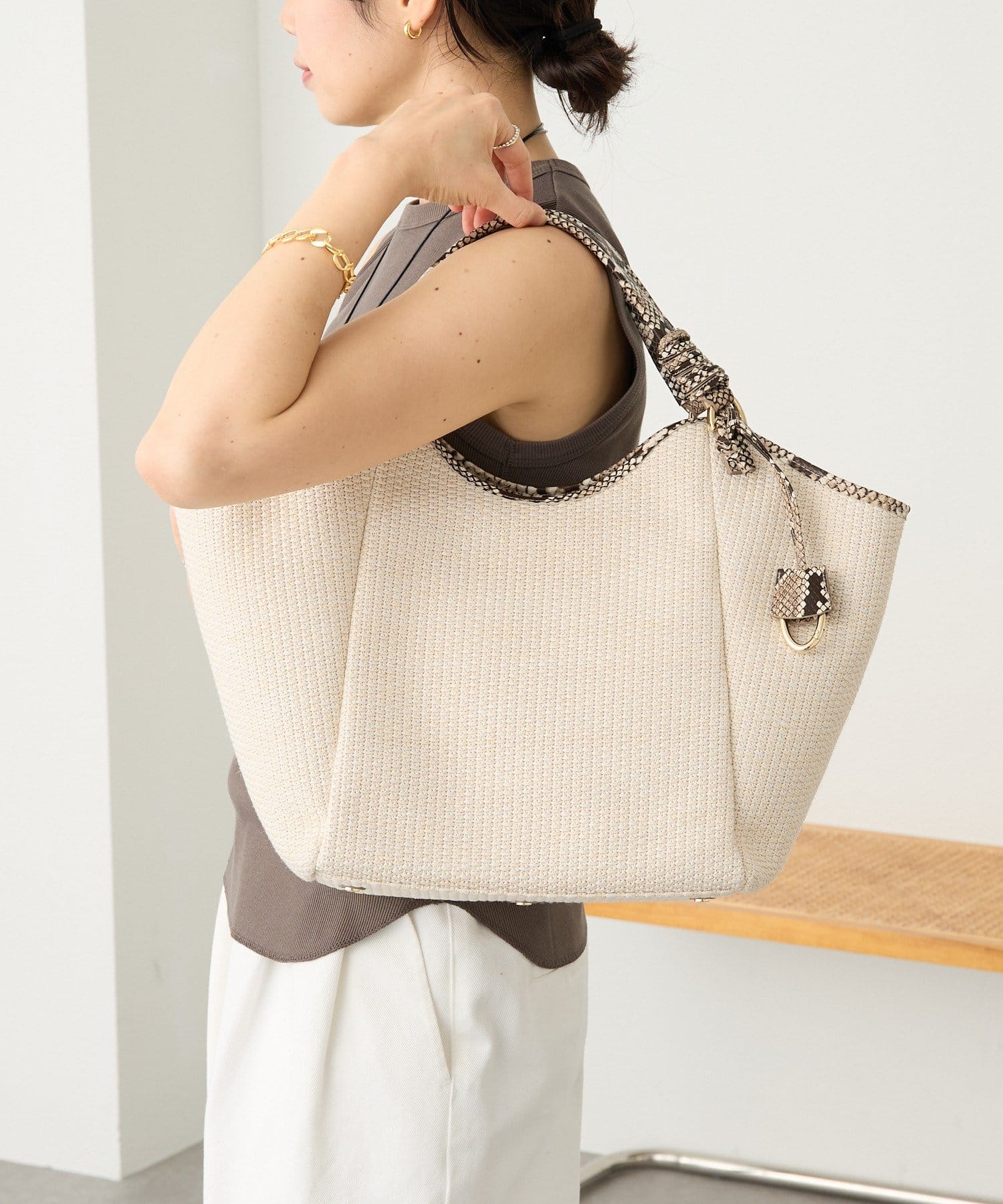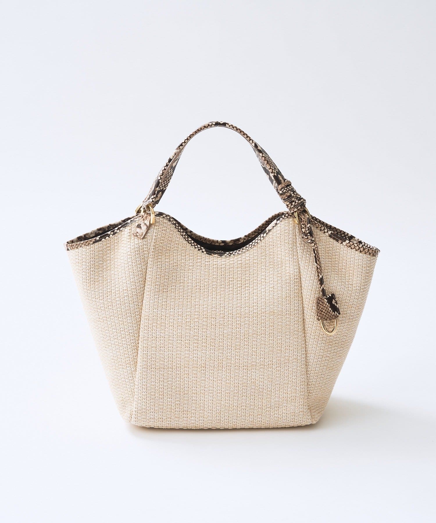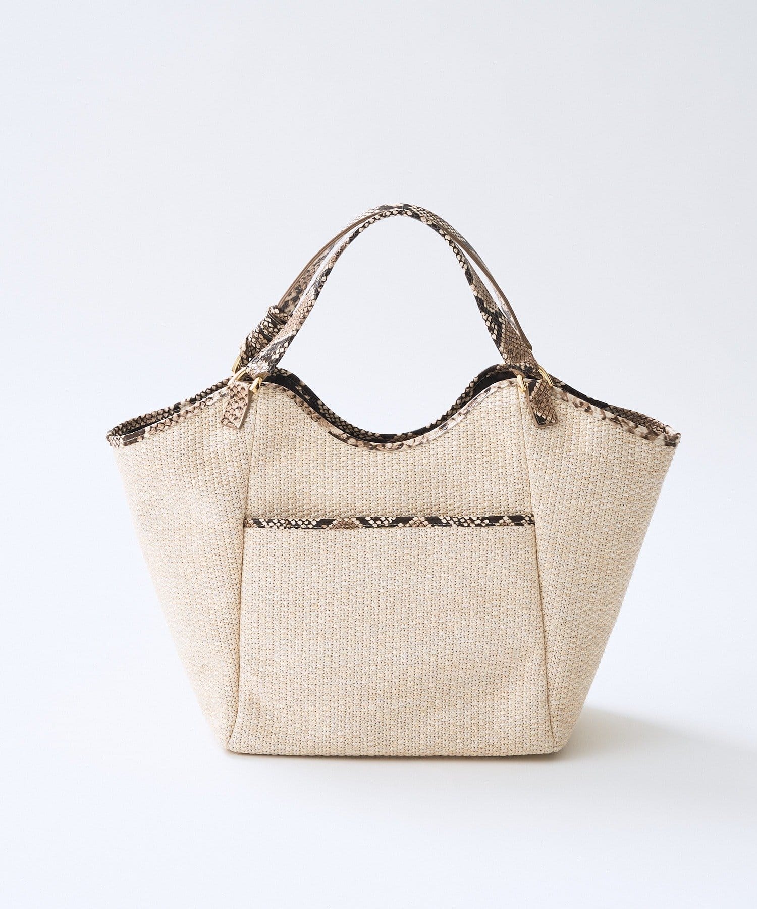 ・ラフィア風のシートを使用した軽やかな見た目のトートバッグ。