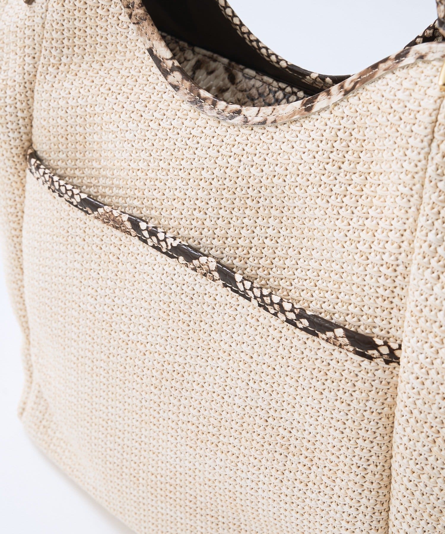 • ラフィア風のシートを使用した軽やかな見た目のトートバッグ