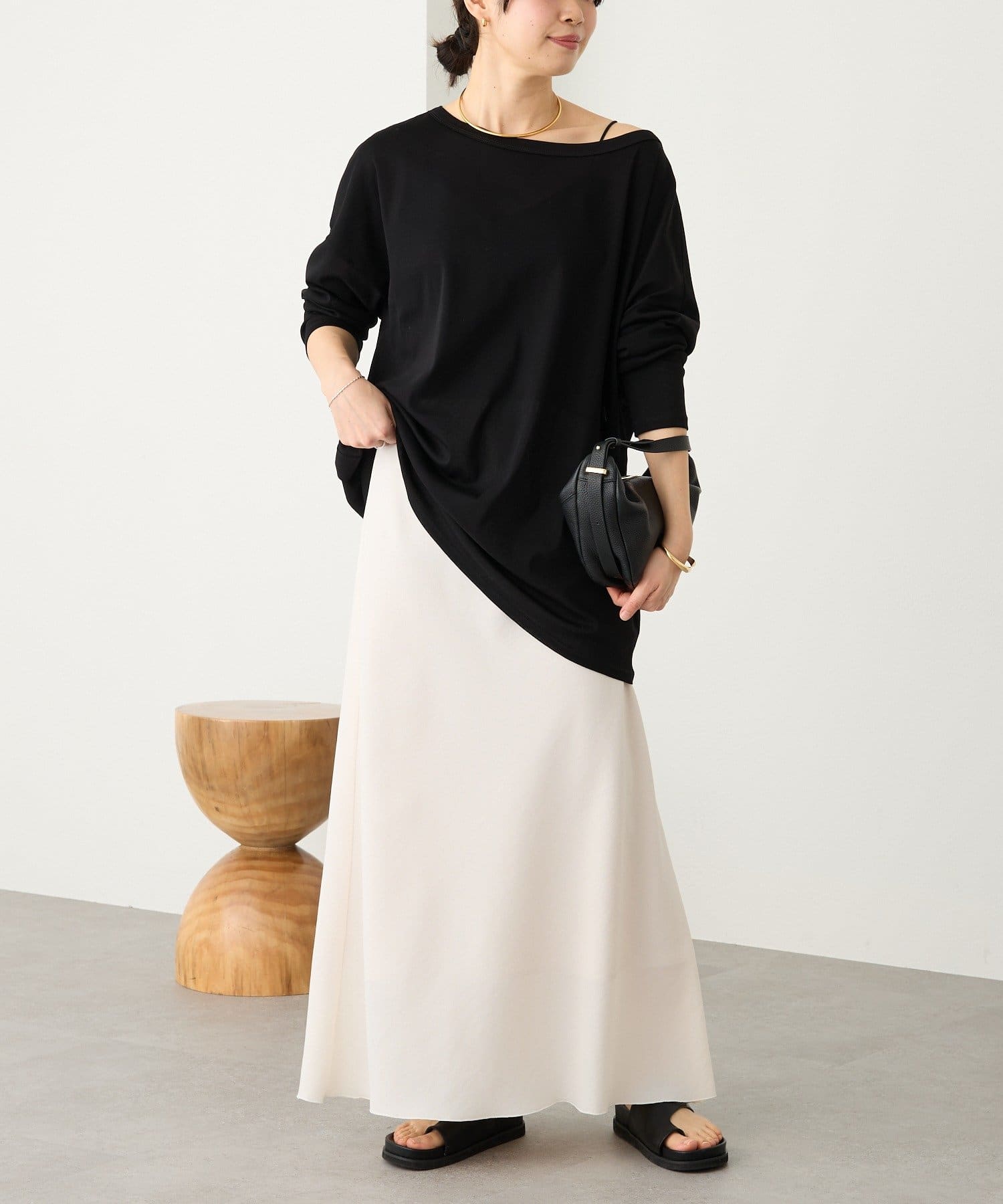 ・裏地丈を少し短くし、裾がほどよく透けることで抜け感のあるデザインに。