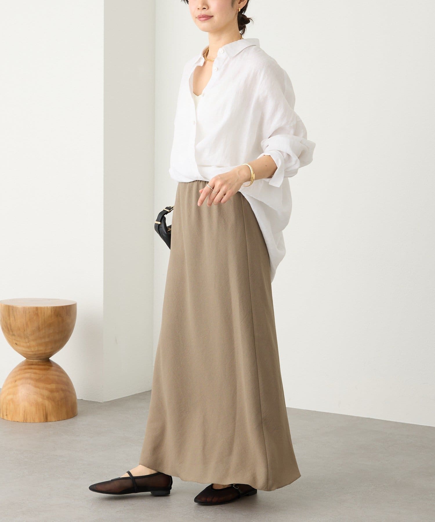 ・清涼感を感じるメッシュ素材のバイアススカート。
