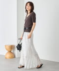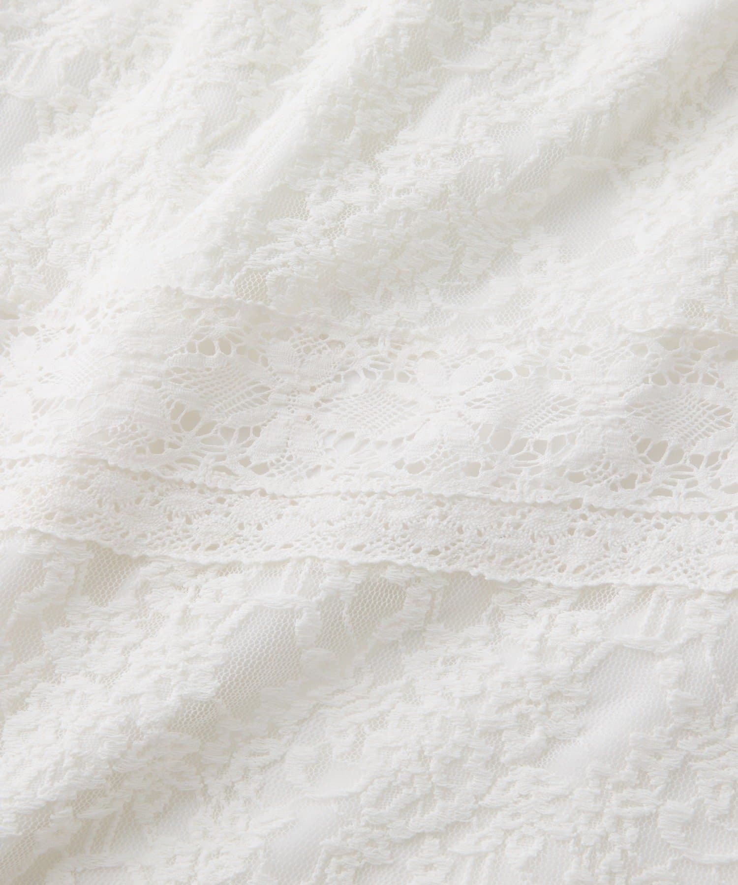 ・立体感のある総柄レースとトーションレースを切り替えにしたティアードスカート。