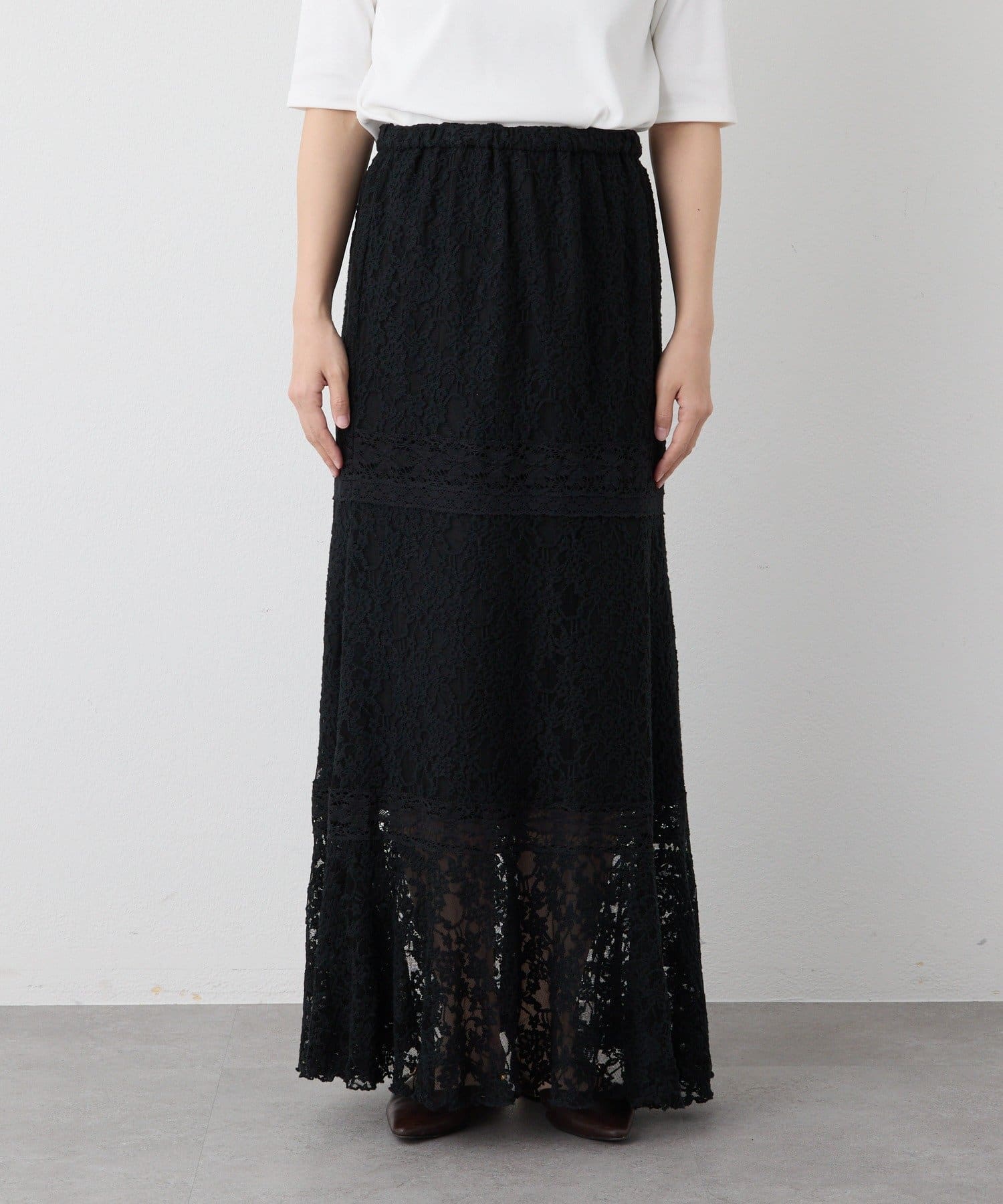 予約【甘さを抑えた贅沢なレース】ティアードレーススカート