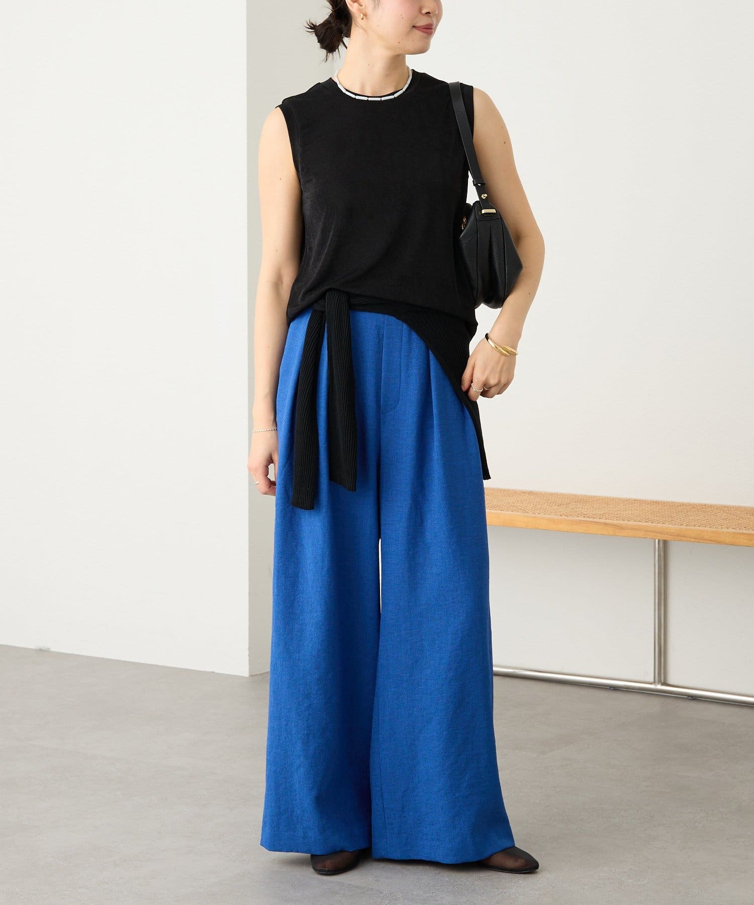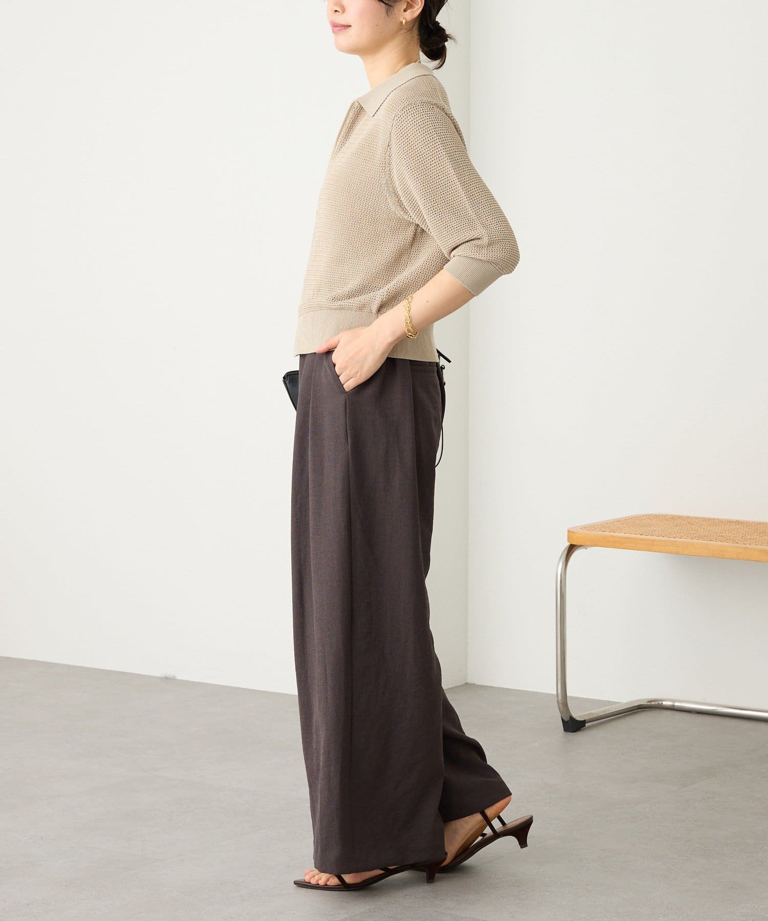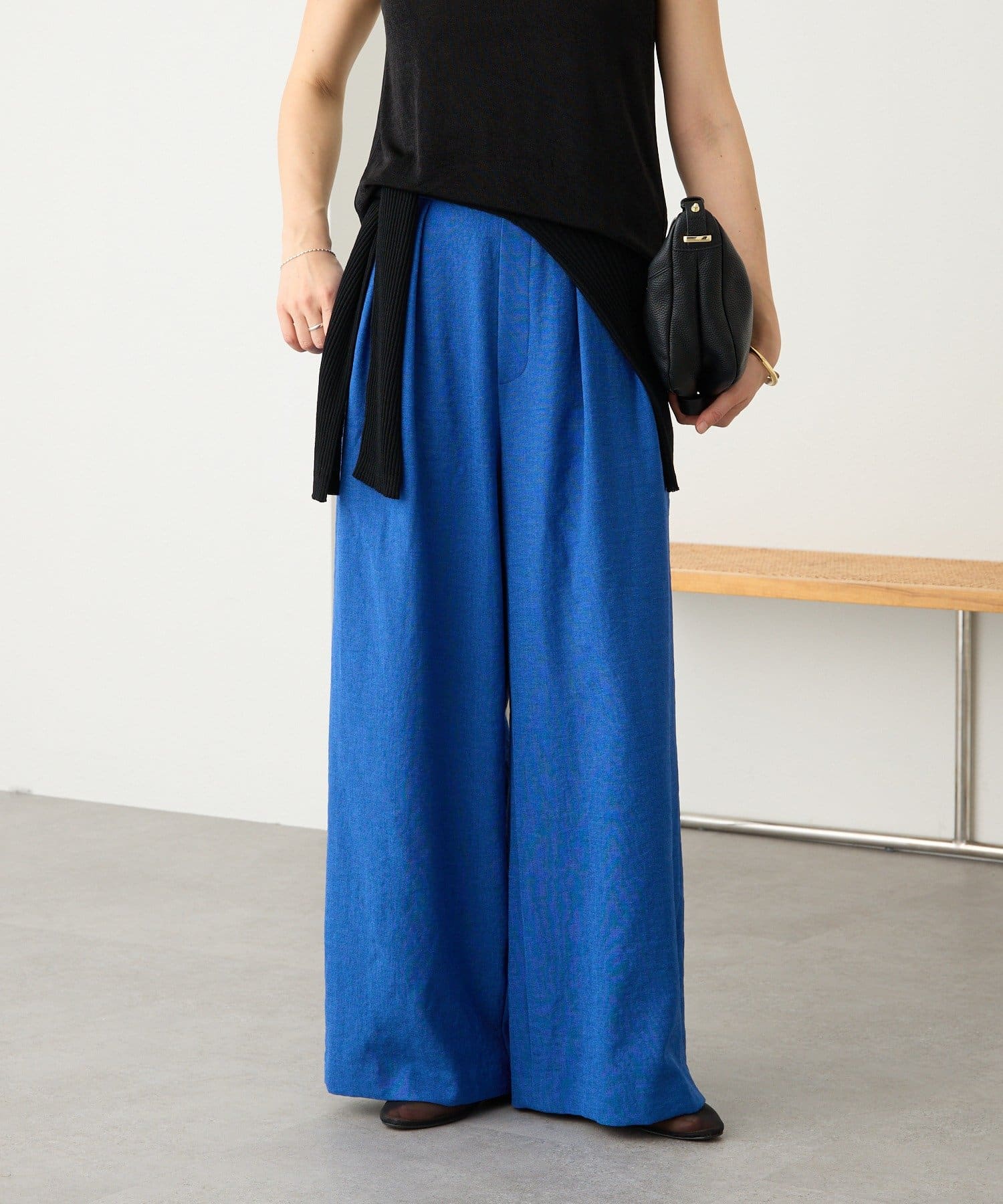 TOP > RIVE DROITE > レディース > パンツ > スラックス > 予約【防シワ性/紫外線防止】リネンライクタックワイドスラックス