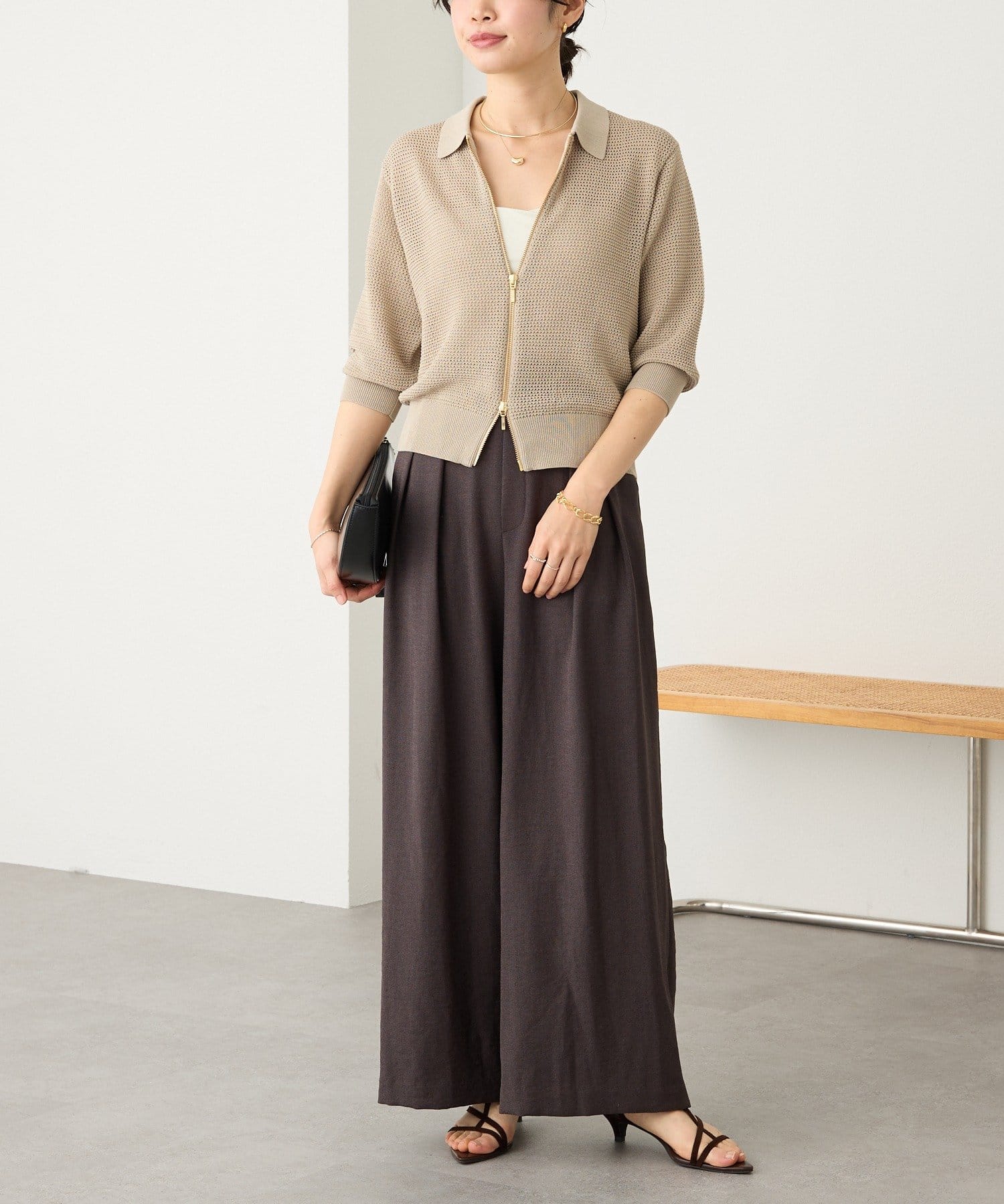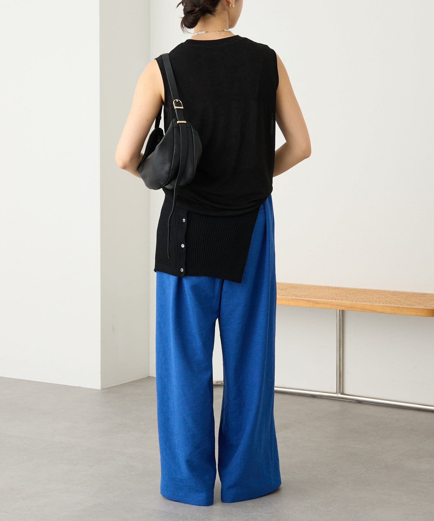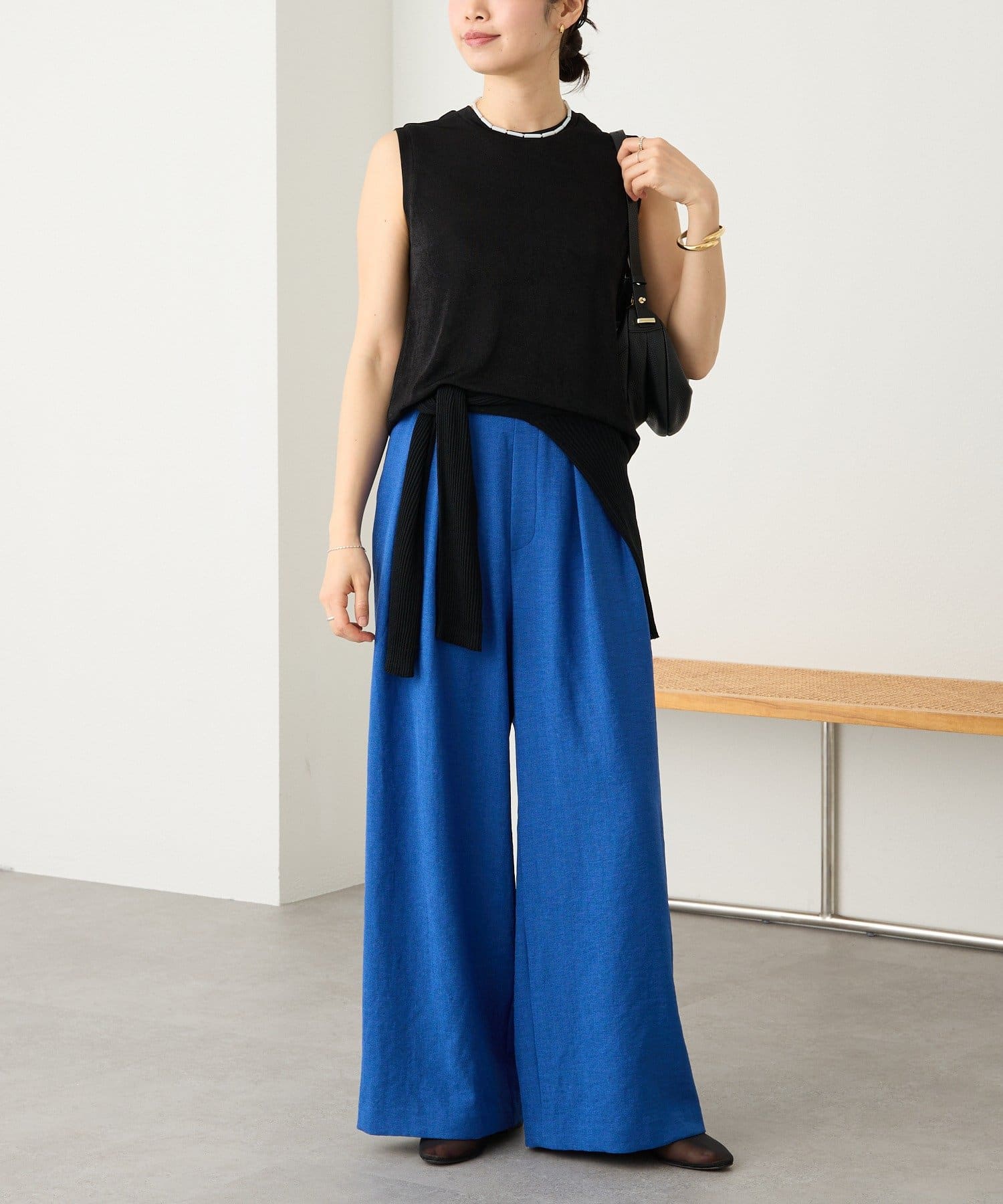 TOP > RIVE DROITE > レディース > パンツ > スラックス > 予約【防シワ性/紫外線防止】リネンライクタックワイドスラックス