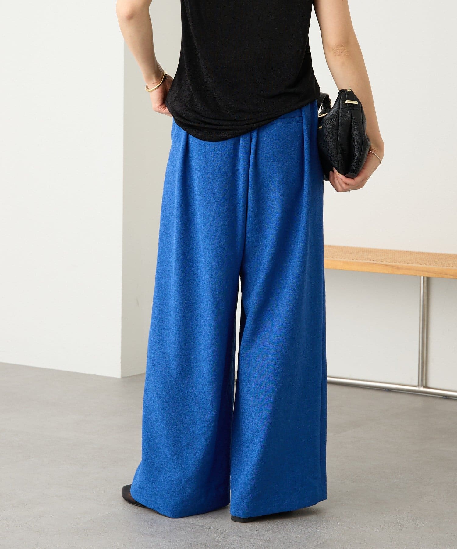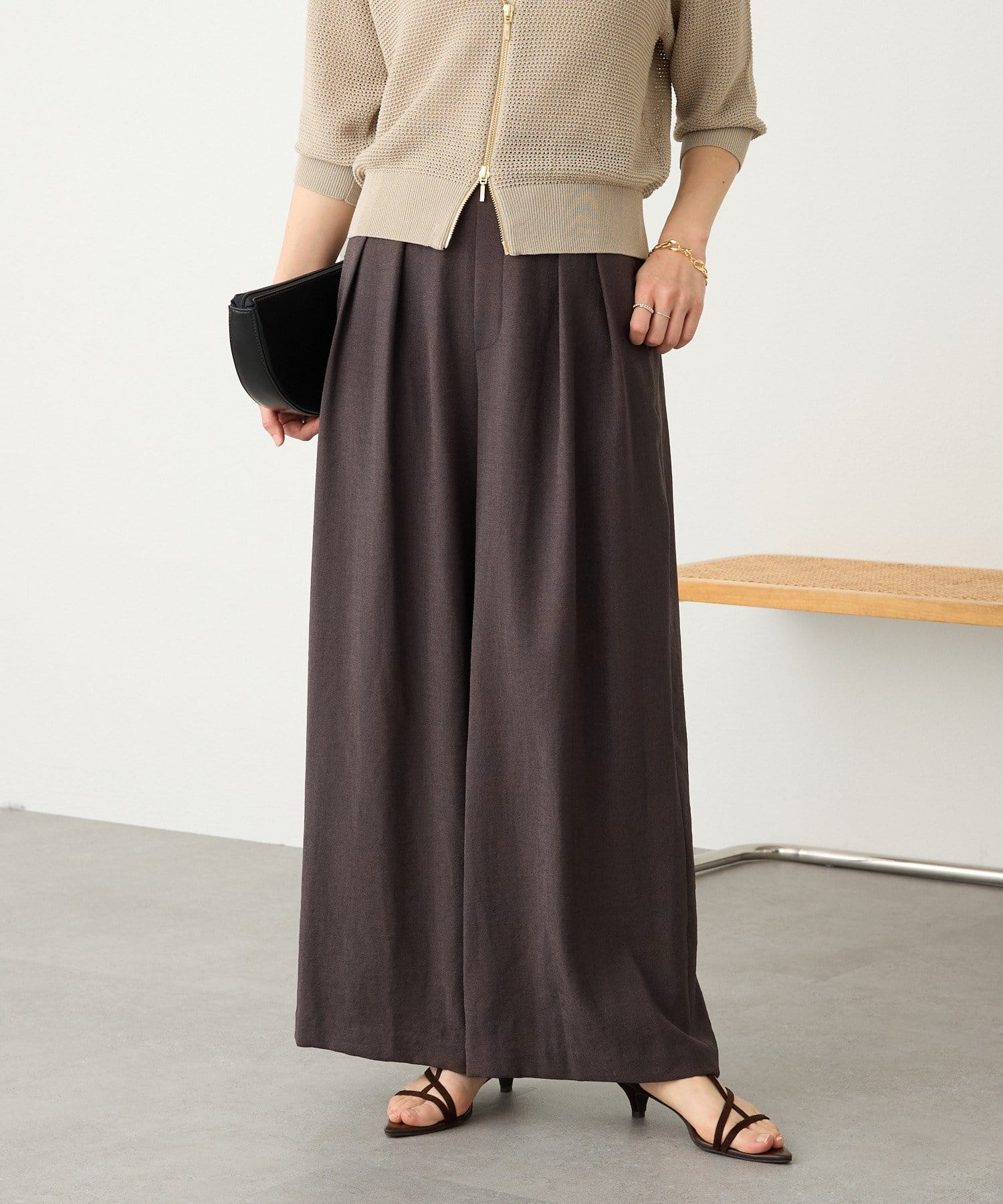 予約【防シワ性/紫外線防止】リネンライクタックワイドスラックス