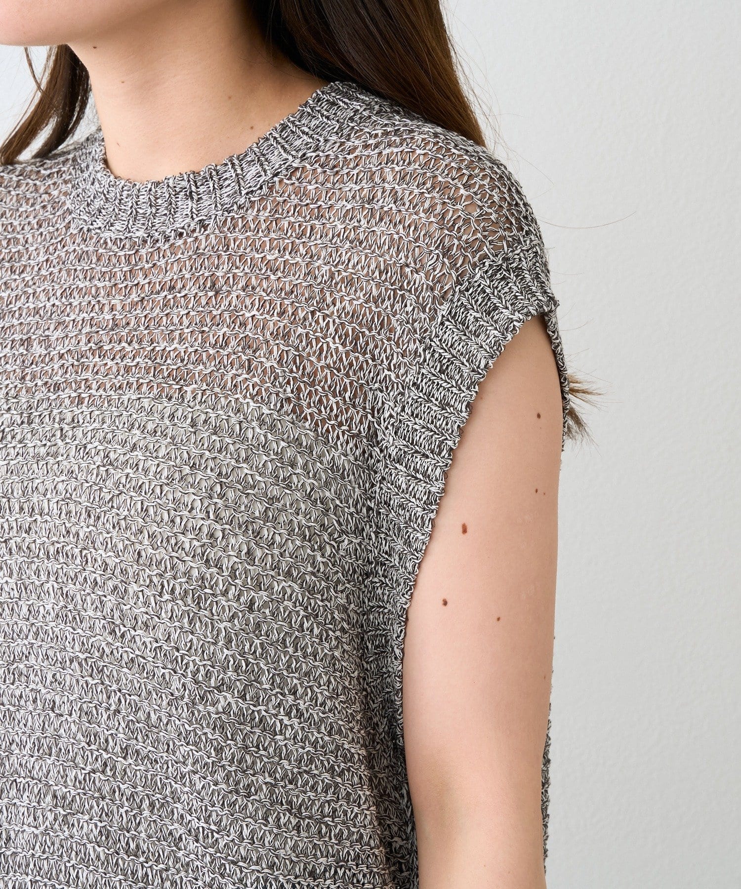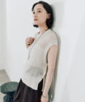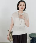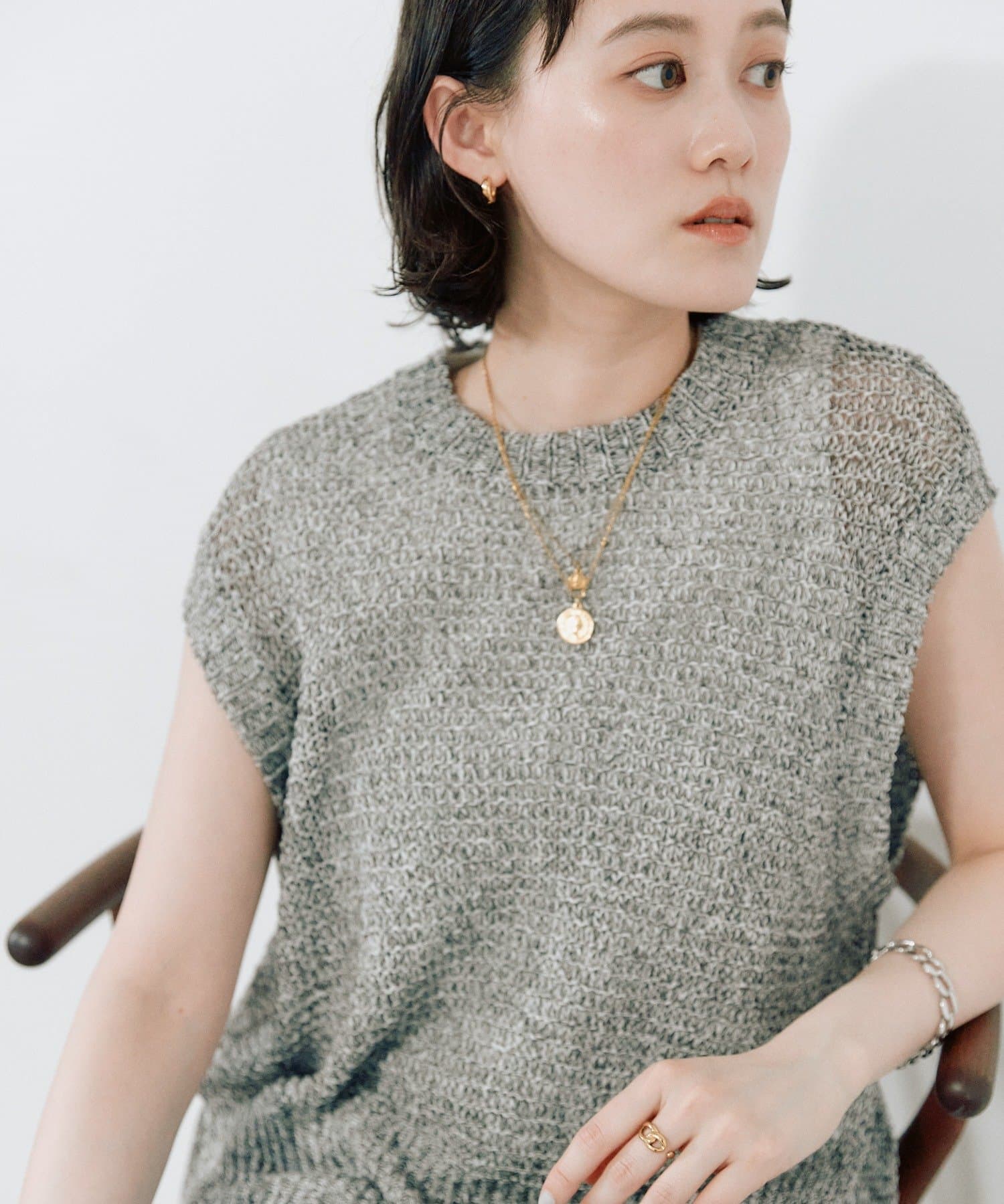 ・ハンドニット風のザックリとした編地がポイントのスリーブレスニット。
