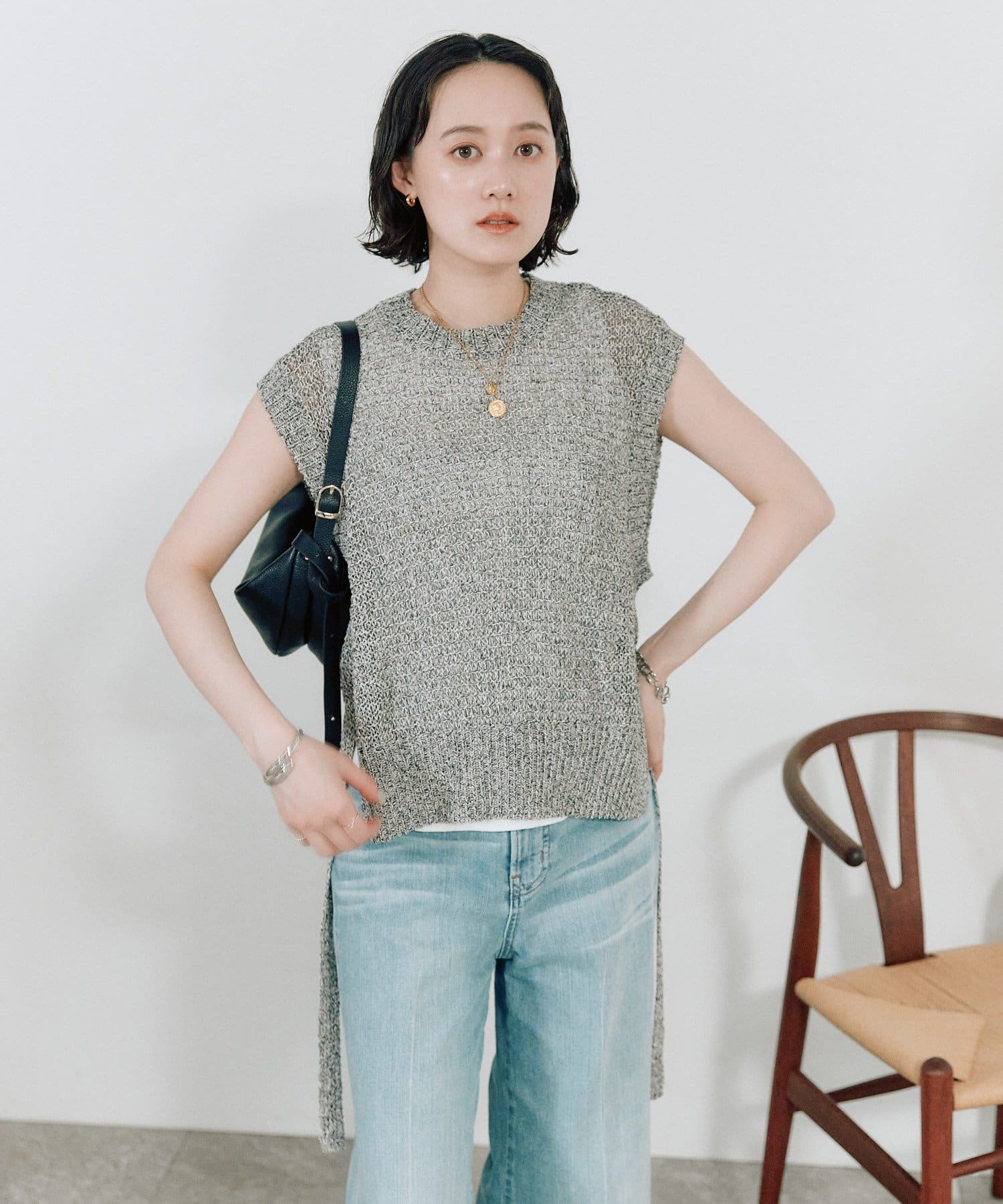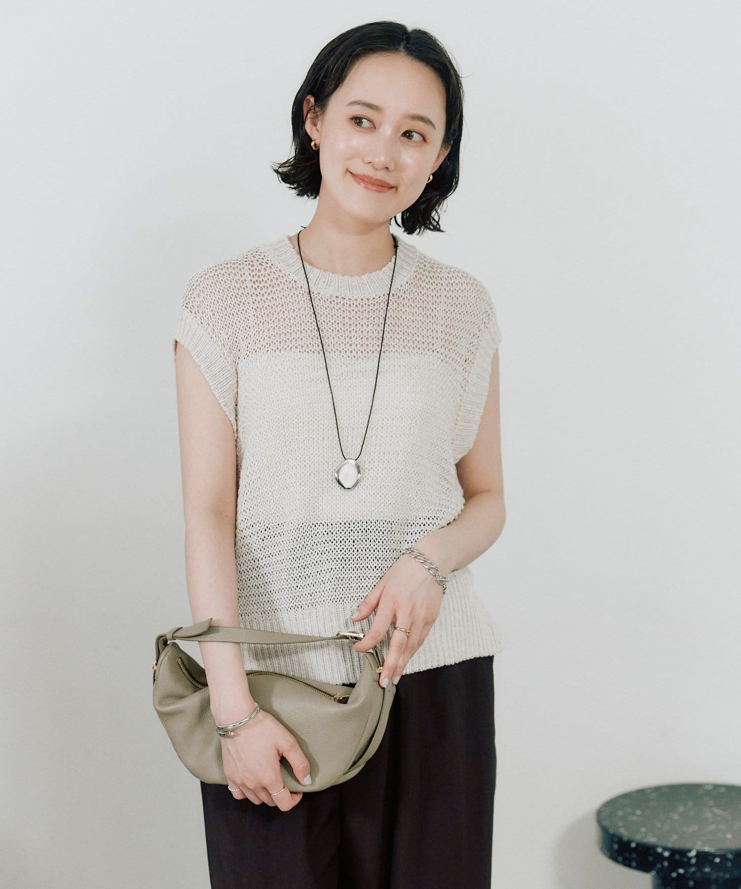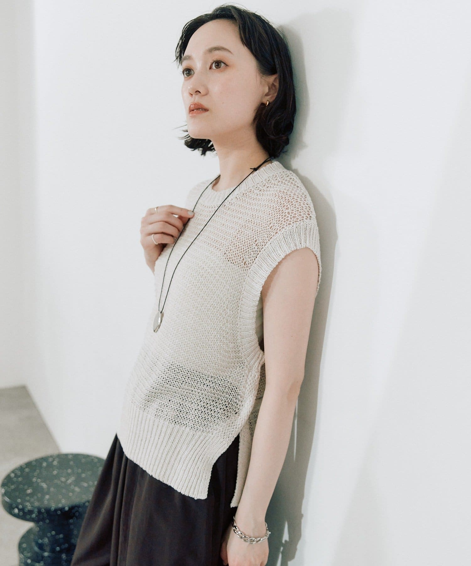 ・ドライな質感と透け感のある編地が風通し良く、涼しげな雰囲気。