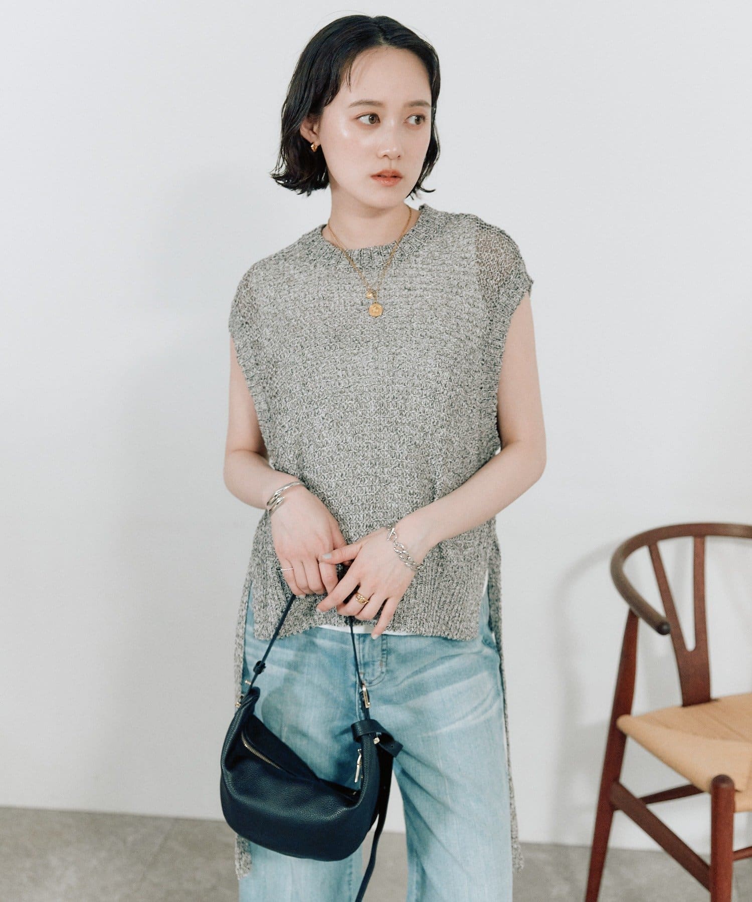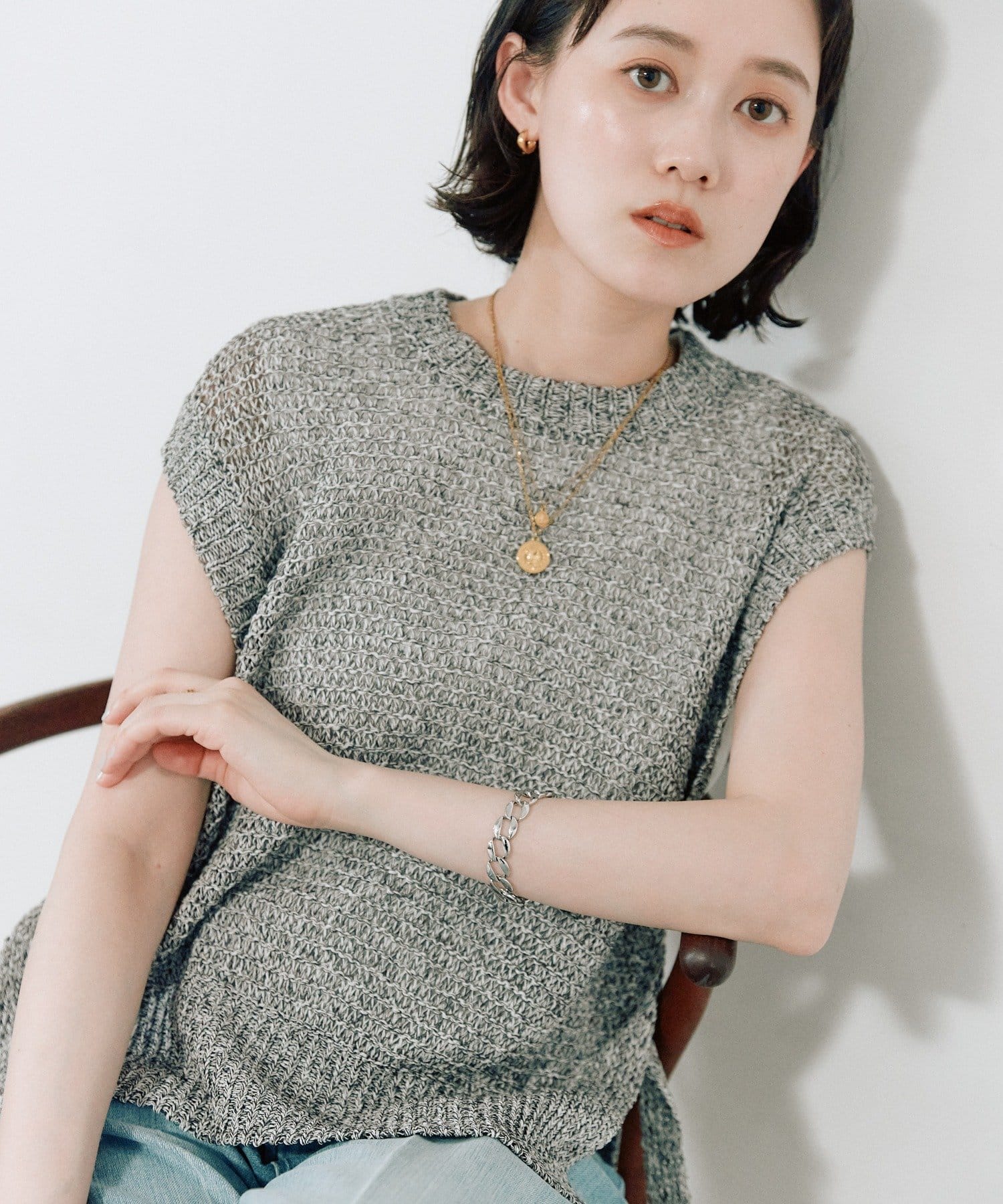 • ドライな質感と透け感のある編地が風通し良く、涼しげな雰囲気