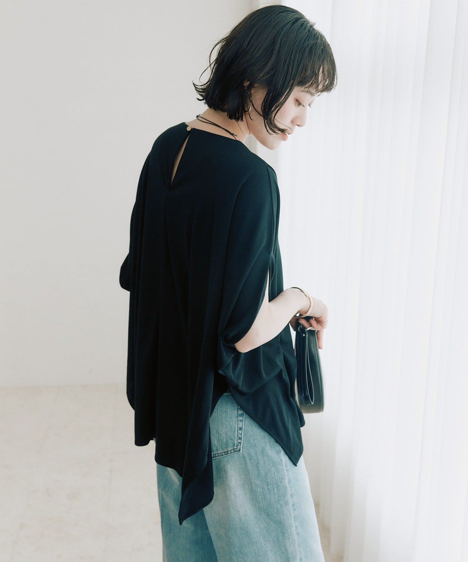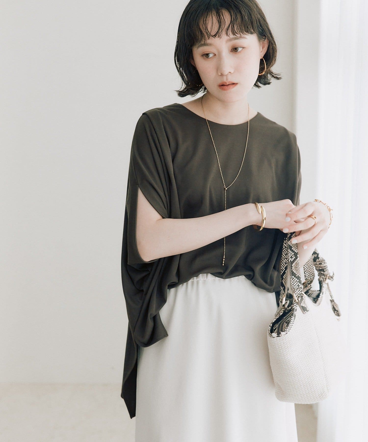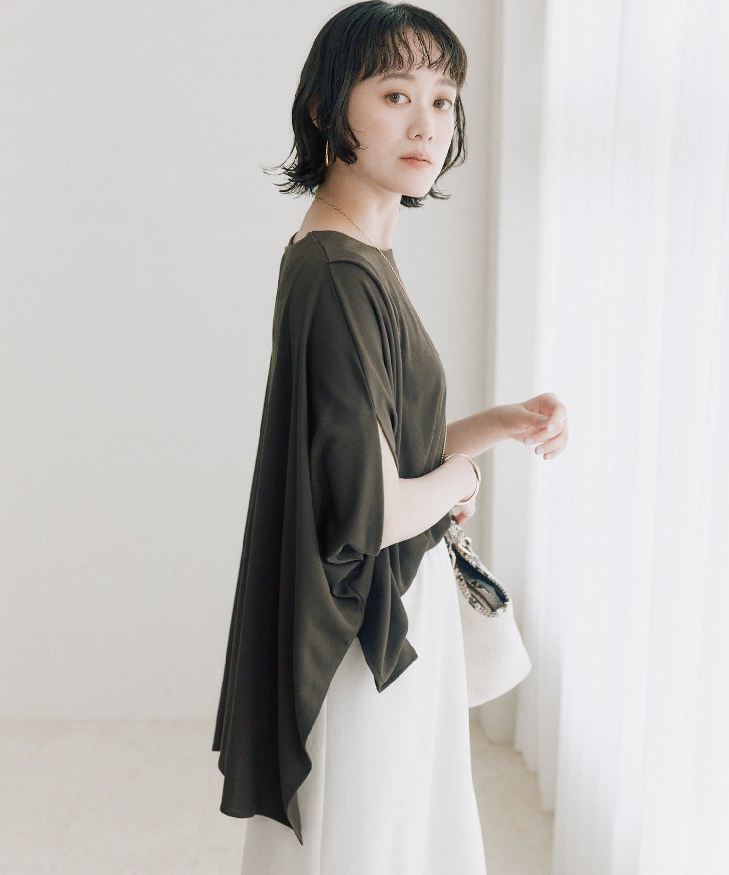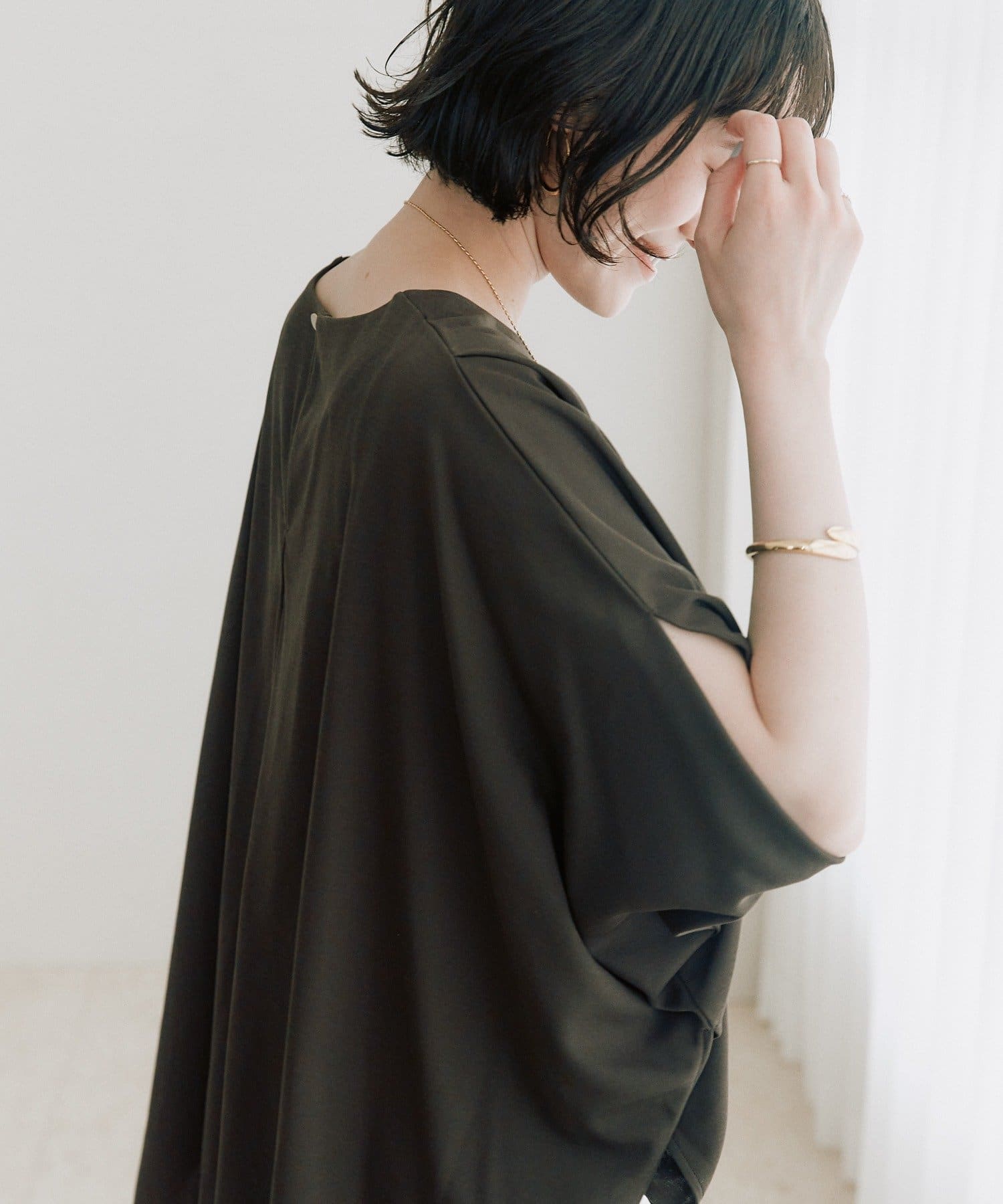 • 素材のドレープ性を生かしてお作りしたポンチョシルエットのカットソー