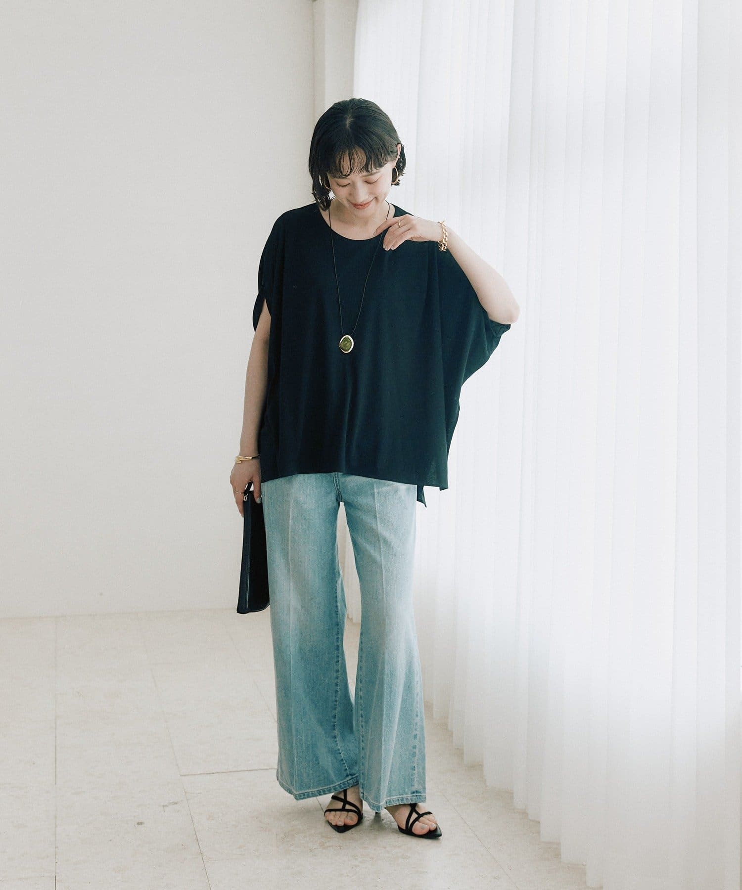 TOP > RIVE DROITE > レディース > トップス > Tシャツ/カットソー > 予約【吸水速乾/遮熱/接触冷感】クールタッチポンチョカットソー