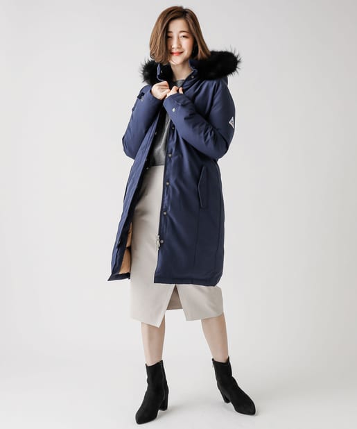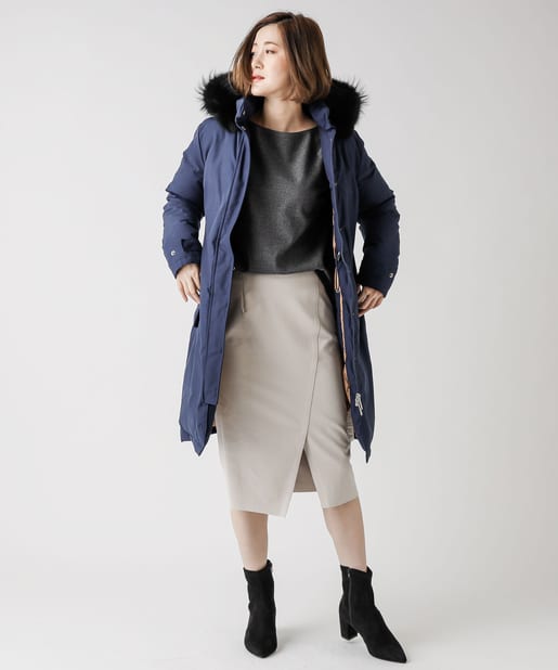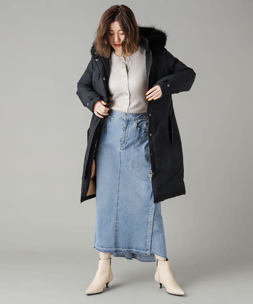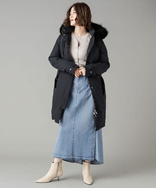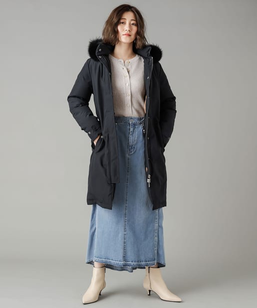 暖かく包み込んでくれるロング丈ですが、ウエストを絞ることができ、