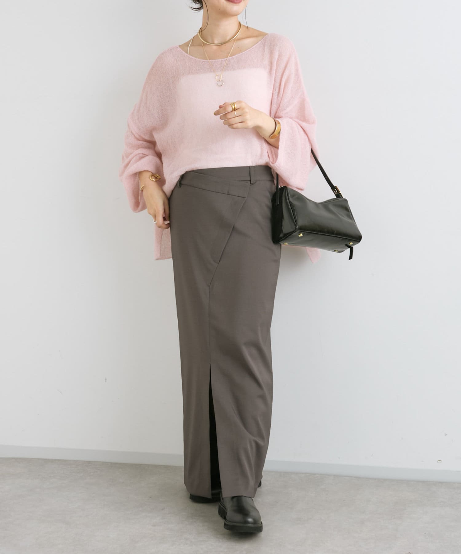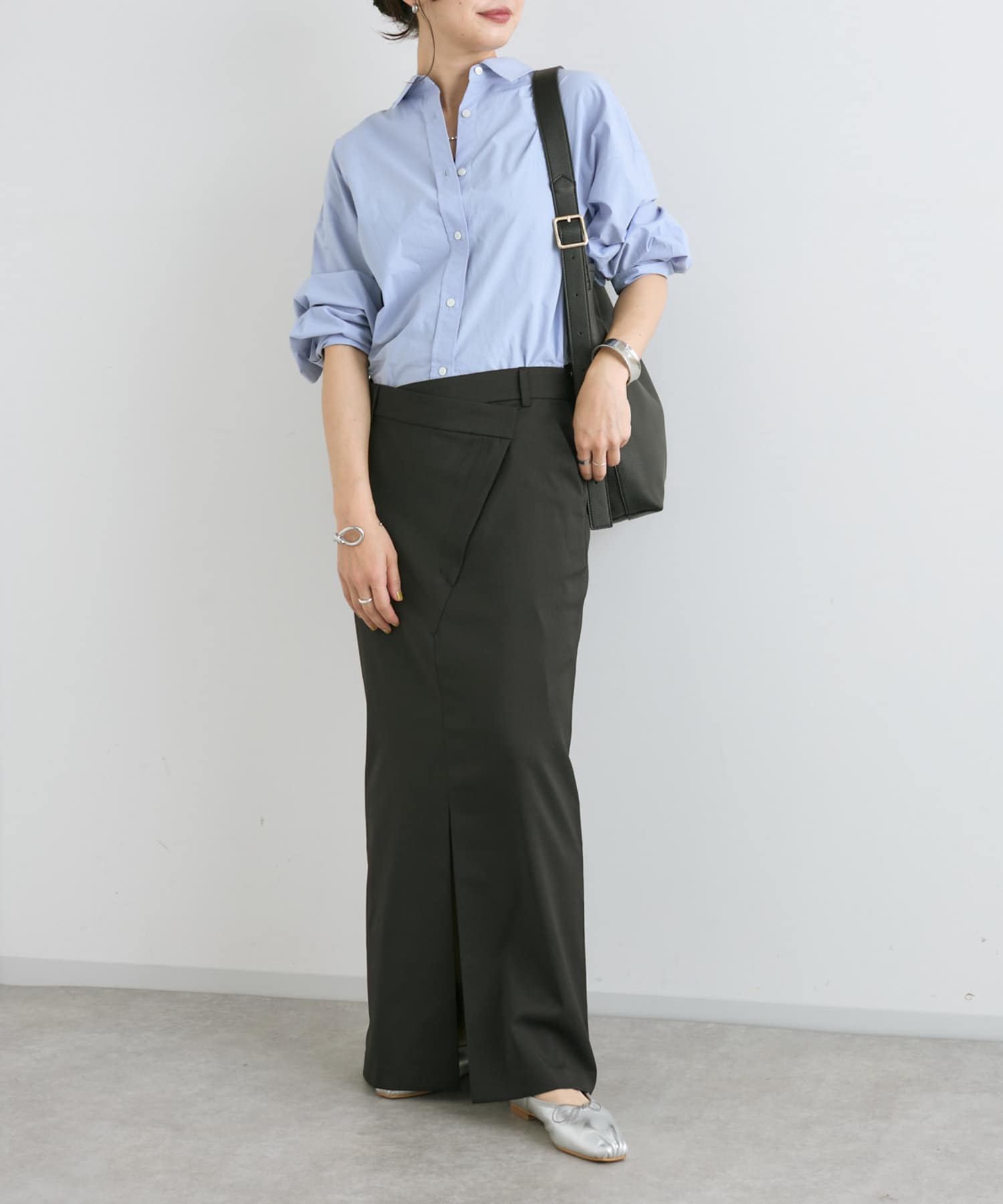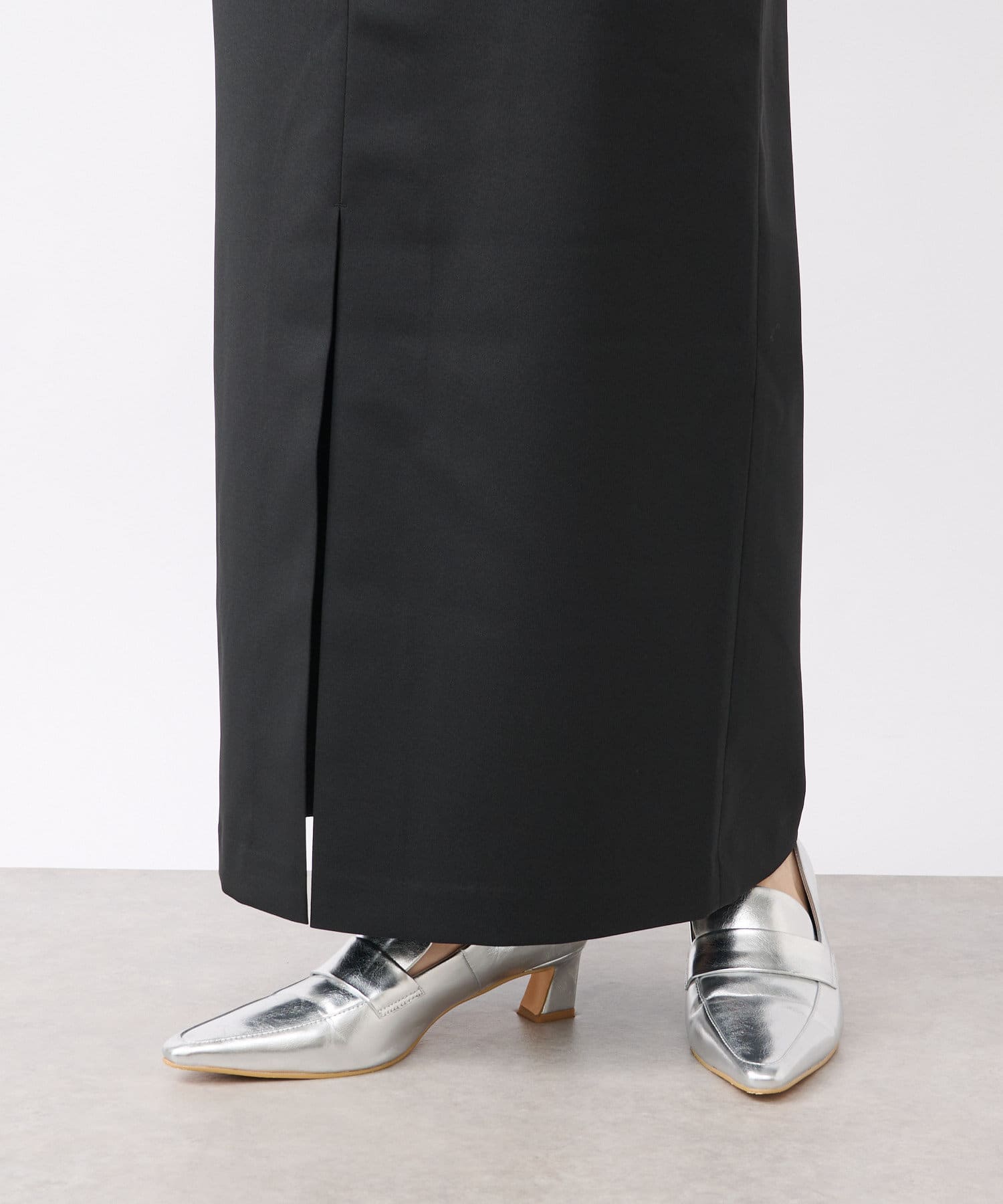 フロントには膝位置まで切れ込んだスリットを施し、女っぽくヌケ感をプラスしました。