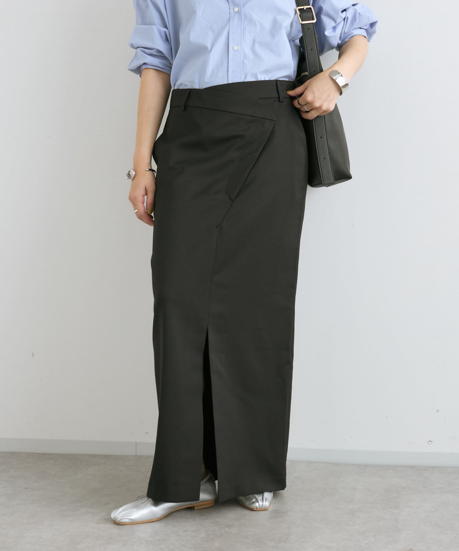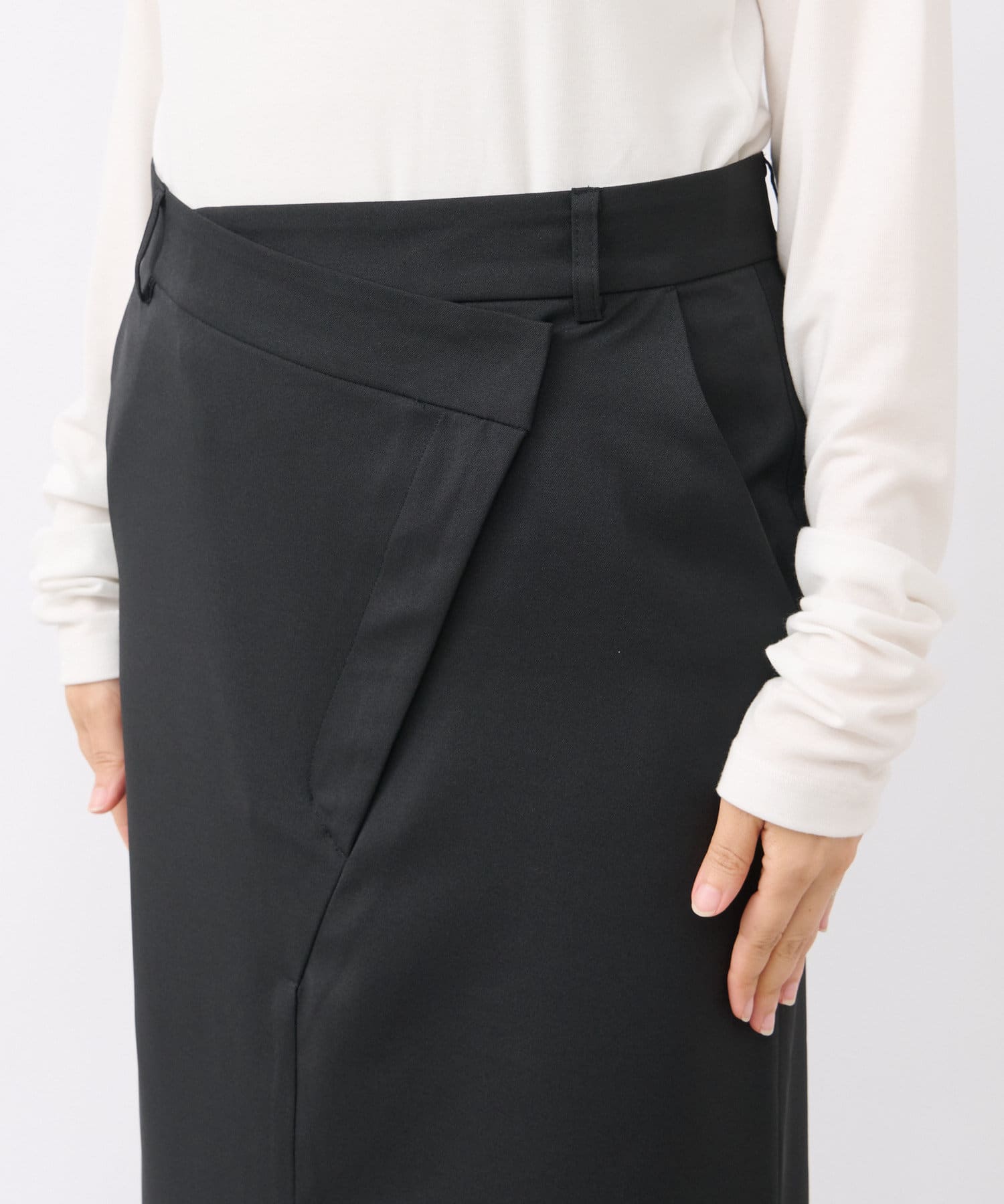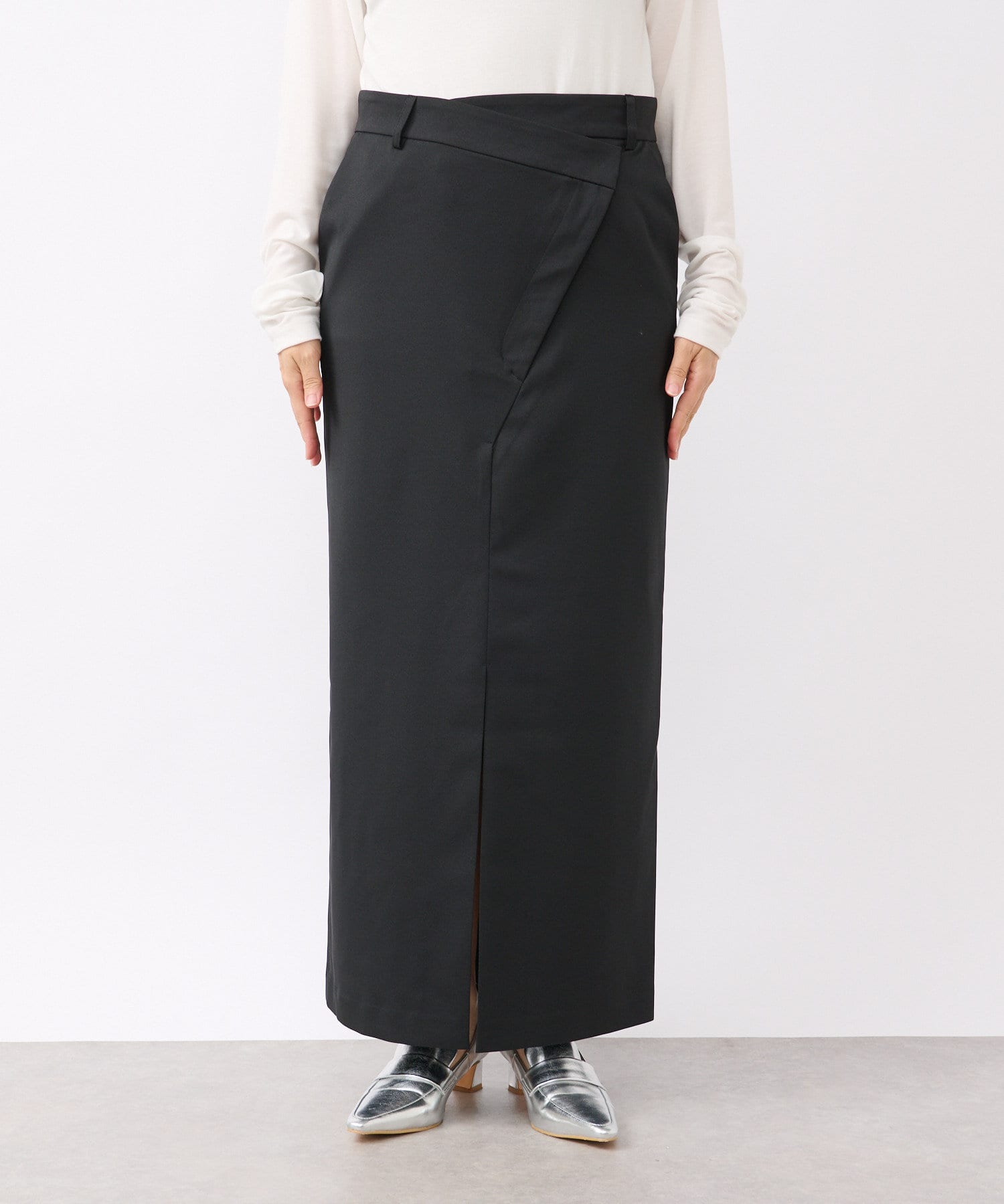 ラップ風のカッティングを施したミニマルなIラインスカート。