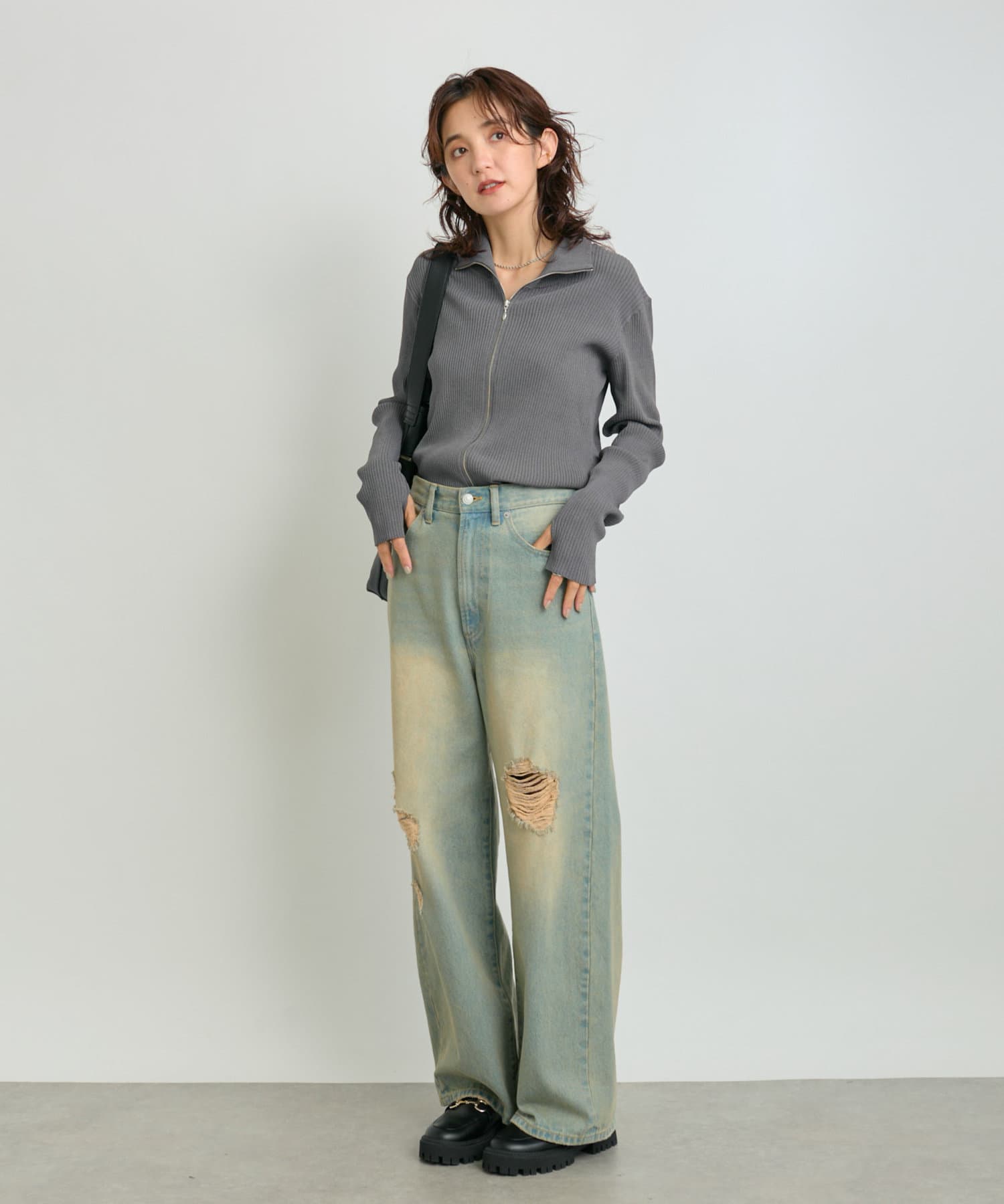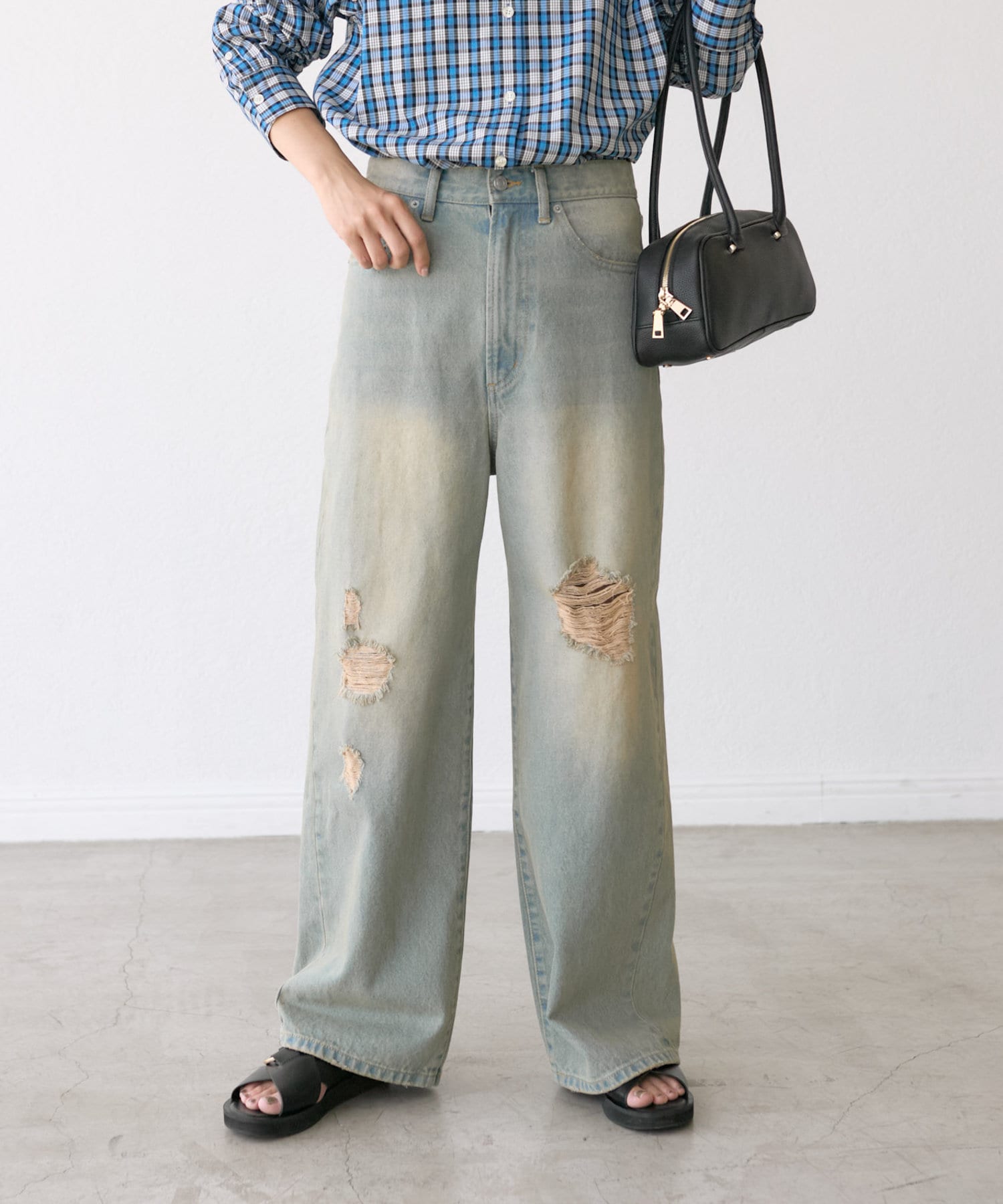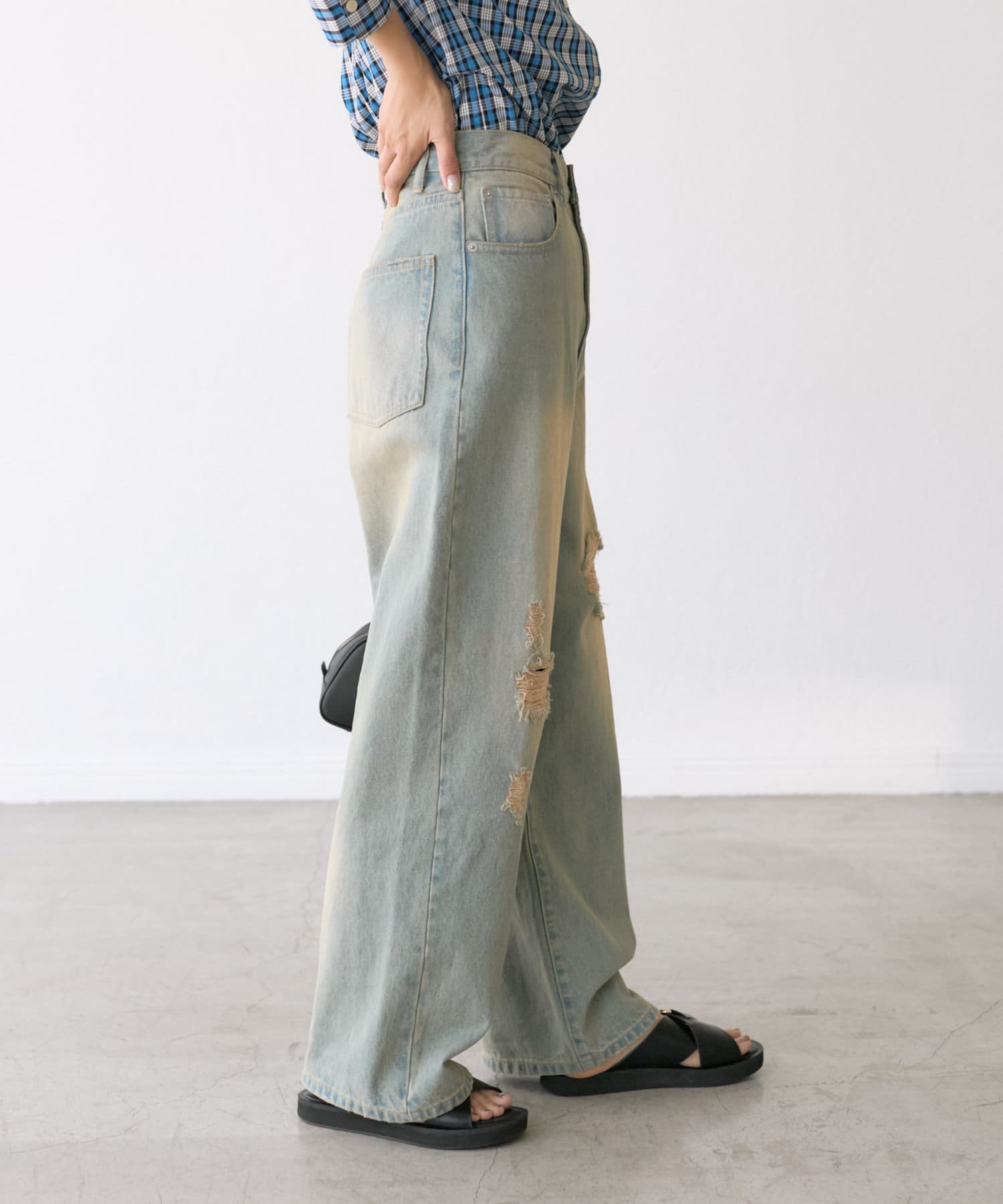 【MONN.:.(モン)】ハイライズダメージDENIM