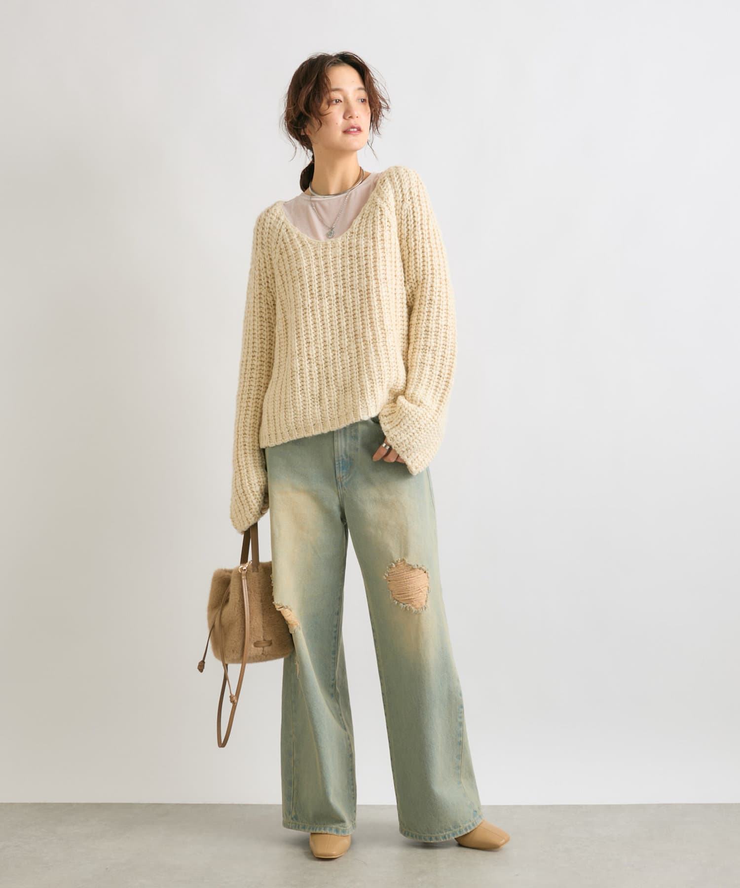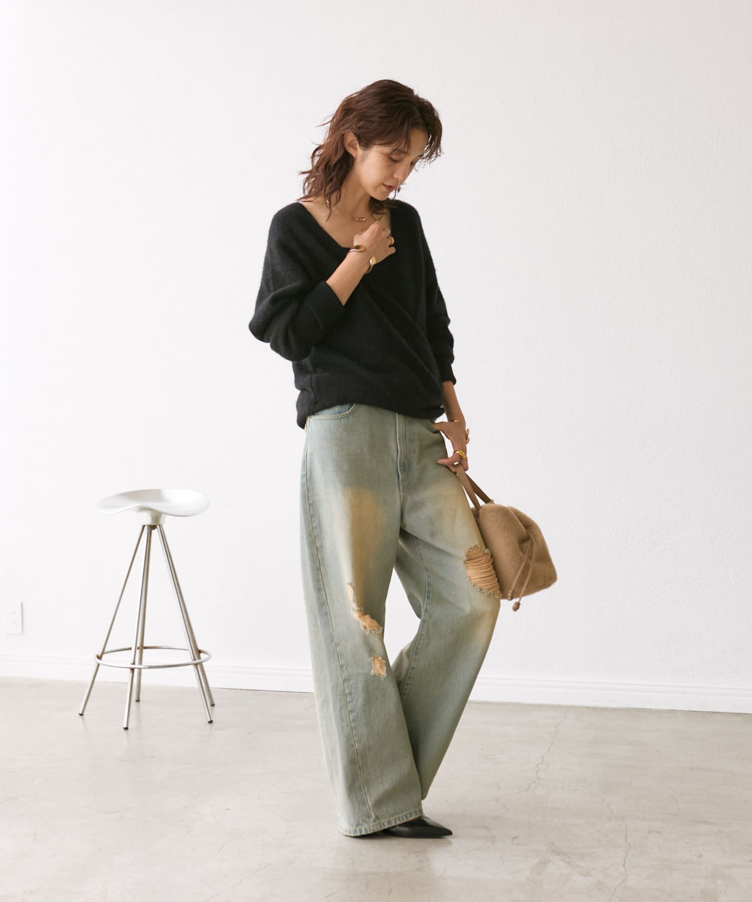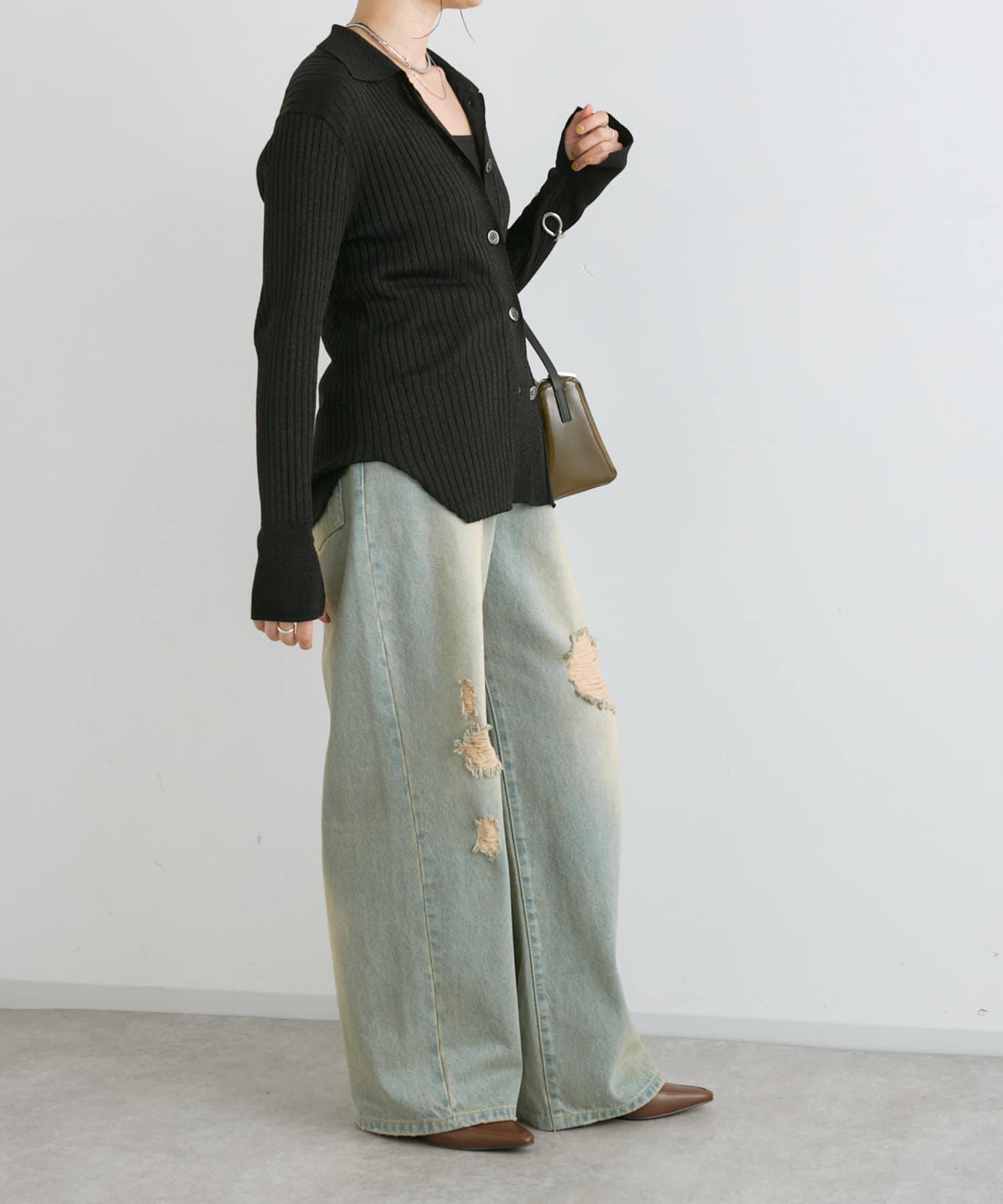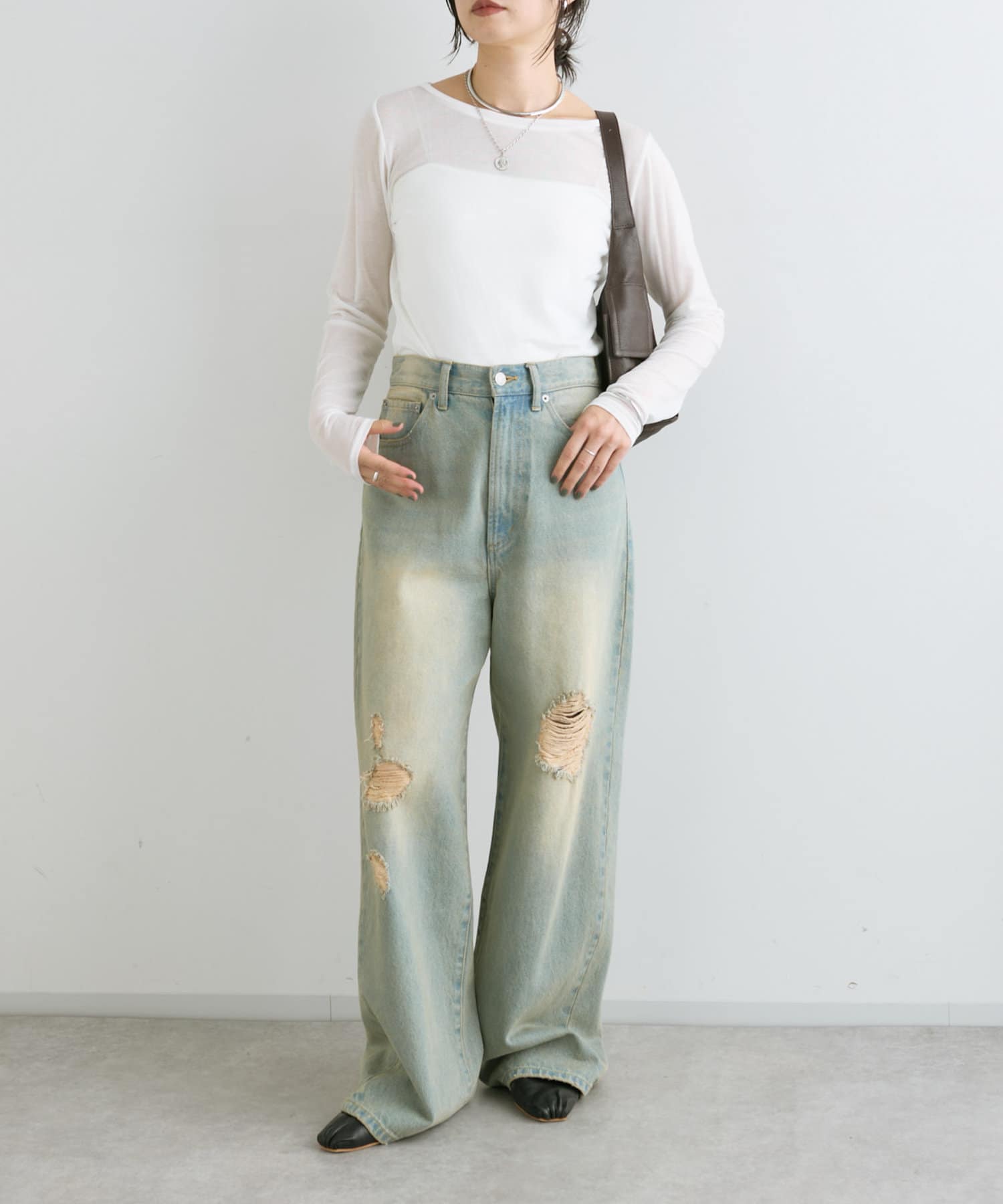 【MONN.:.(モン)】ハイライズダメージDENIM