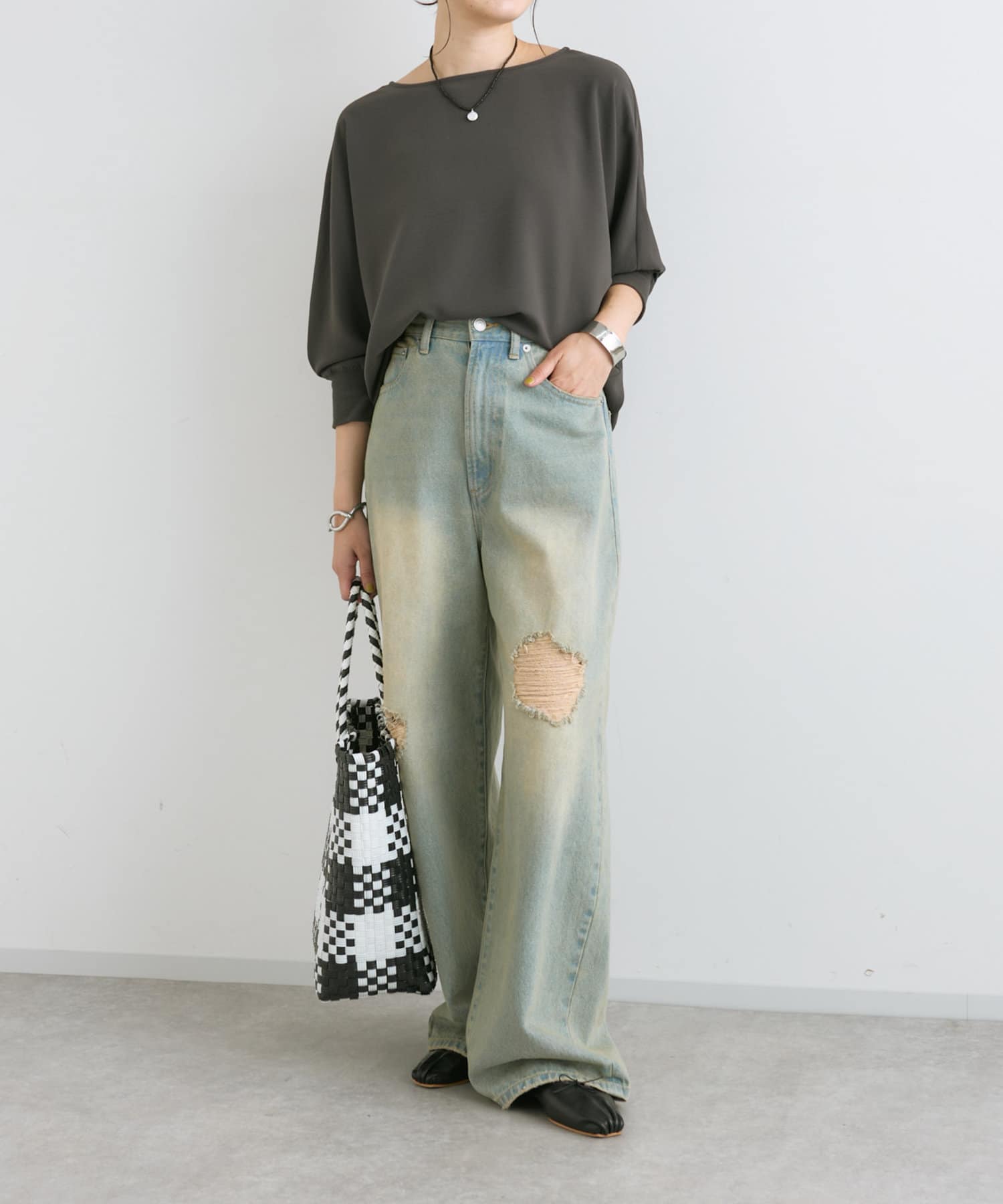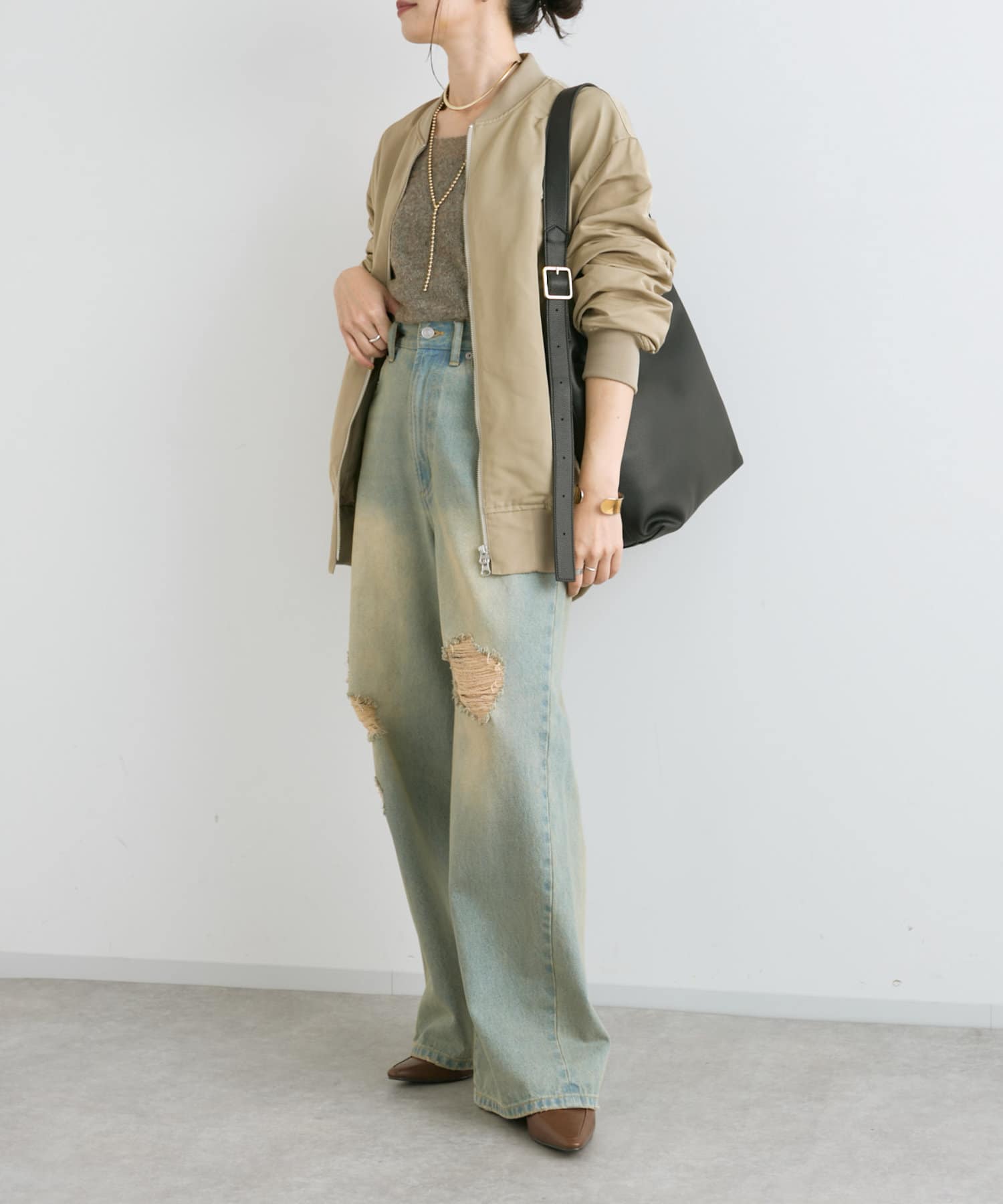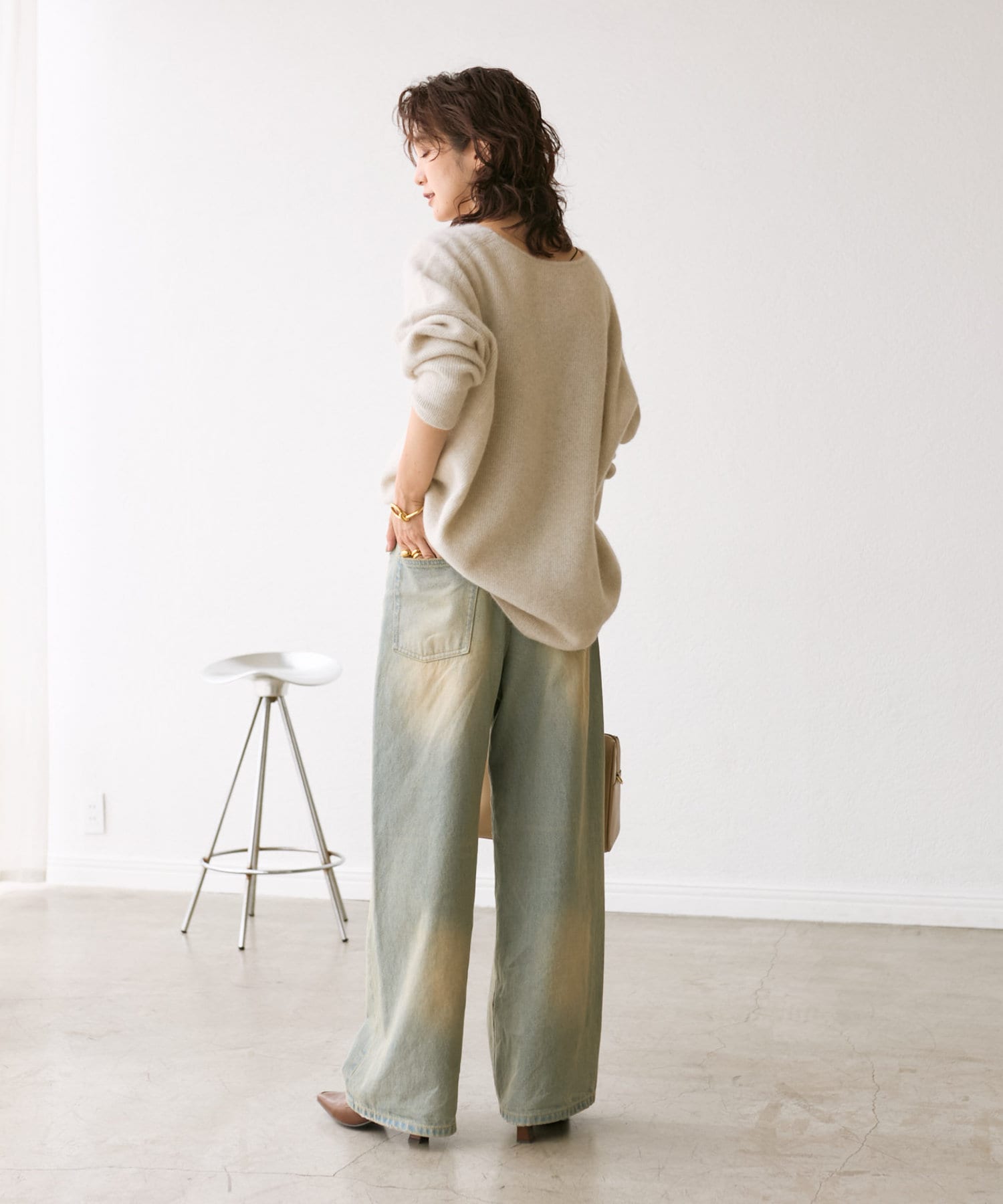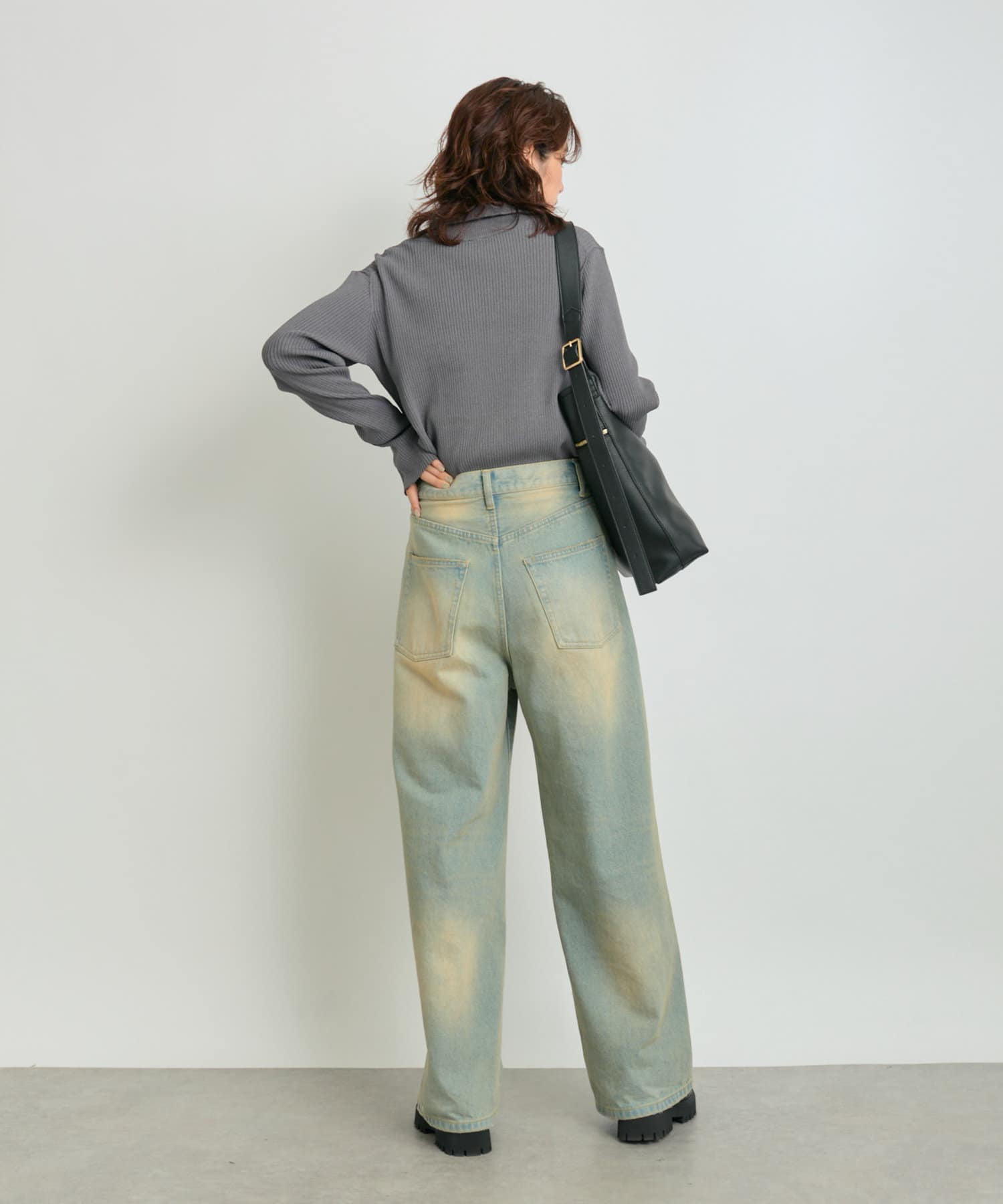 程よくゆとりがあるワイドストレートで、ヒップも適度なゆるみがあり、でもだらしなくはなりすぎないサイズ感。