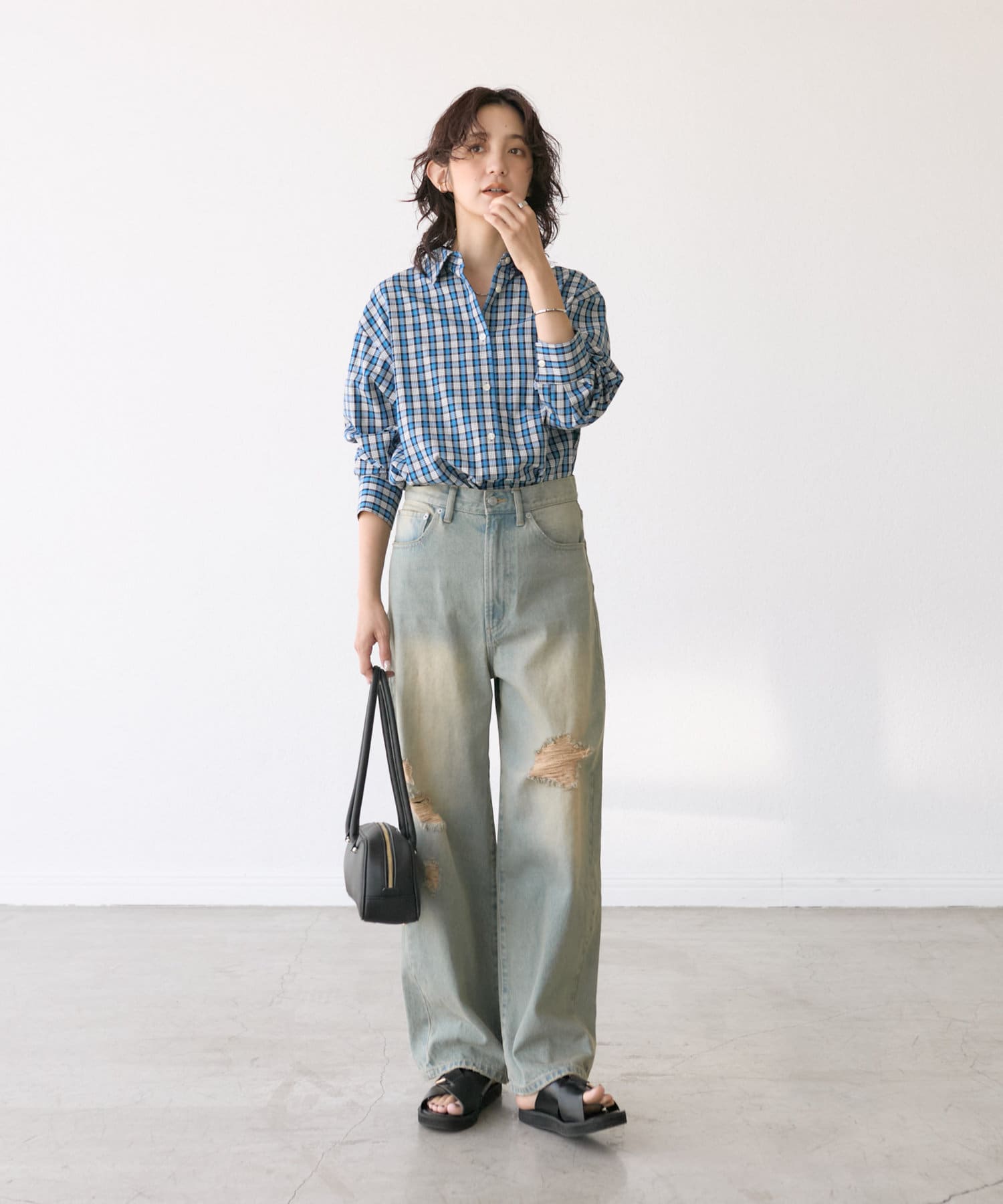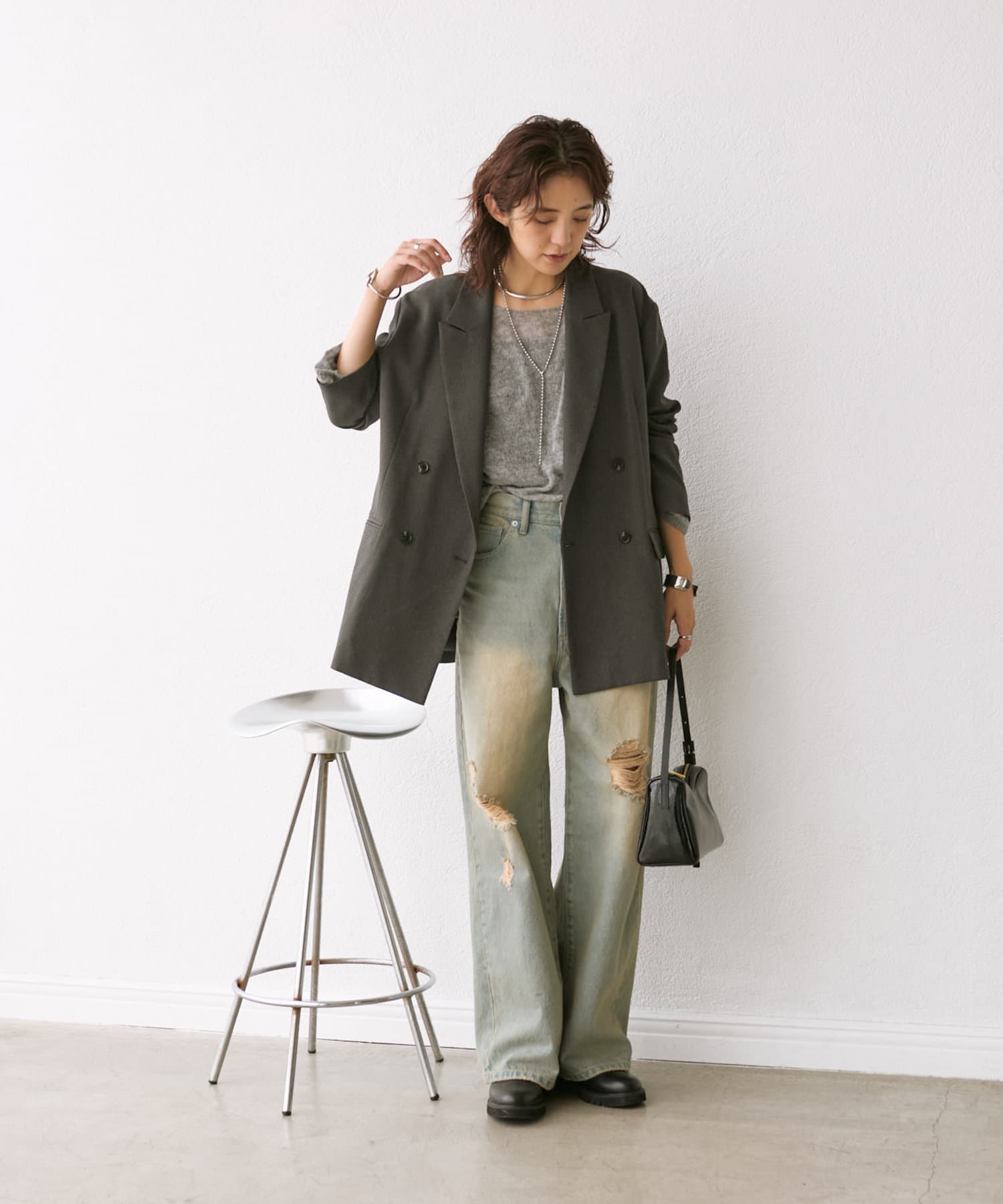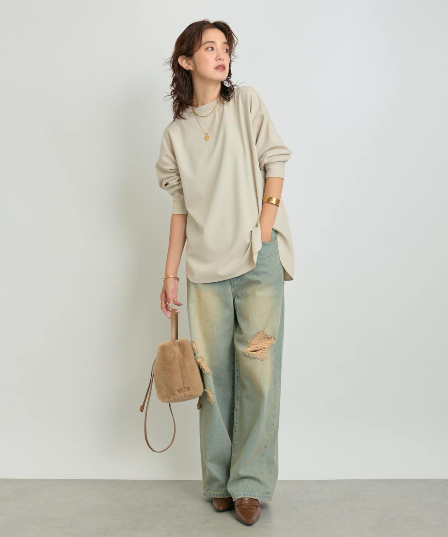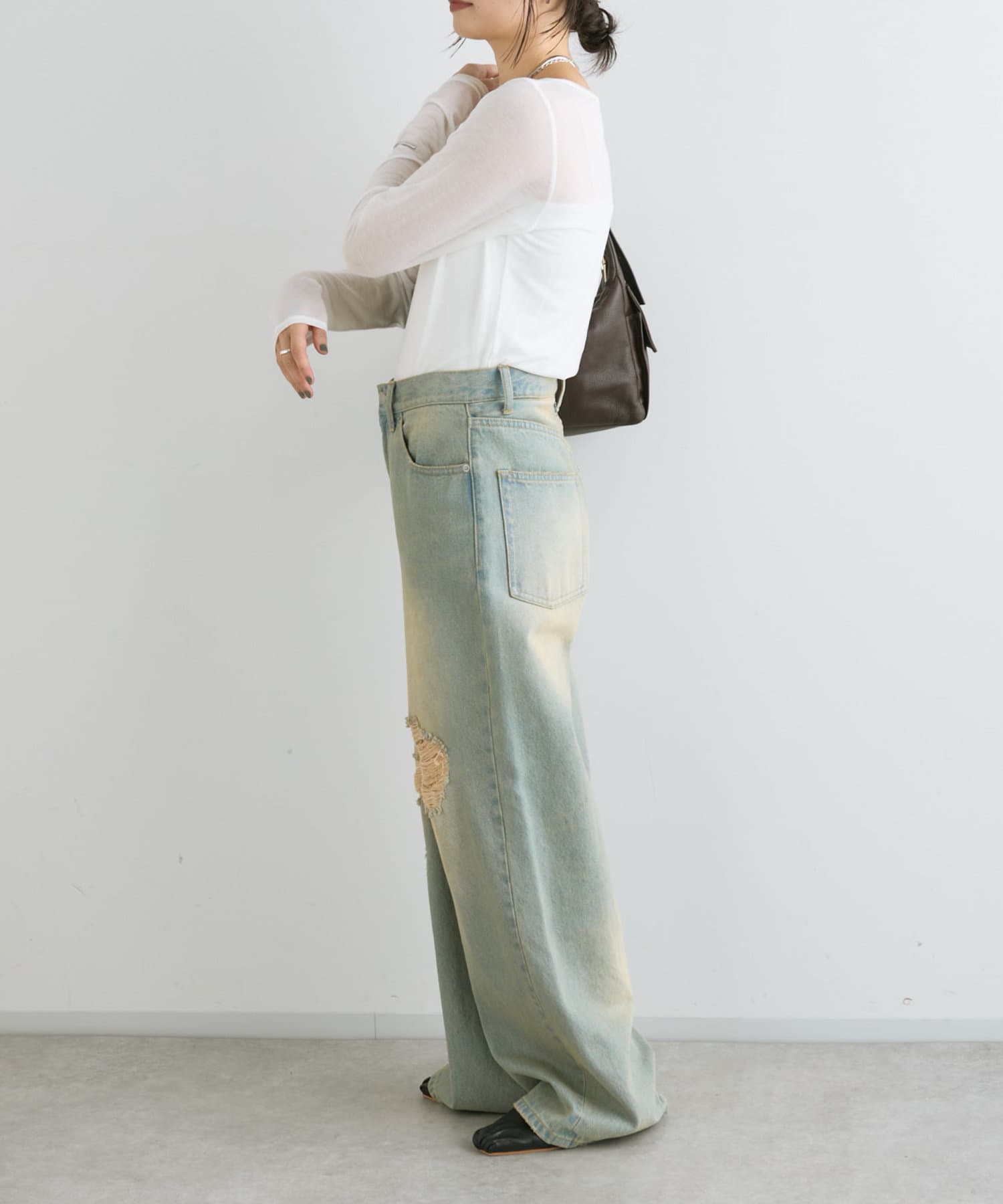 程よくゆとりがあるワイドストレートで、ヒップも適度なゆるみがあり、でもだらしなくはなりすぎないサイズ感。