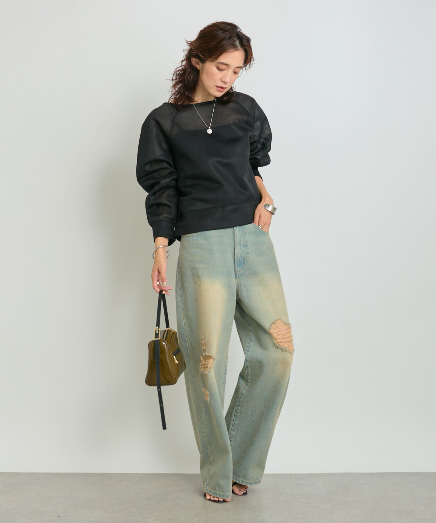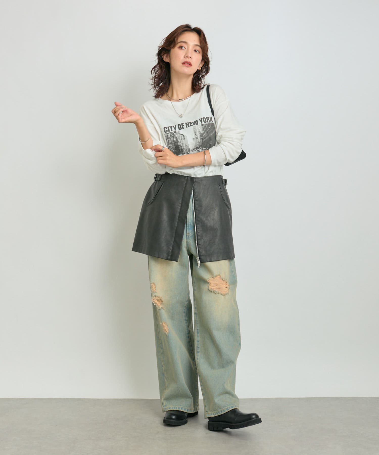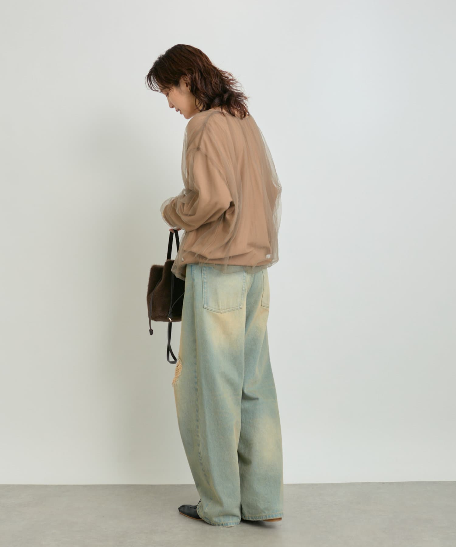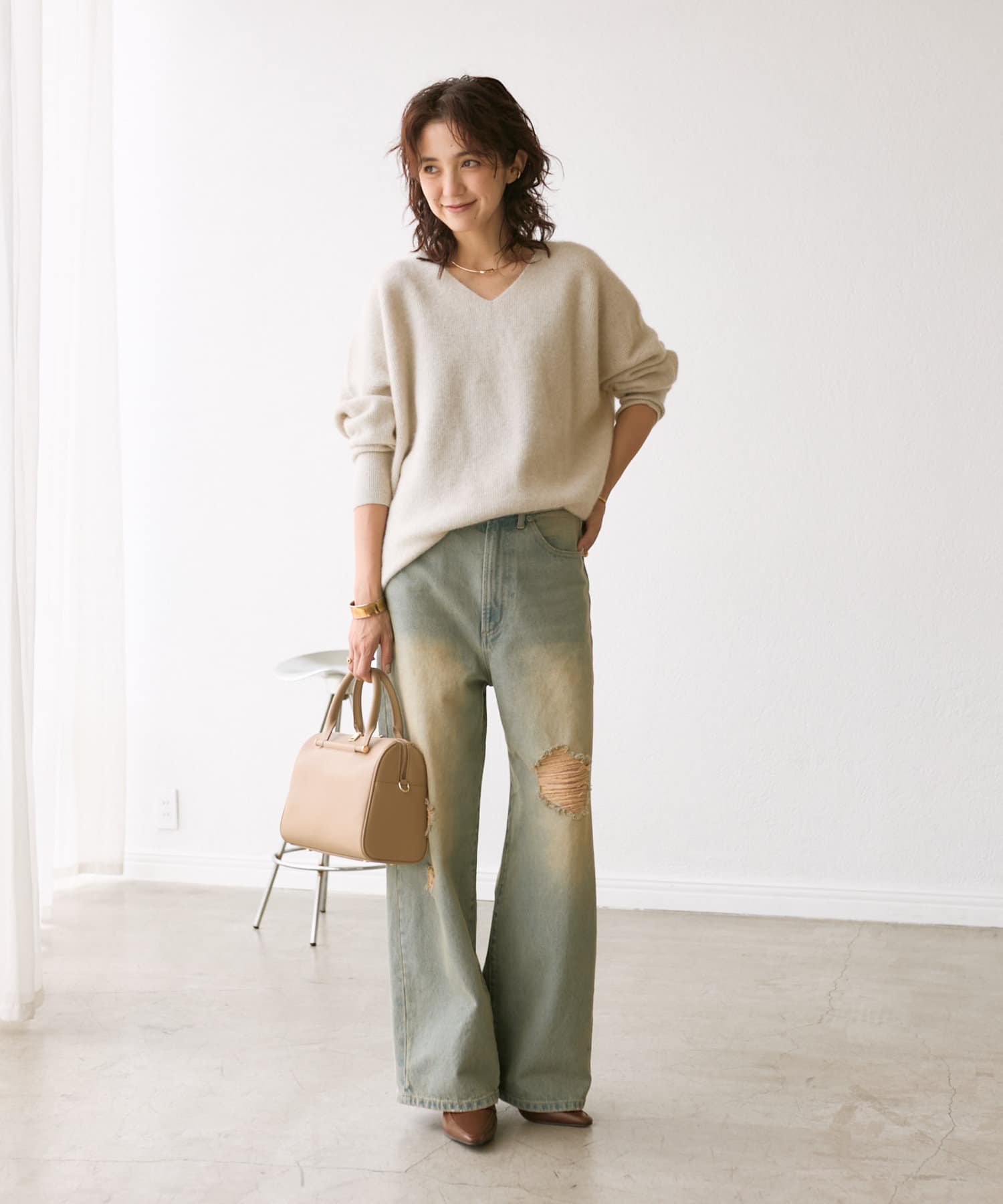 程よくゆとりがあるワイドストレートで、ヒップも適度なゆるみがあり、でもだらしなくはなりすぎないサイズ感。