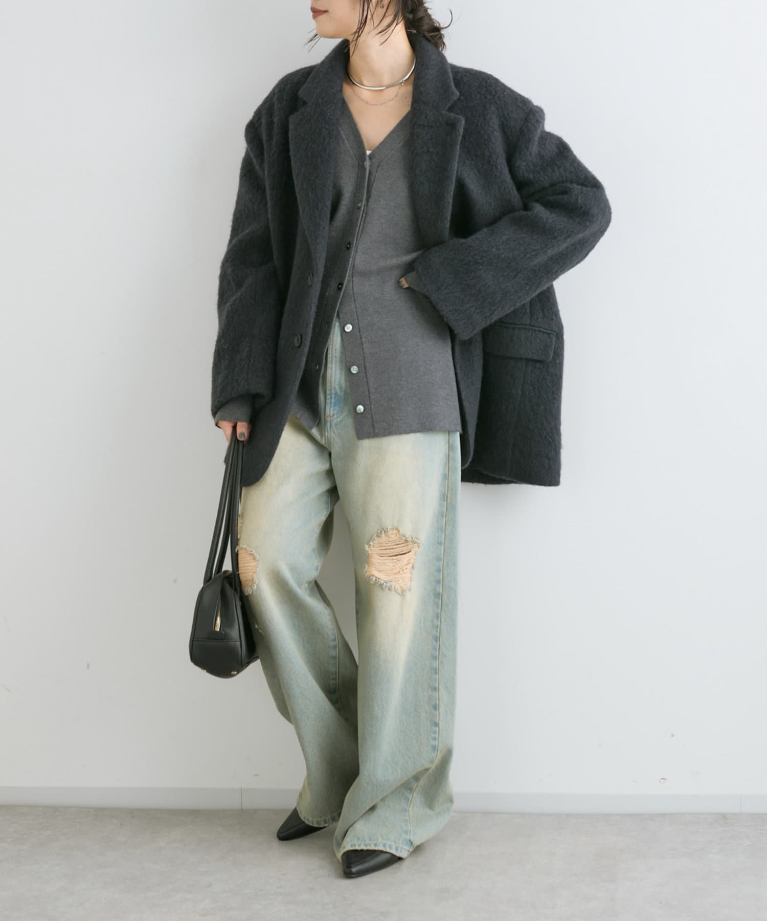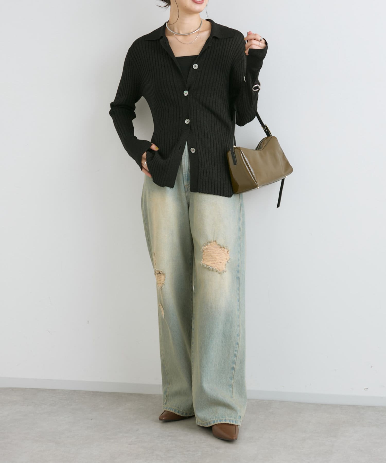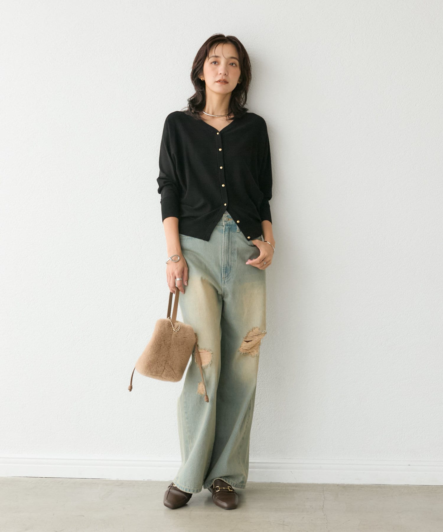 シンプルなカラートップスとのスタイリングにも良く映え、モノトーン好きにもおすすめしたいカラーです。