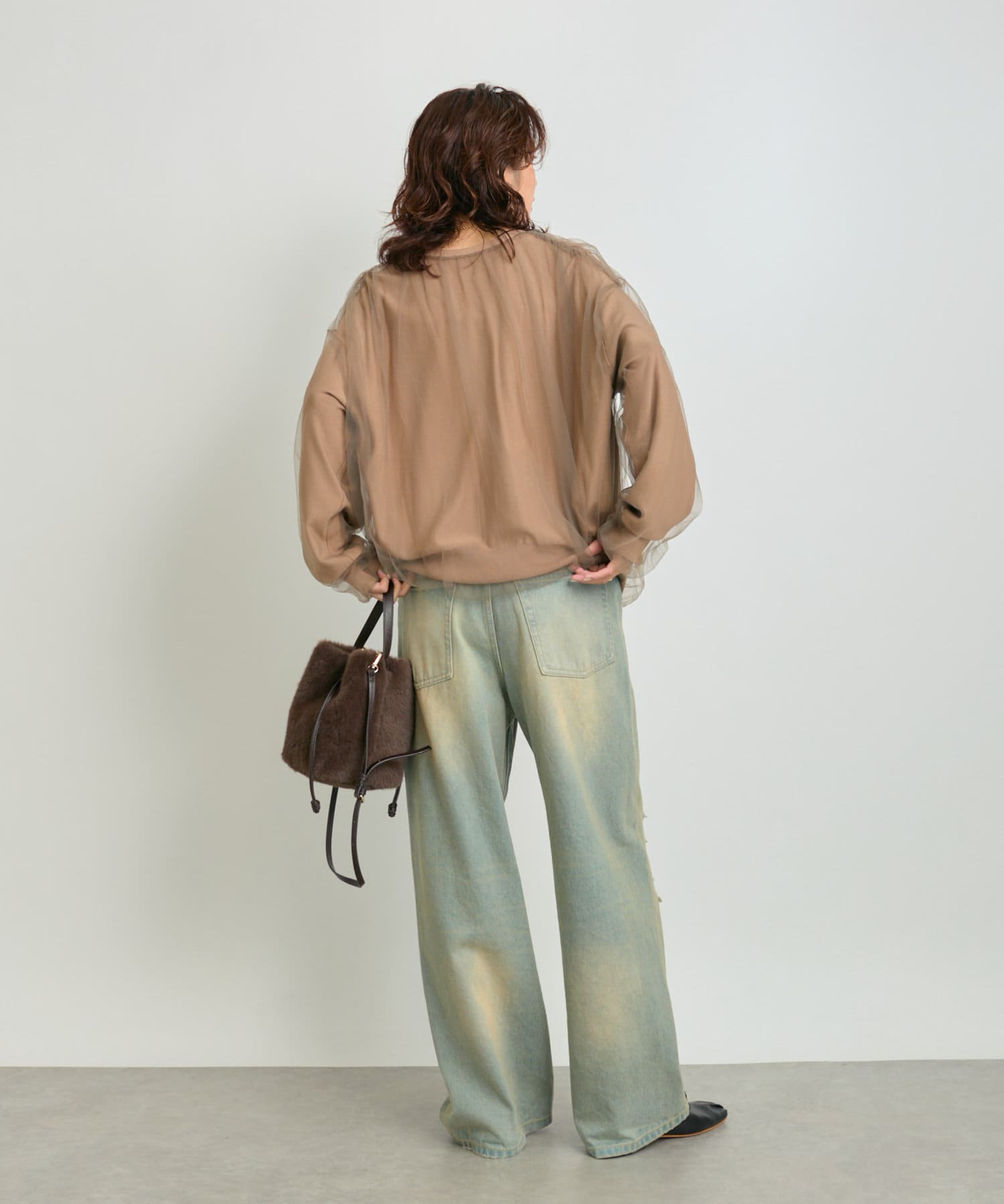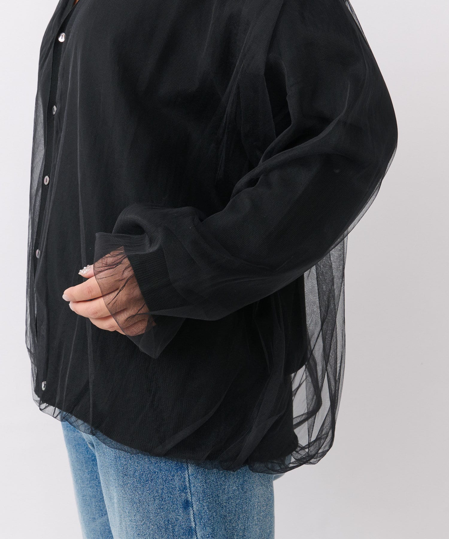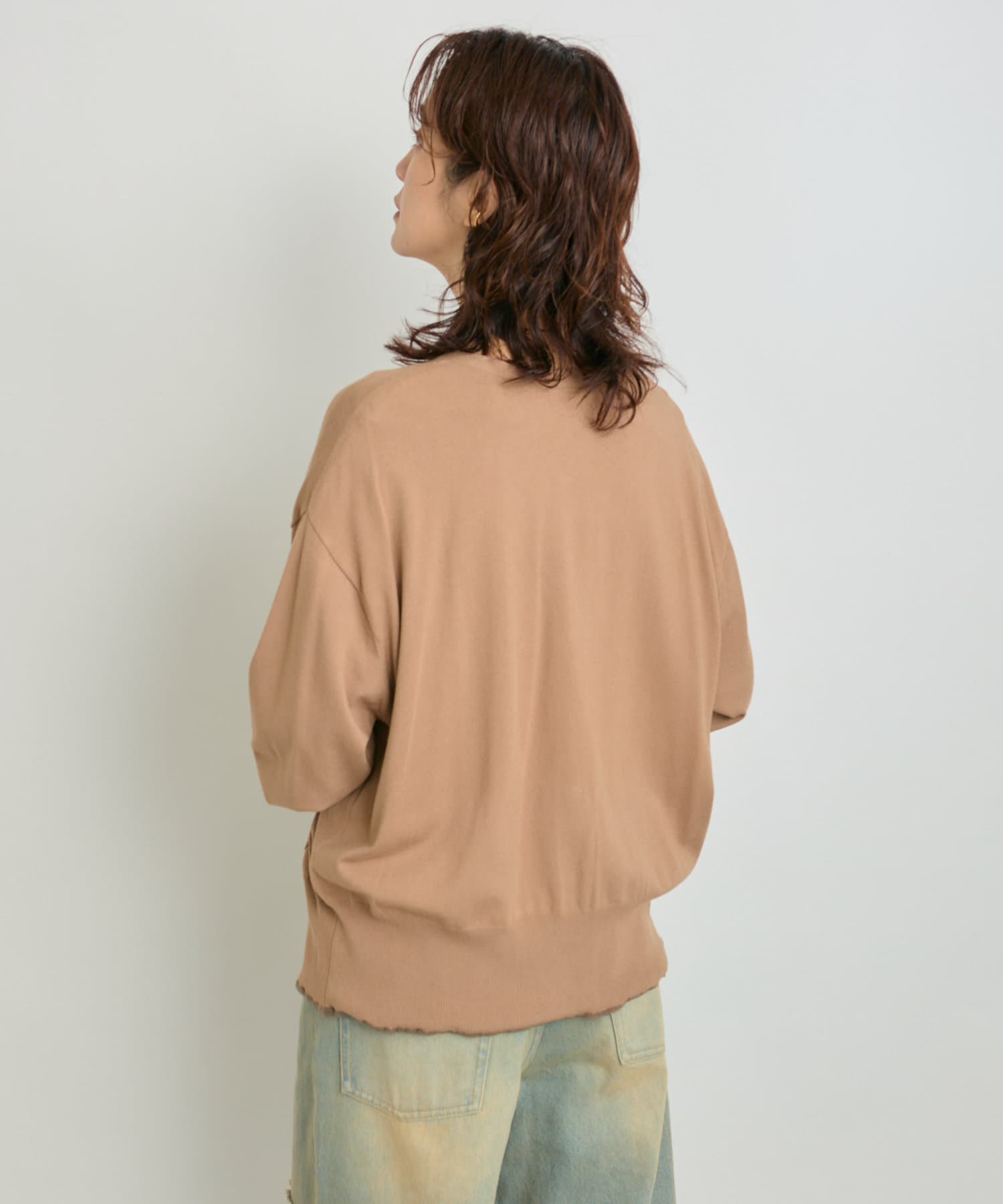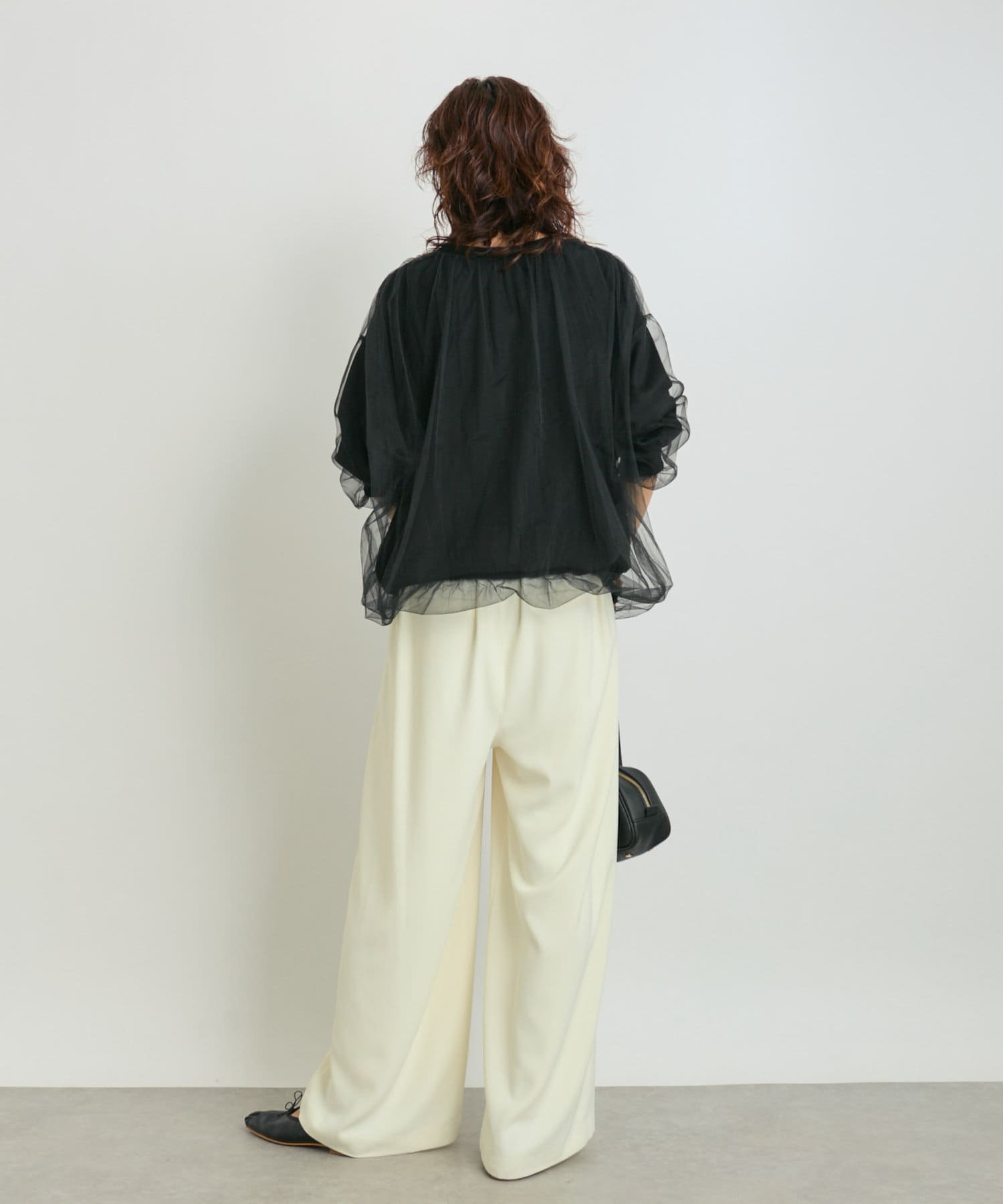 チュール側で着て頂くと、華やかで気映えする1枚に、ニット側だと袖口と裾から覗くチュールがさりげなく可愛いシンプルなカーデガンとして着用いただけます。