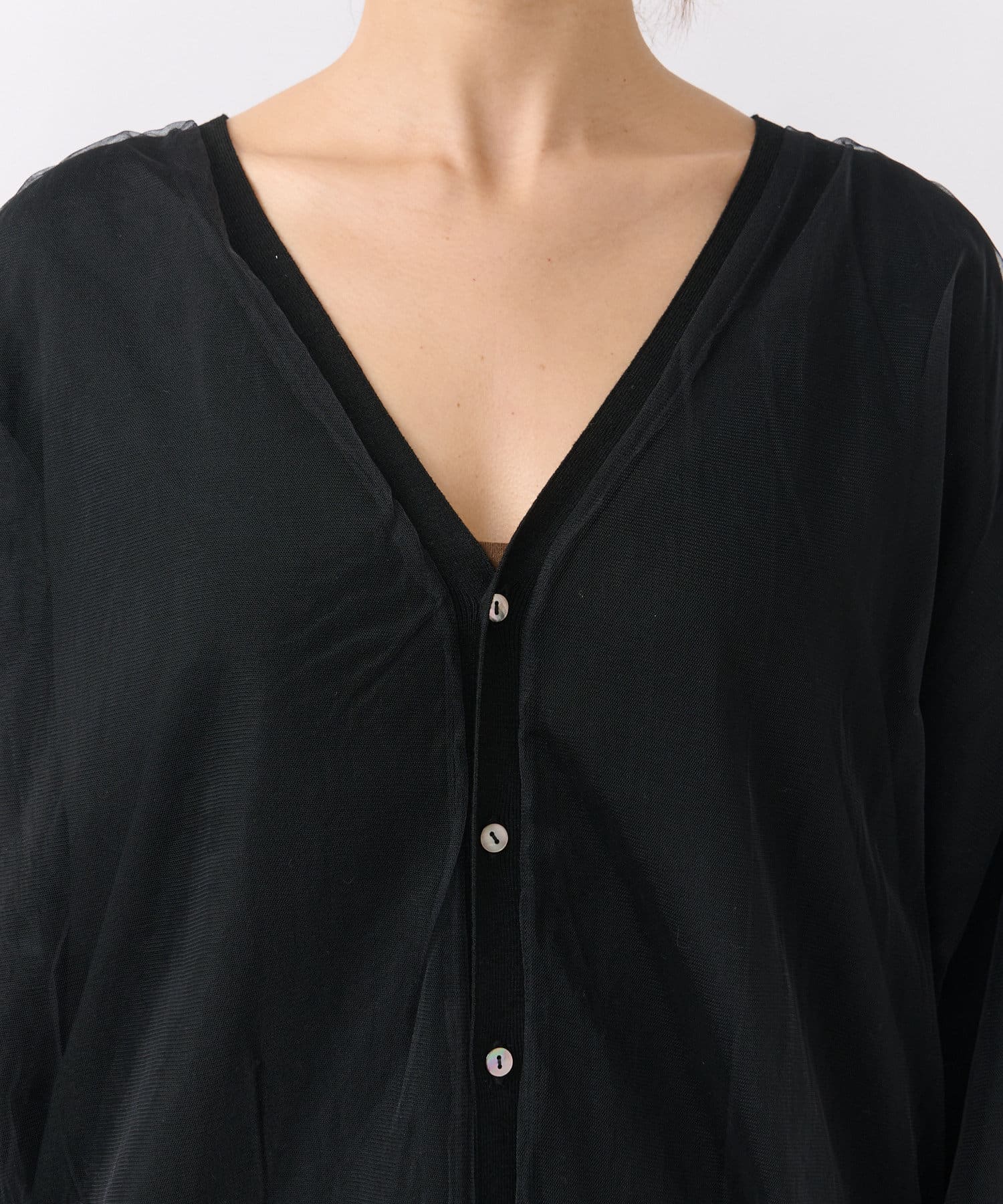 チュールとニットを重ねたリバーシブルで使って頂けるカーディガン。
