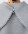 衿のデザインと、羽織るだけで決まるフォルミーなシルエットがポイントのダンボールブルゾン。