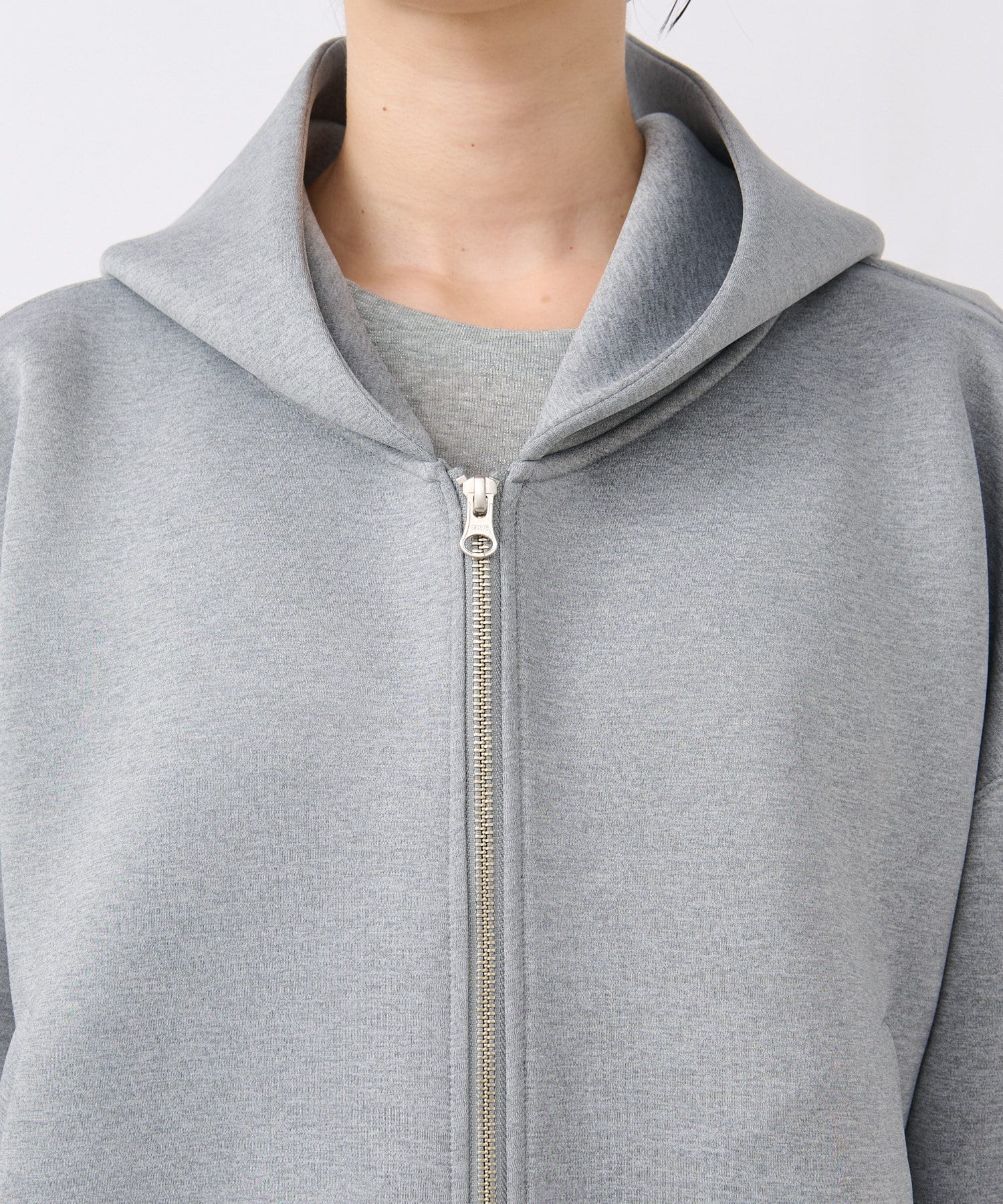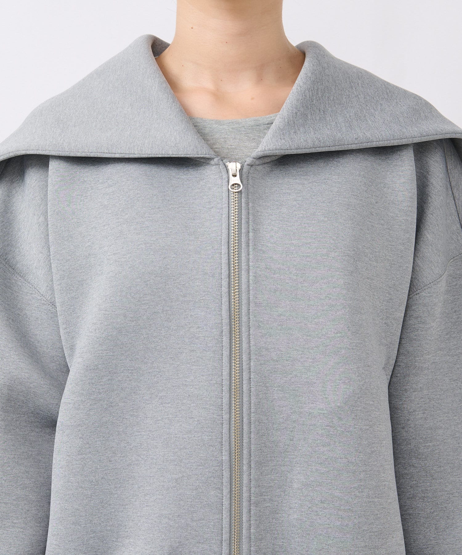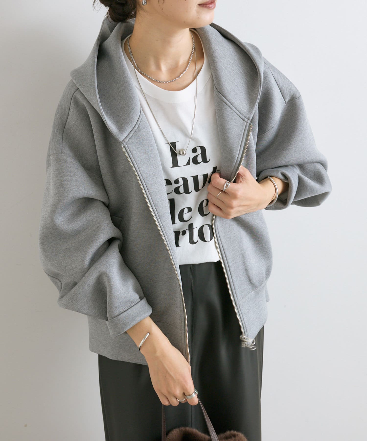 前あきはダブルジップなので、裾側を大胆に開けて頂くと抜け感が出て素敵です。