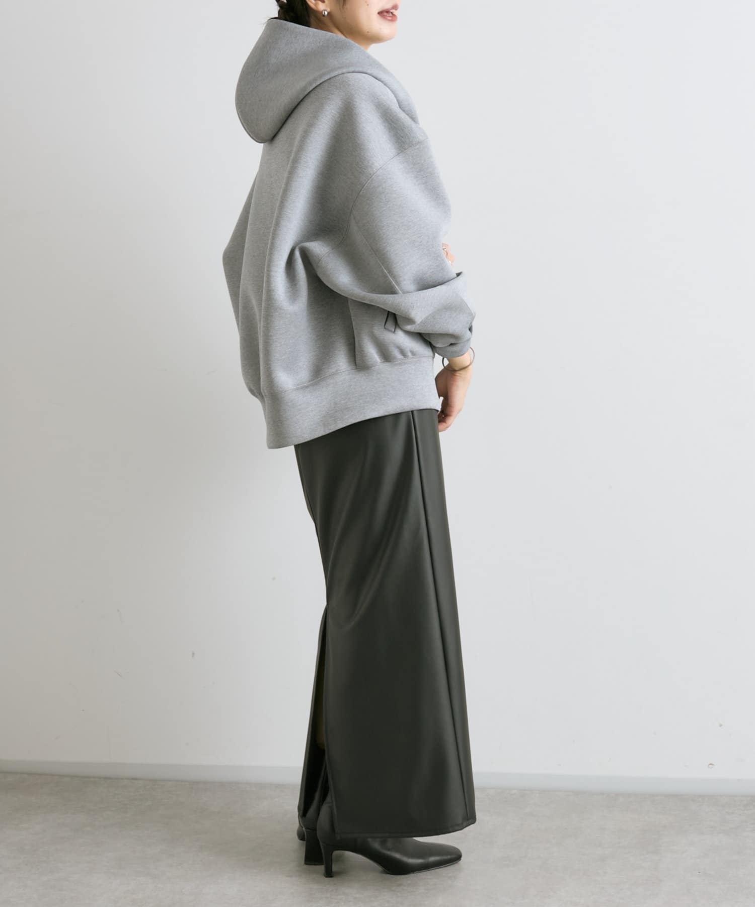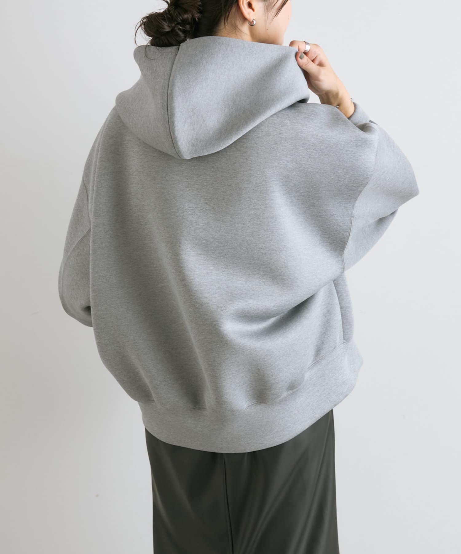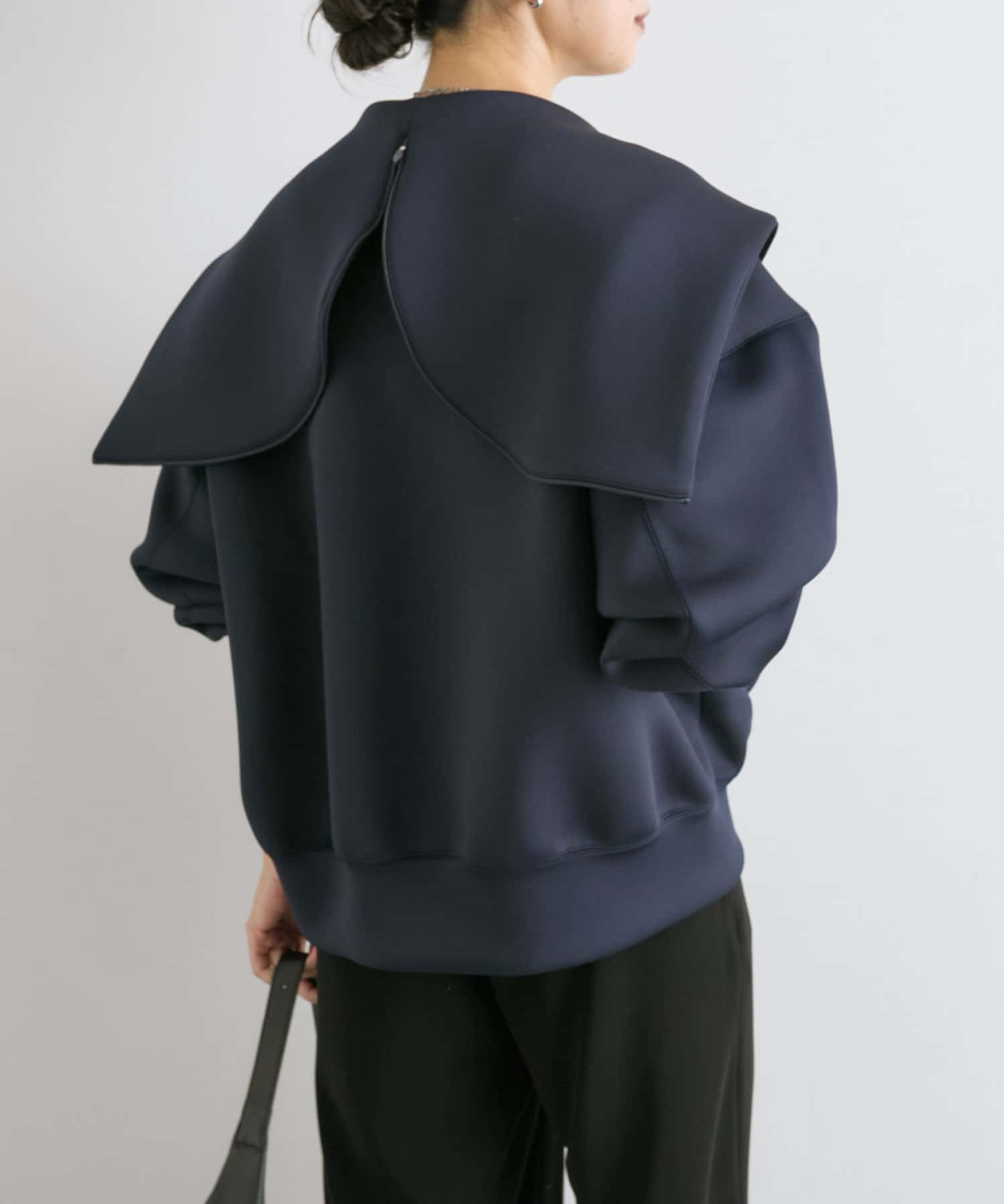 軽い印象になるよう、前丈は少し短めになっていますが、前後差をしっかりつけているので横から見たシルエットも◎