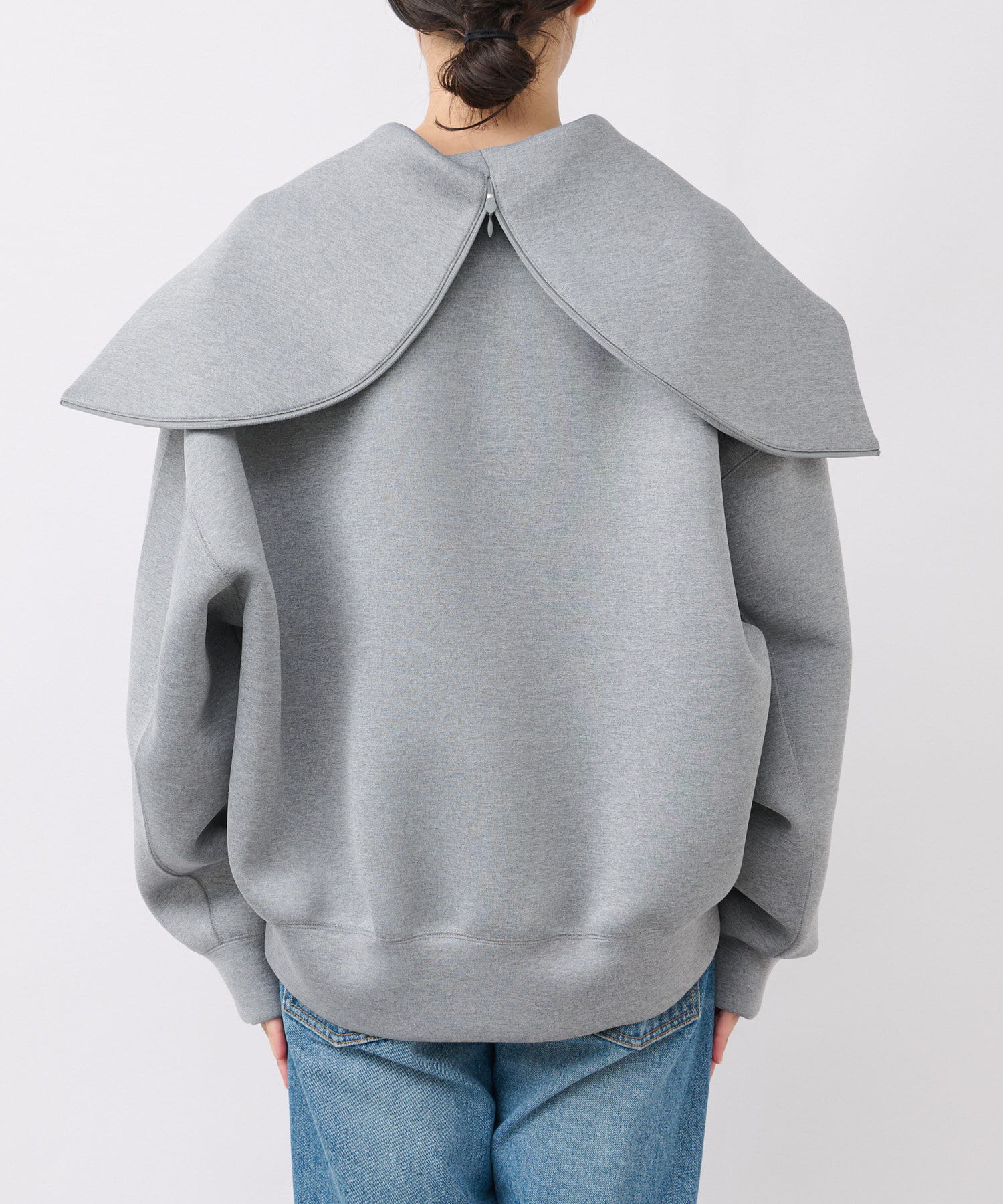 衿のファスナーを閉じて頂くとフードにもなる、フライトジャケットのディテールを取り入れたアイテム。