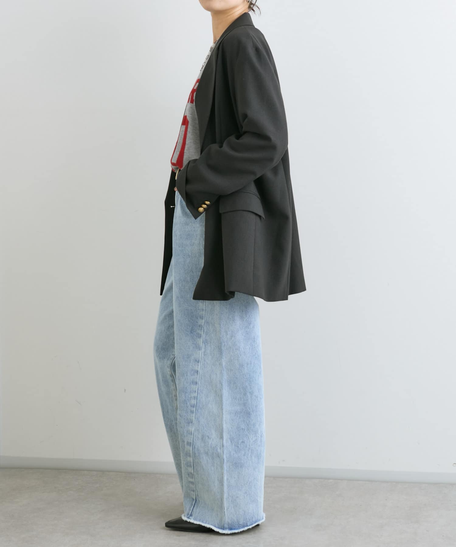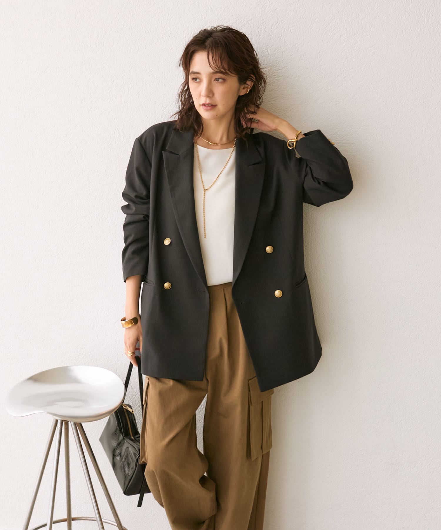 定番アイテムを今っぽくメンズライクなバランスに作りなおしたテーラードジャケット。