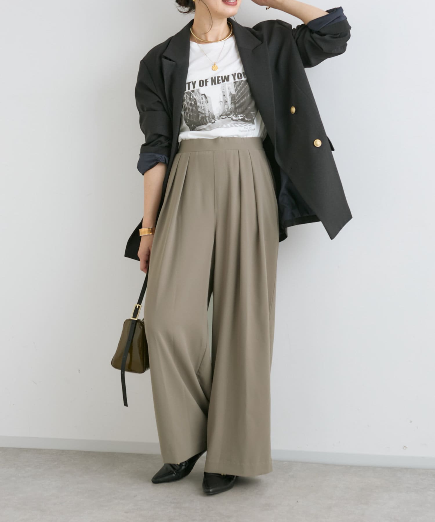 シワになりにくく、キレイな見た目をキープできるので高見えするのも嬉しいポイント。