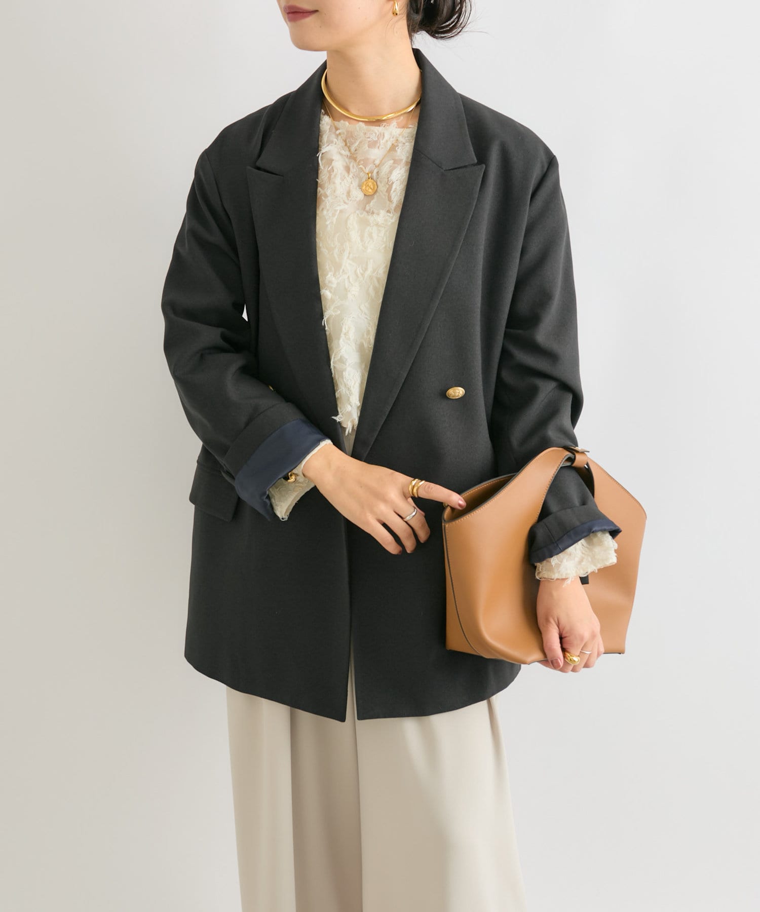 ザックリと肩をドロップさせたヌケのあるシルエットを存在感のあるピークドラペルで引き締めたトレンド感のあるデザインです。